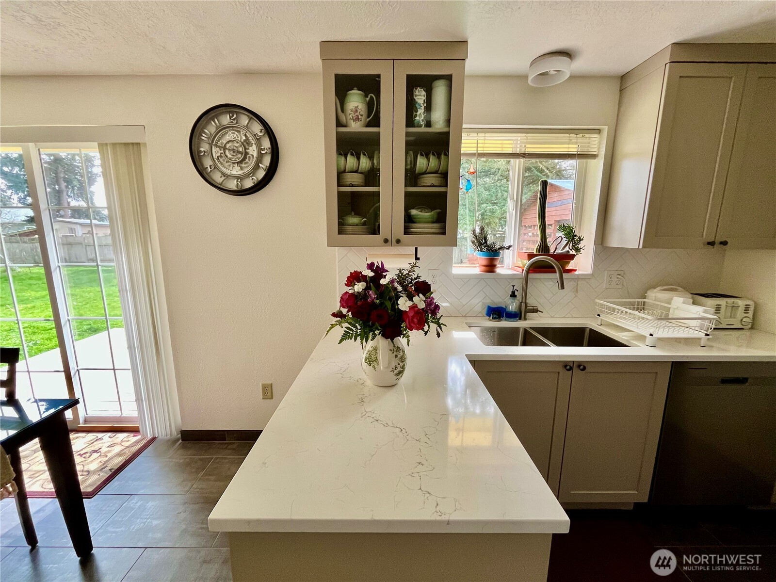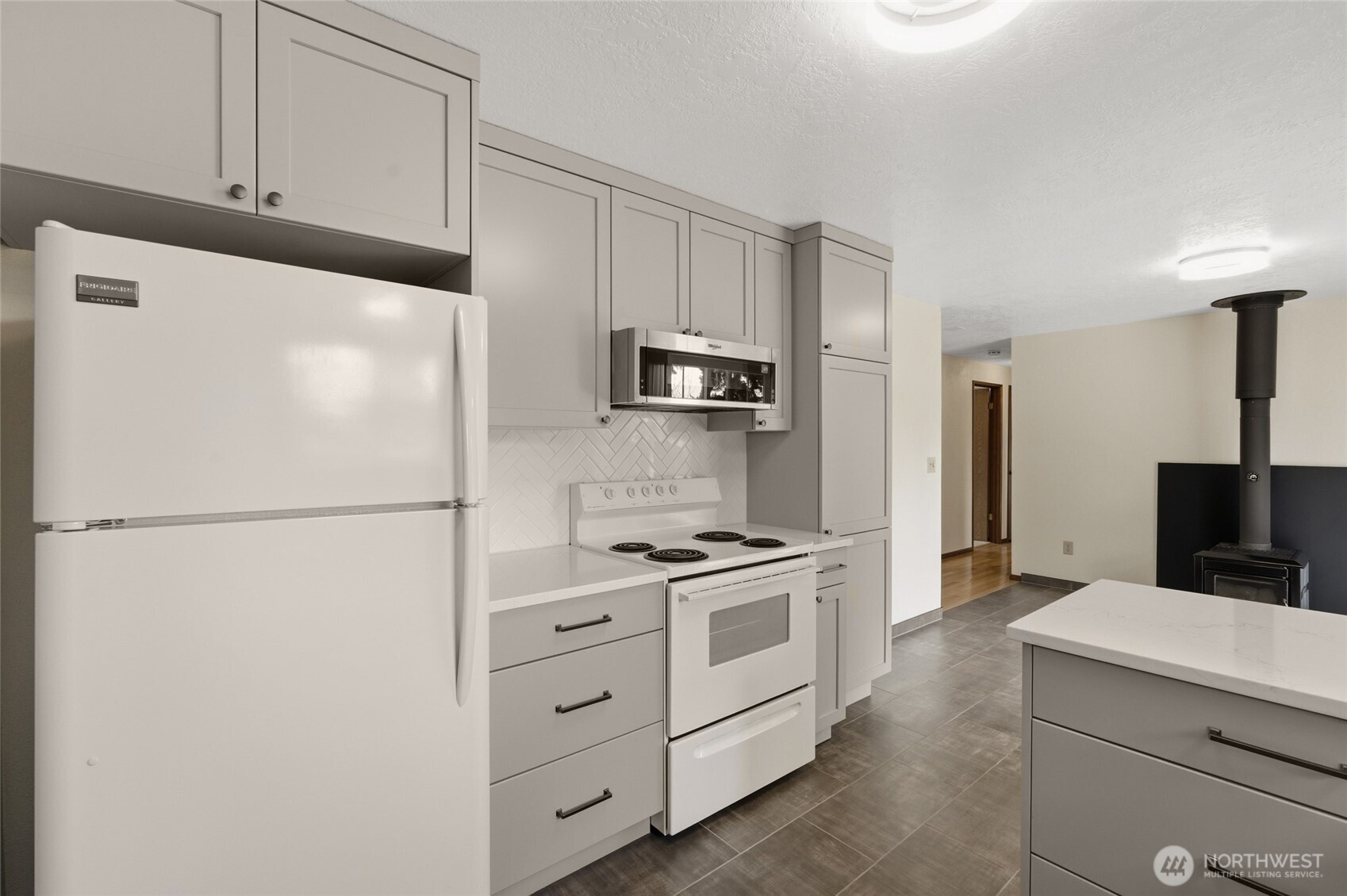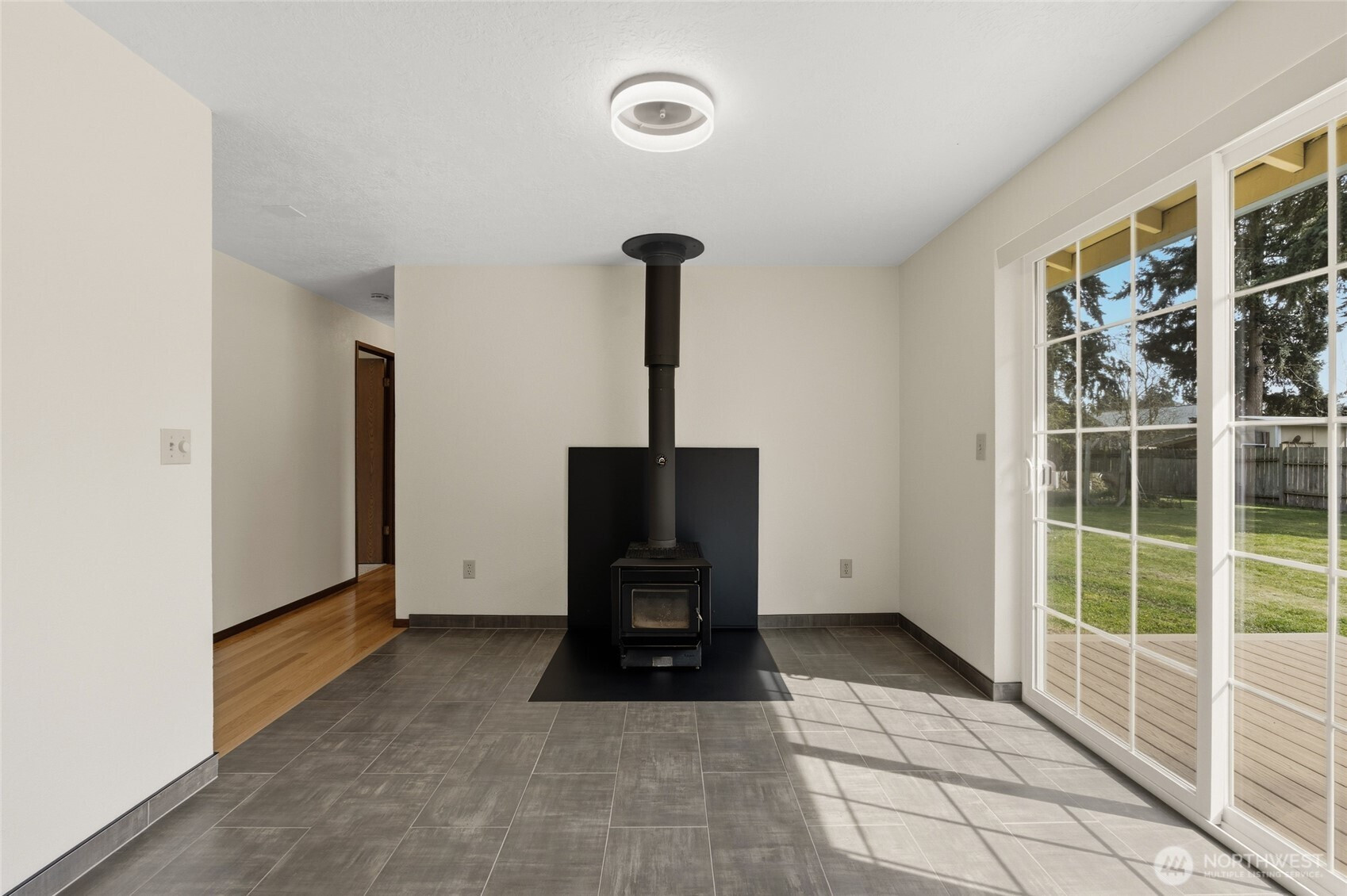 Charming & inviting, this well maintained 3-BR rambler is situated on a nearly one-third acre lot, offering both privacy and a sense of open space. Thoughtfully updated, the home blends classic charm with modern convenience, making it a perfect retreat for those seeking a quiet lifestyle. The recently remodeled kitchen is a true highlight, featuring custom cabinetry crafted by a local artisan, designed for both beauty & functionality. Quartz countertops provide ample workspace for cooking & entertaining, while elegant tile flooring adds a clean, contemporary touch. The cozy wood stove creates a warm & inviting atmosphere, perfect for relaxing evenings or gathering with loved ones. Stunning red oak floors add warmth & character in the living room & hallway. The spacious living areas flow seamlessly, offering flexibility for dining, entertaining, or quiet time. Natural light fills each room, highlighting thoughtful finishes and the home’s timeless appeal. Step outside to discover a large sunny deck & a generous fenced garden space, with over 200 bulbs of garden growing. The expansive sunny yard provides a private, tranquil backdrop for outdoor living. The property also has a firewood shed & a small outbuilding for lawn equipment or garden tools. An attached one-car garage, full of light, adds further functionality. This property offers a perfect balance of comfort, character, and potential.