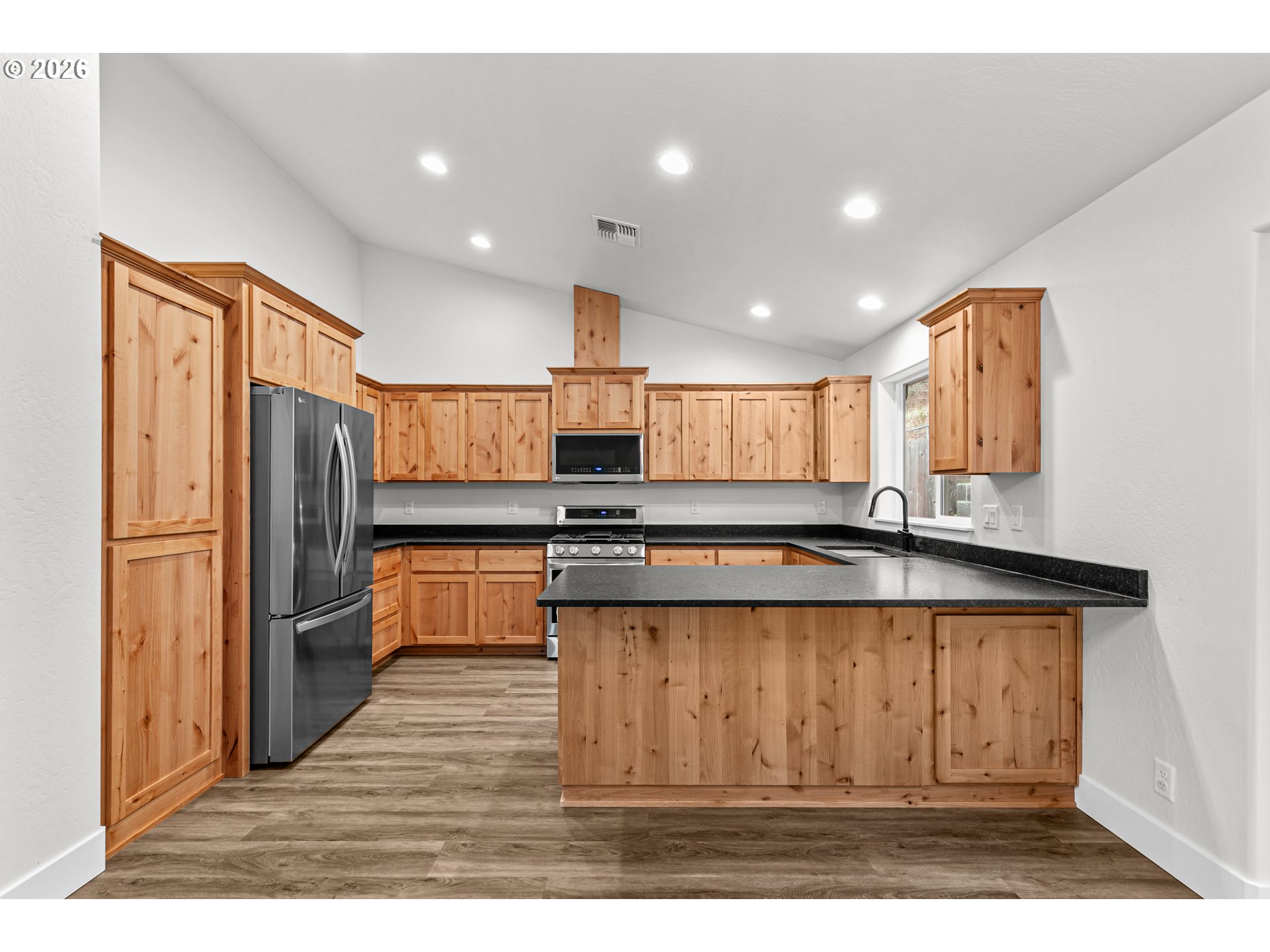 Built in 2022, this turn-key ready, one-level home offers 3 bedrooms, 2 bathrooms, and 1,399 sq ft of thoughtfully designed living space in a desirable South Grants Pass location. The open floor plan creates a bright and welcoming atmosphere, ideal for everyday living and entertaining. The modern kitchen features granite countertops, stainless steel appliances, ample cabinetry, and stylish black plumbing and light fixtures that add a sleek, contemporary touch. Contemporary finishes continue throughout the home, enhancing its clean and modern aesthetic. The primary suite provides comfort and privacy, while two additional bedrooms offer flexibility for guests, a home office, or hobbies. Outside, the low-maintenance yard offers an inviting outdoor space. Enjoy a walkable location with shopping, dining, and everyday amenities just steps away, making this move-in-ready home a perfect blend of modern design, functionality, and convenience in a beautiful one-level layout.