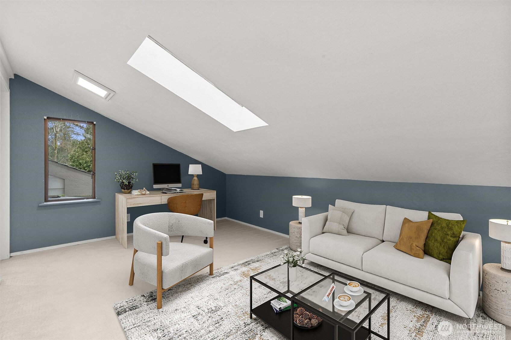 This light-filled end-unit townhome combines thoughtful updates with a location tailored for today’s connected lifestyle. Vaulted ceilings and expansive windows enhance the open main-floor plan, while a refined fireplace adds warmth and definition to the living area. The remodeled kitchen features a striking quartz island and newer cabinetry, seamlessly supporting daily living and entertaining. Upstairs, a spacious loft adds flexible living or work-from-home space, while the primary suite includes an updated bath with frameless shower, modern vanity, and custom built-in closet. Step out from the family room to a cozy deck for outdoor enjoyment. Recent improvements include newer carpet, interior paint, furnace, and air conditioning. A spacious two-car garage and well-run HOA provide added ease. Set within the Bellevue School District and approximately five minutes to downtown Bellevue, with quick access to Microsoft, major highways, transit, retail, and dining—this home offers a smart balance of livability and location efficiency. Home must be owner occupied!