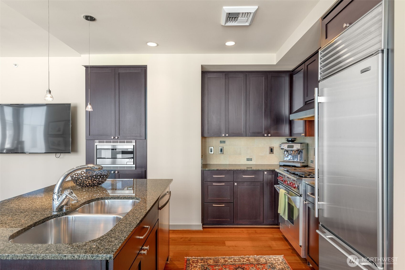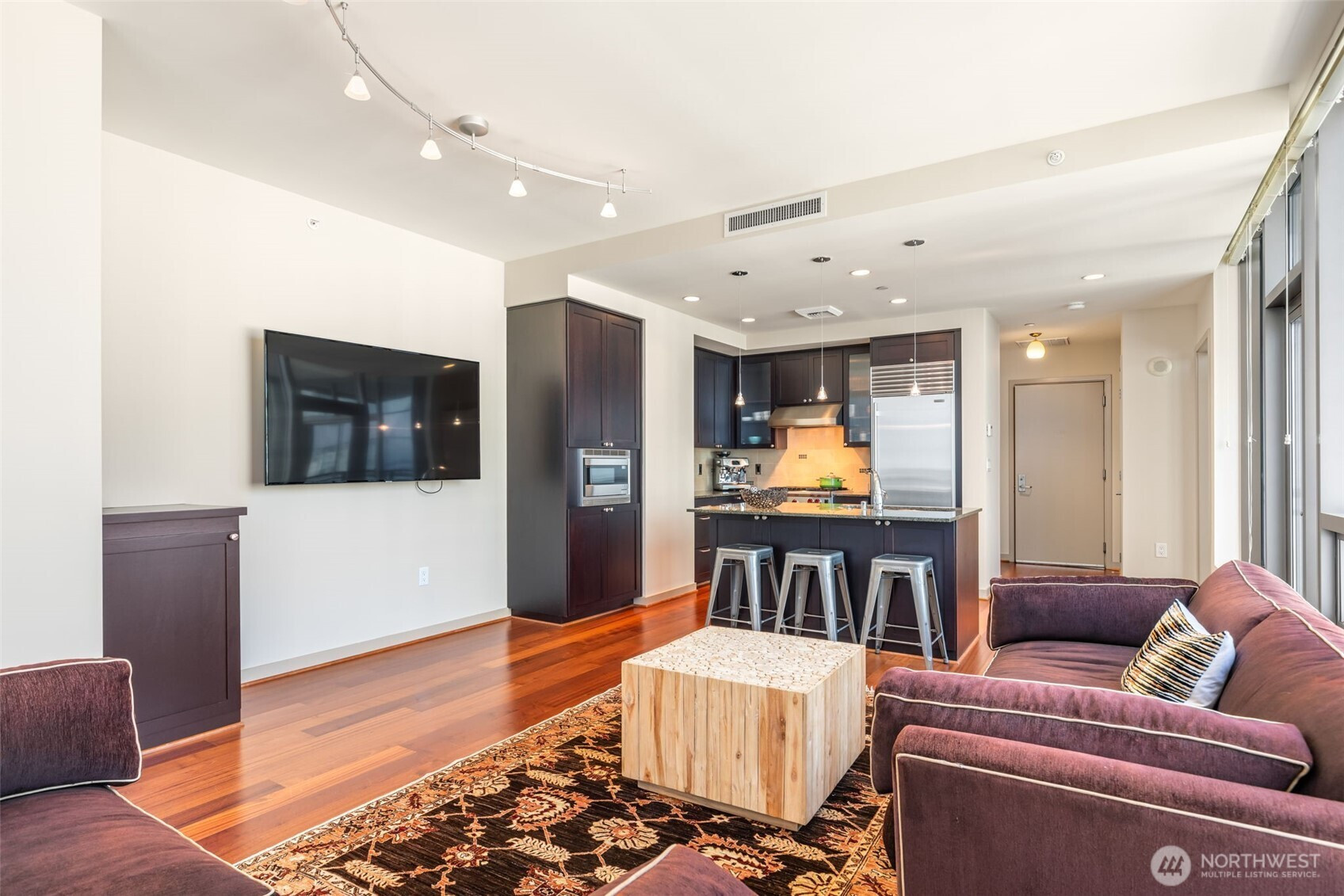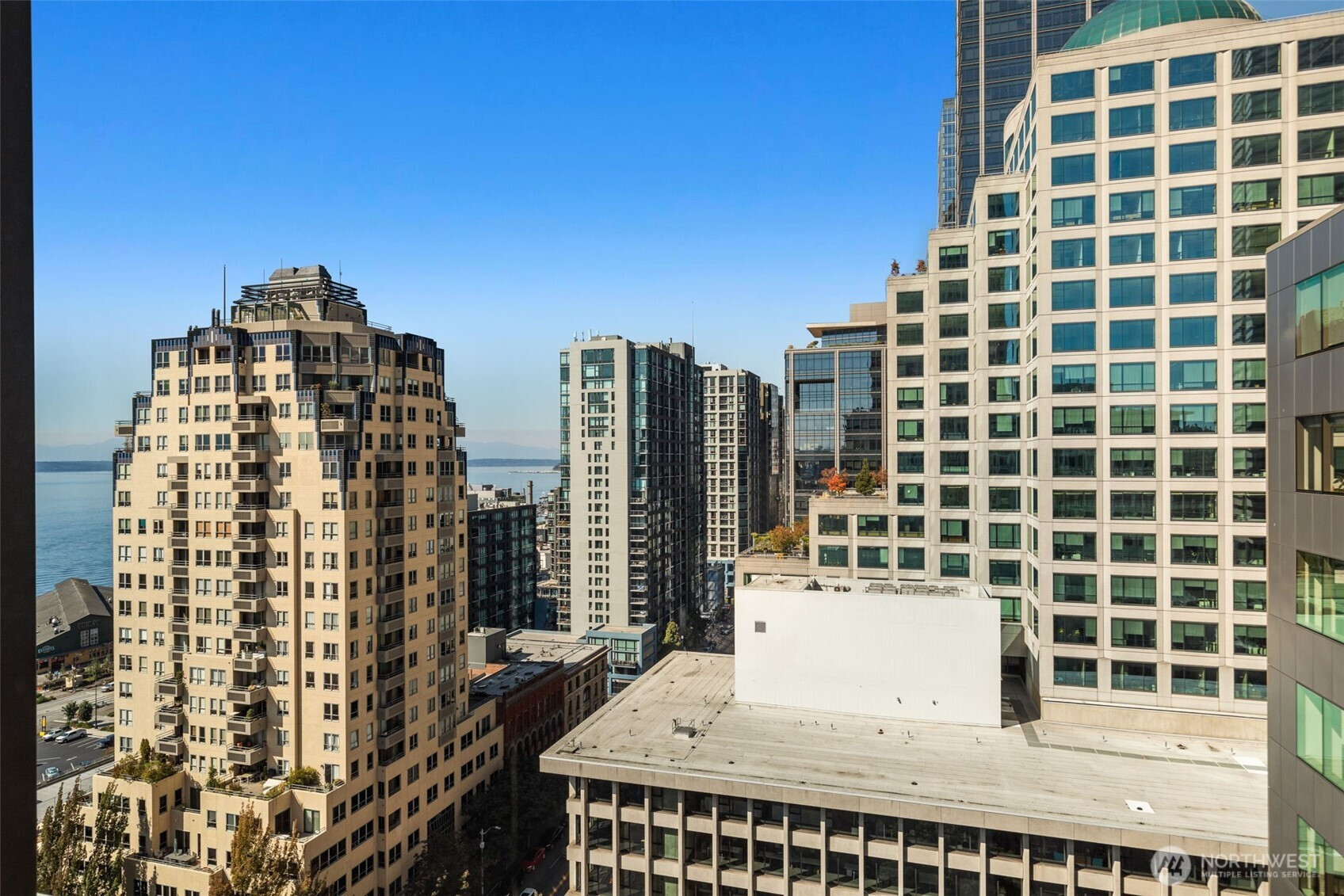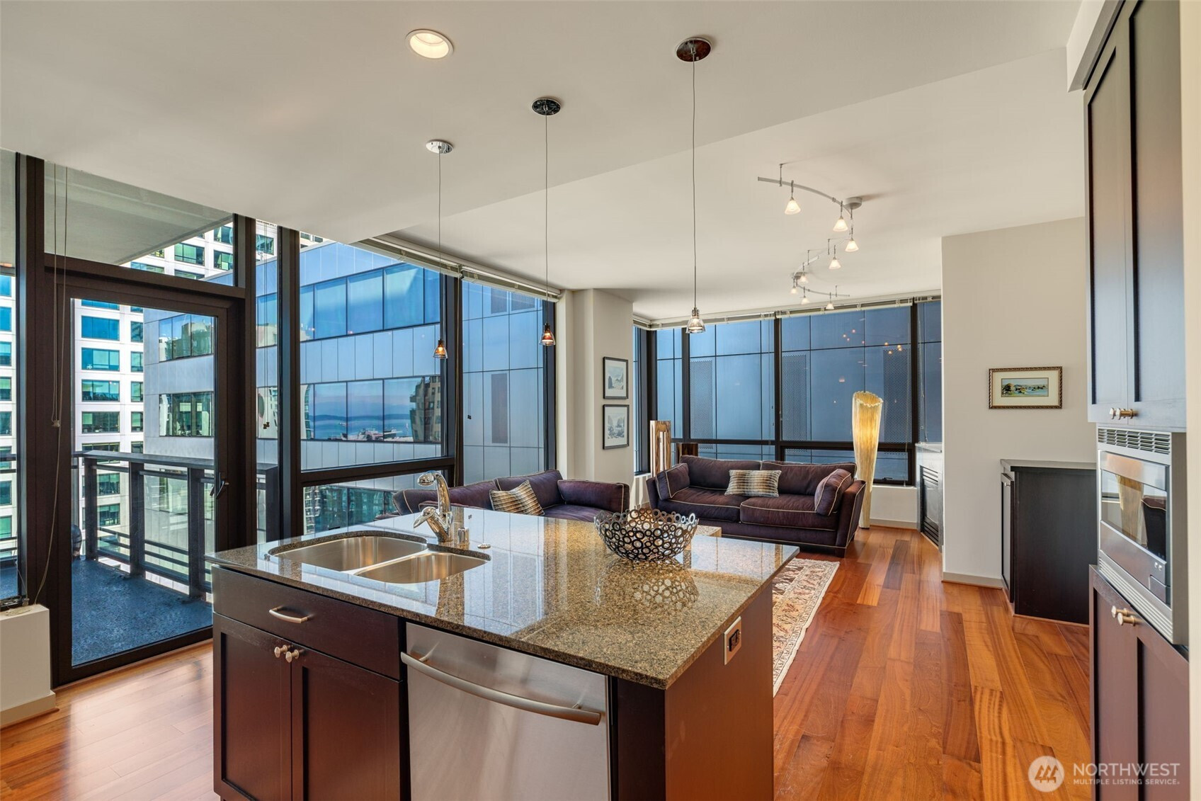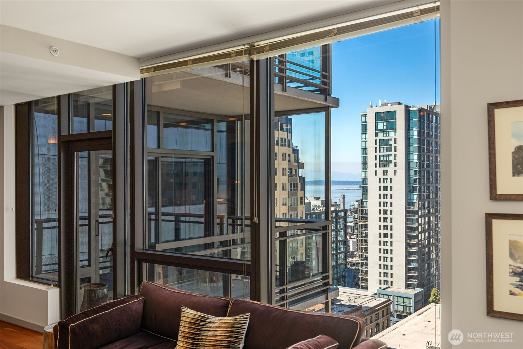 Live a first class hotel lifestyle at Madison Tower in this luxury residence above Hotel 1000. Walls of windows surround this northeast corner with city and water views looking north towards Pike Place Market and Seattle’s vibrant downtown. Spacious floor plan includes large living space with high ceilings, bedroom fit for a king bed with ensuite bath, large covered deck and separate office with custom built-ins. Hardwood floors, open kitchen with huge island and gas cooking. Excellent value for such quality construction in a desirable location near downtown Seattle’s Waterfront District and stadiums, between the ferries and financial district. Hotel amenities include restaurants, lounges, resident only rooftop deck, and full service staff.