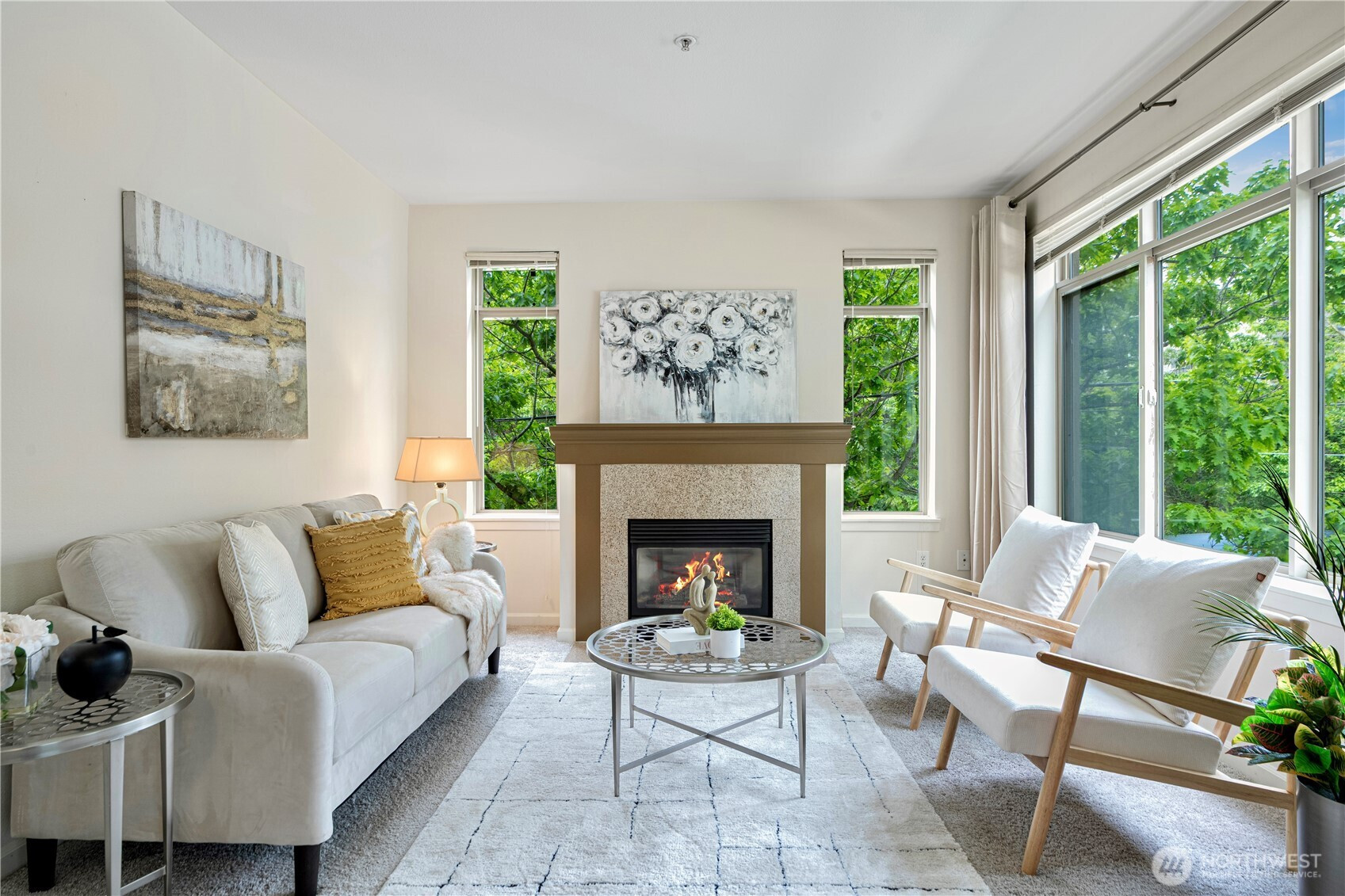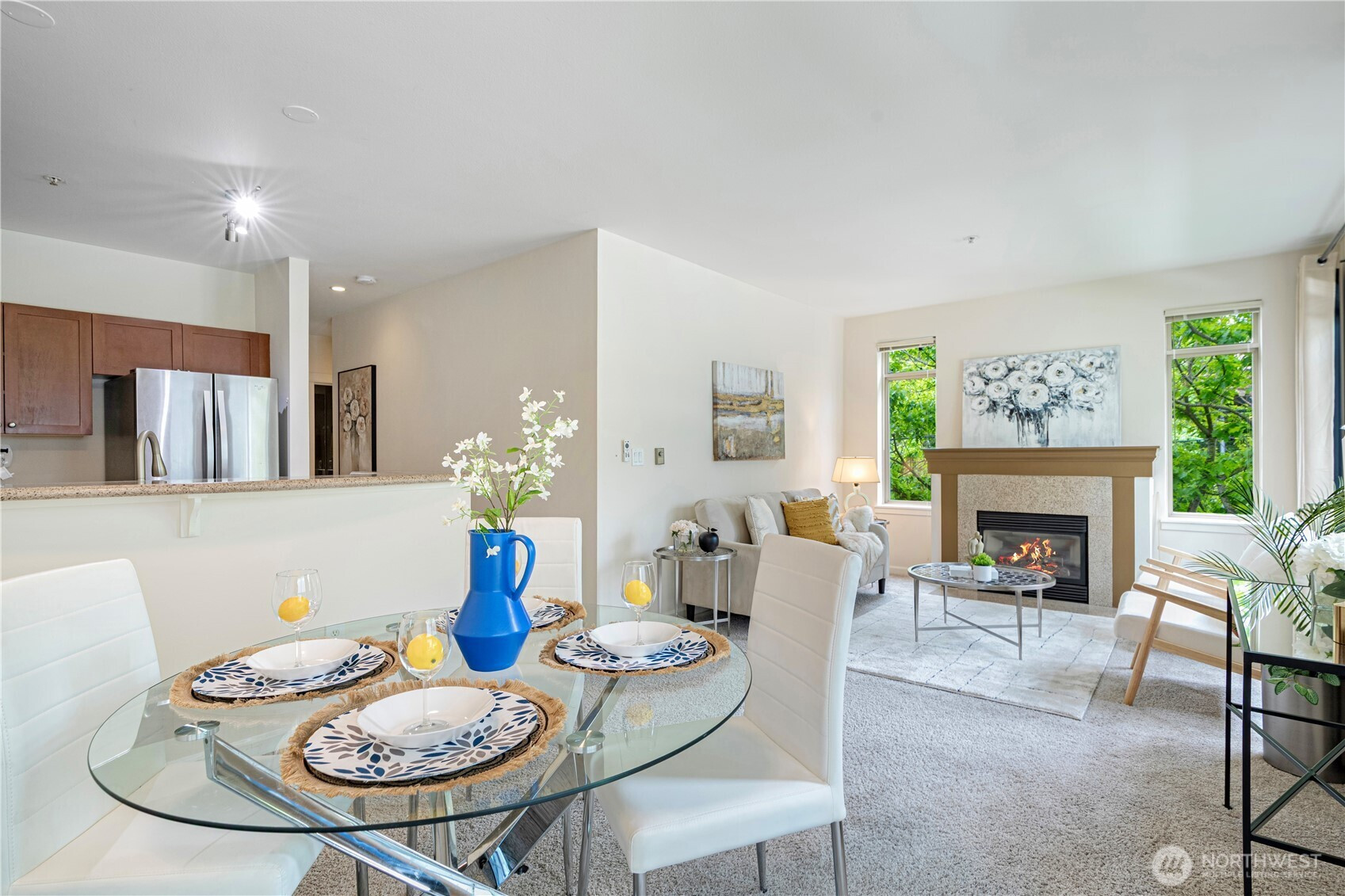 Discover the best of Westlake in this bright corner 1-bedroom with oversized windows, 9' ceilings, fresh paint, newer carpet, and stainless steel appliances. The open layout features whole-house radiant heat and two private decks—perfect for entertaining. The spacious bedroom includes a large walk-in closet; the bathroom offers ample cabinet space. Enjoy in-unit W/D, extra storage, secured entry, and garage parking. Building amenities: rooftop deck (great for NYE fireworks), fitness room, and clubhouse. Walk to Amazon, Facebook, Lake Union Park, SLU, restaurants, Lower QA, and public transit. No rental cap! HOA dues include water, sewer, garbage, gas, earthquake insurance, and internet.