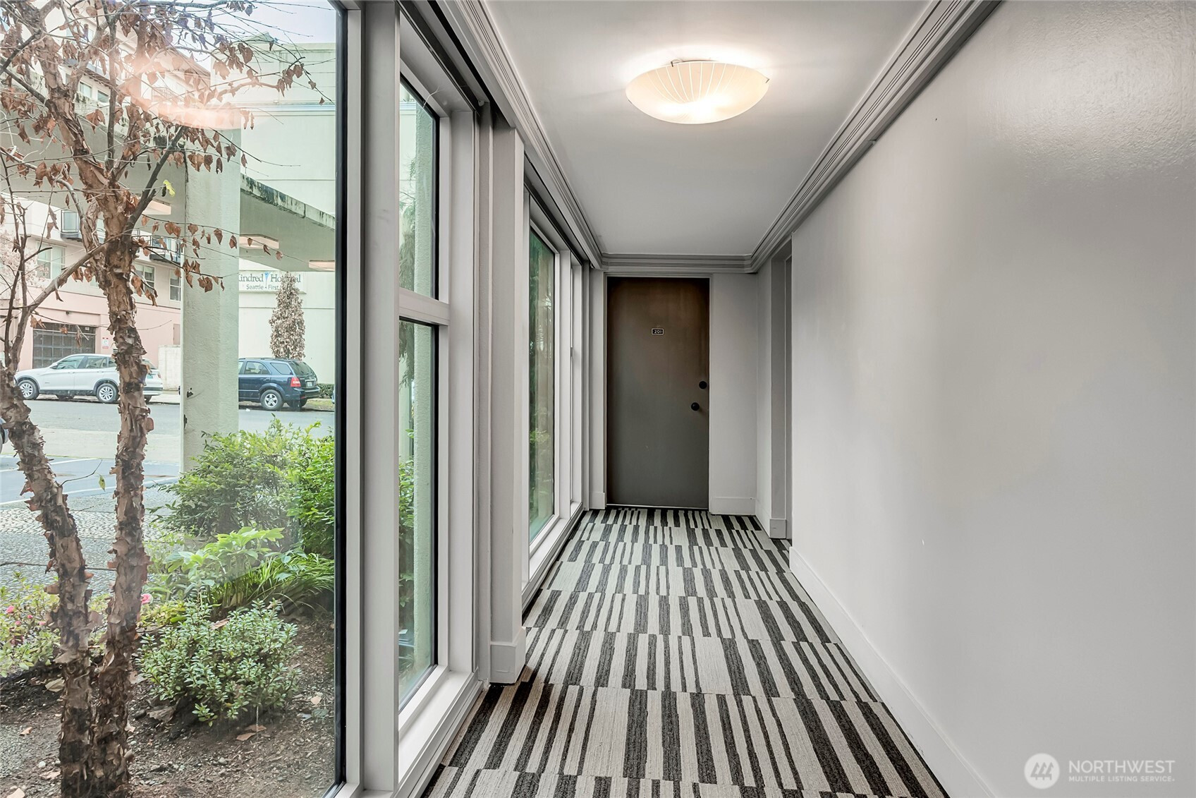 Welcome to the fabulous mid-century Talisman, where style and convenience meet in this beautifully updated one bedroom, one bath loft-style condo. Hardwood floors, soaring ceilings, and expansive new windows fill the open-concept space with natural light while offering serene views of mature oak trees and glimpses of the cityscape. The updated kitchen features modern finishes and smart functionality, and the remodeled bathroom showcases elegant marble tile for a luxurious touch. The building features secure entry, gym, sauna and extra storage. Perfectly positioned in highly desirable First Hill—just blocks from downtown, light rail, restaurants, and shops—this home combines vibrant urban living with the timeless charm of mid-century design.