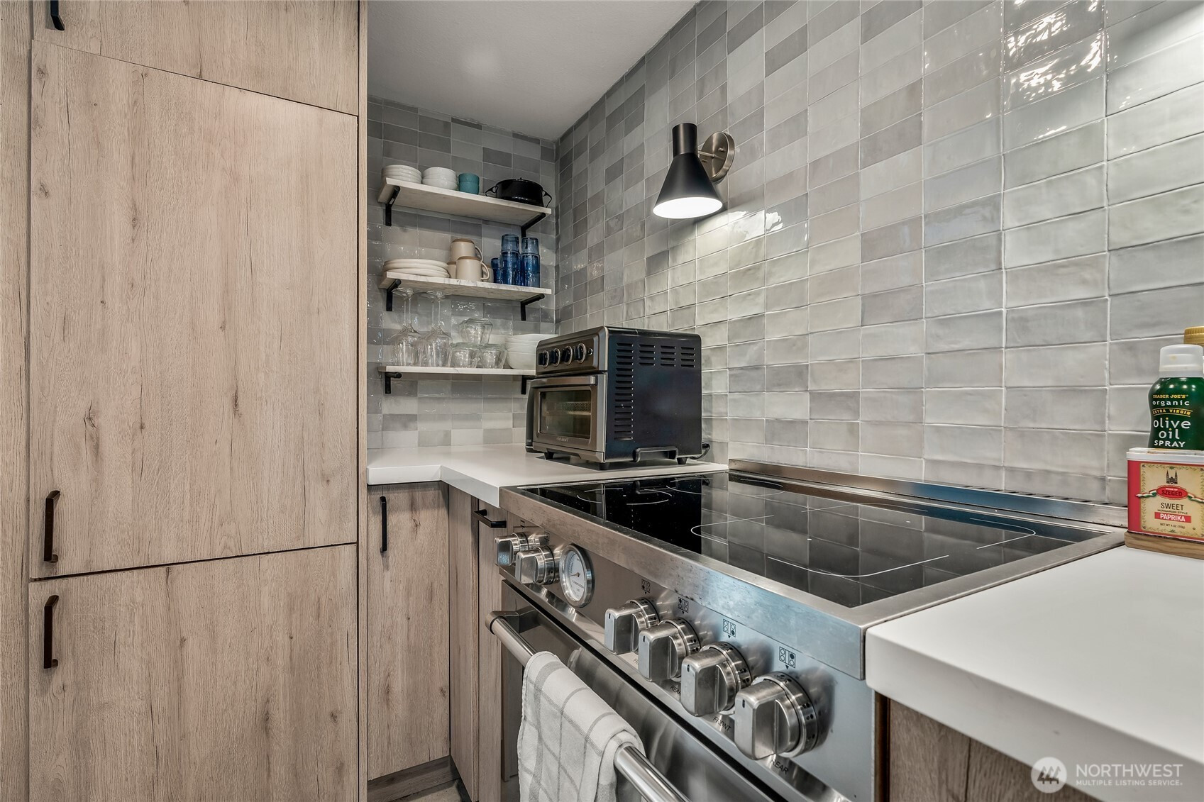 Architect-designed loft at the Talisman, a midcentury icon by the Space Needle’s architect. Soaring 15’ ceilings, oversized new windows, and exposed concrete floors create light-filled drama. Kitchen fully updated in 2023 with designer tile, Bertazzoni cabinet-front refrigerator, dishwasher, and convection range, plus a bar nook under the stairs. Loft bedroom features luxury plank flooring and a walk-in closet larger than expected. Updates include modern ceiling fan, bathroom flooring, and upgraded electrical panel. Secure building with gym, sauna, laundry, deeded parking (#13), and storage. Convenient central location with access to Paramount Theatre, convention center, transit, I-5, 520, and light rail. Ask about the 2.75% assumable loan!
