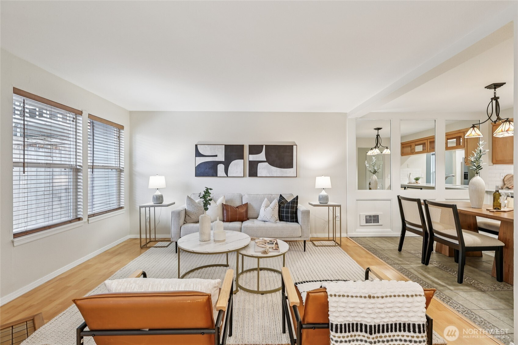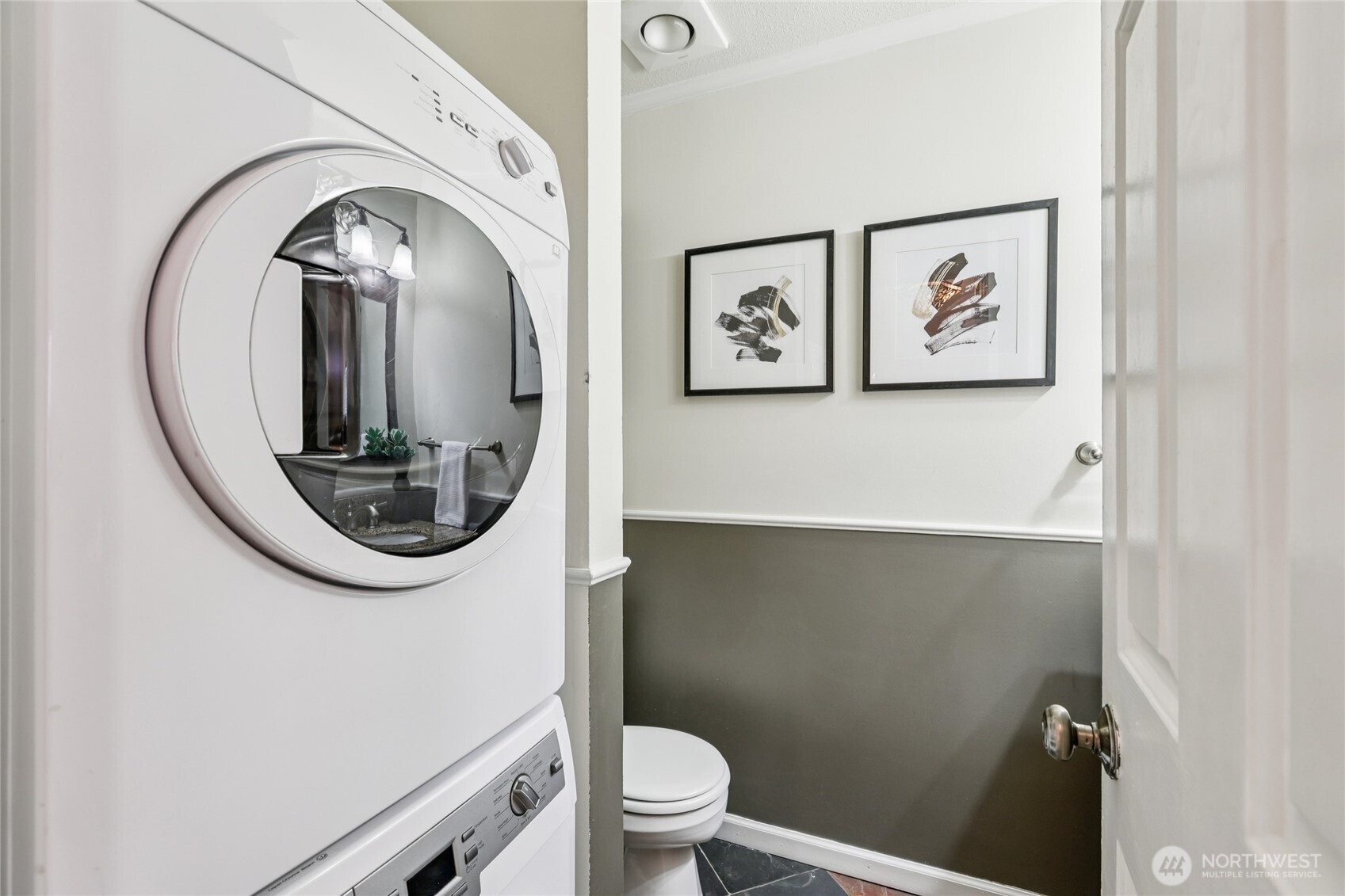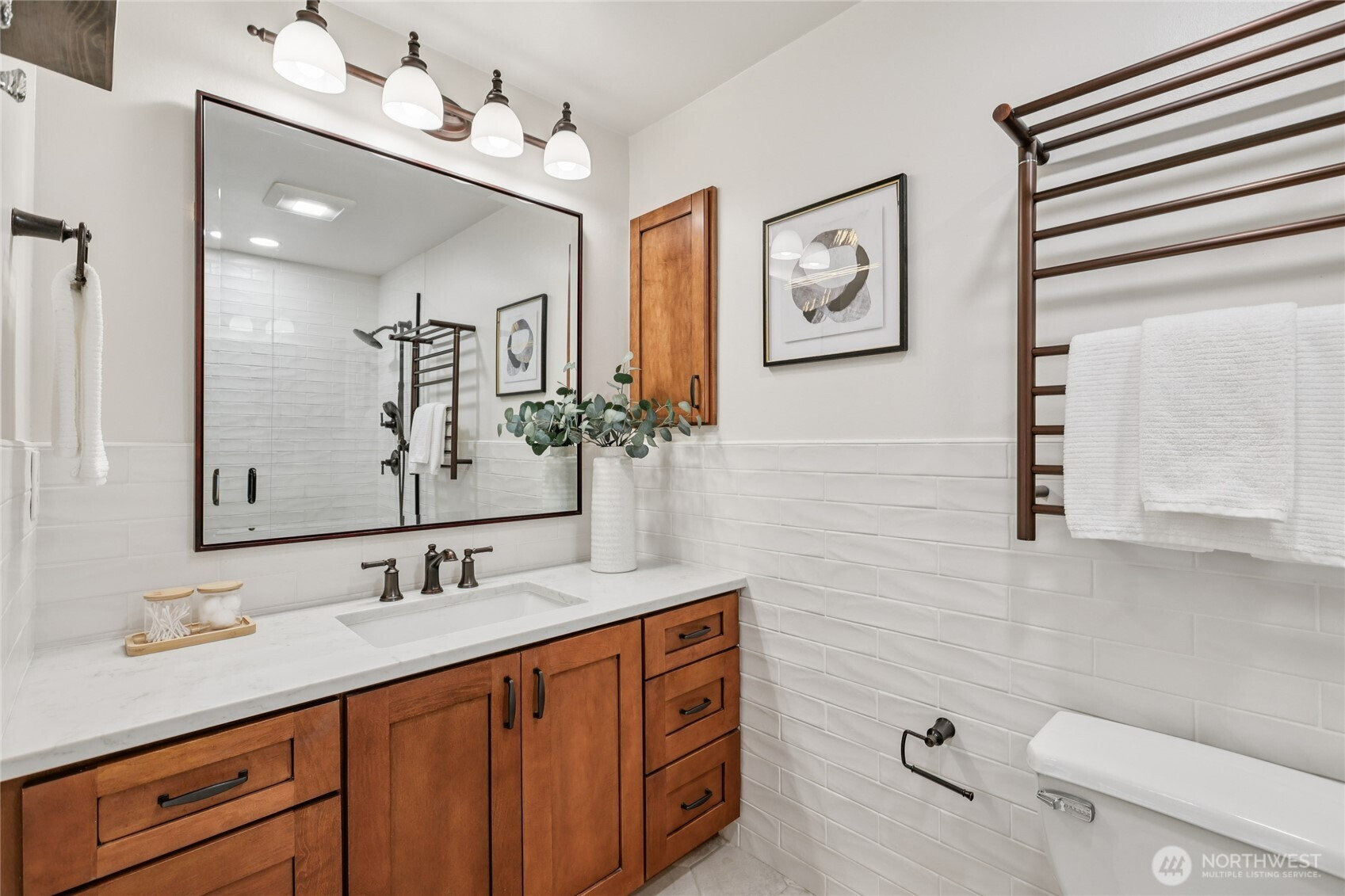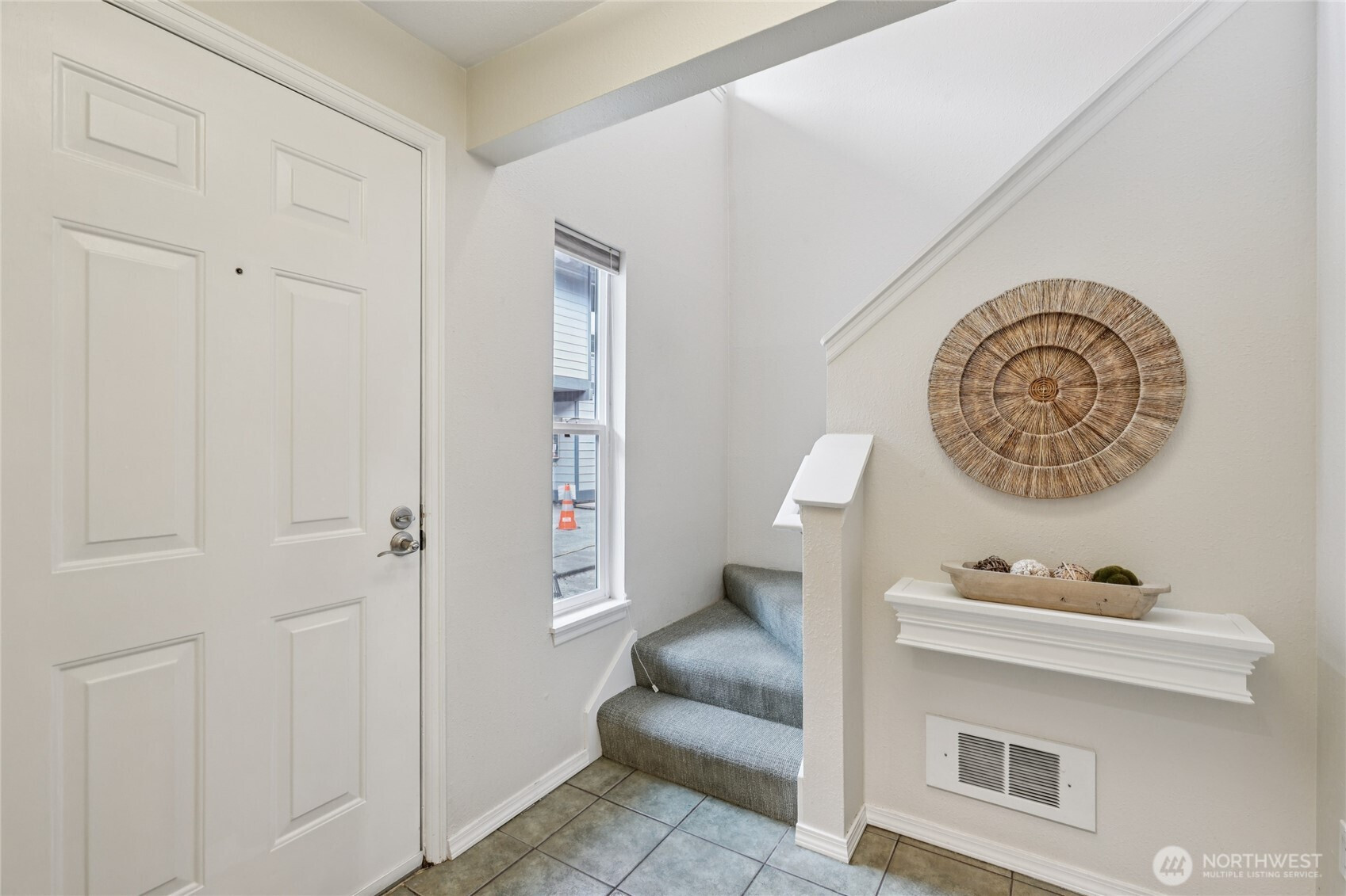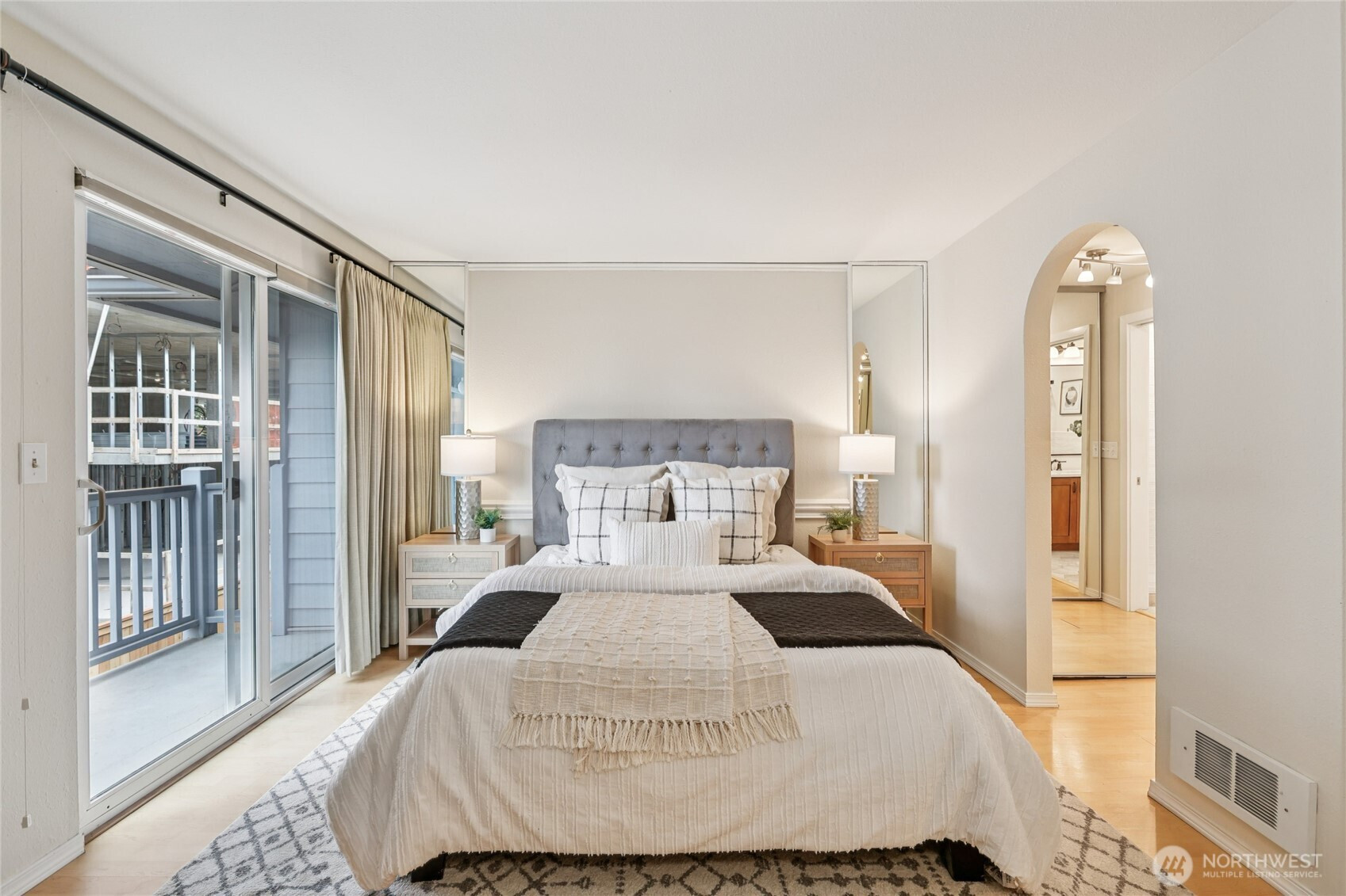 Tastefully updated 2 Bed/ 2.5 Bath townhome conveniently located in the heart of downtown Bellevue! The open main level is ideal for entertaining and centers around a cozy wood-burning fireplace. Remodeled kitchen features quartz counters, subway-tile backsplash, shaker cabinets and stainless steel appliances. Half bath with laundry on main level. Light-filled stairwell with big windows and recently installed plush carpet leads you up to two spacious bedrooms and two bathrooms. Large primary suite features dual closets, a second wood-burning fireplace and a balcony with city views. Fully updated en-suite bath with spacious walk-in shower and heated towel rack. Partially fenced back patio with Trex deck provides plenty of space for a BBQ and outdoor seating. Recent building updates include roof and exterior paint with courtyard improvements underway. Secured garage with two designated parking spaces and a large storage room. Investor friendly with no rental cap! Unbeatable location with easy access to shopping, restaurants, parks, freeways and top-rated Bellevue schools!