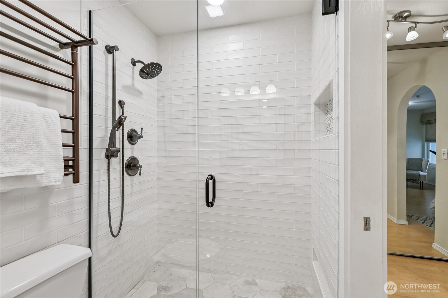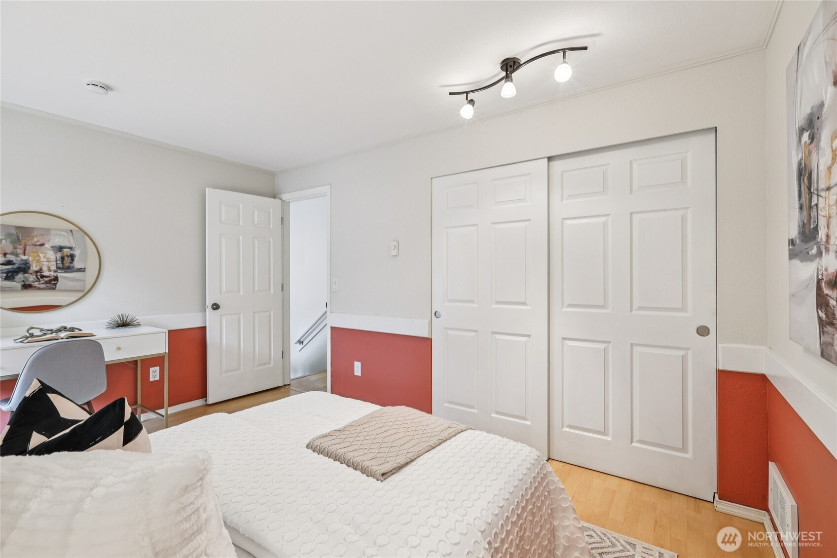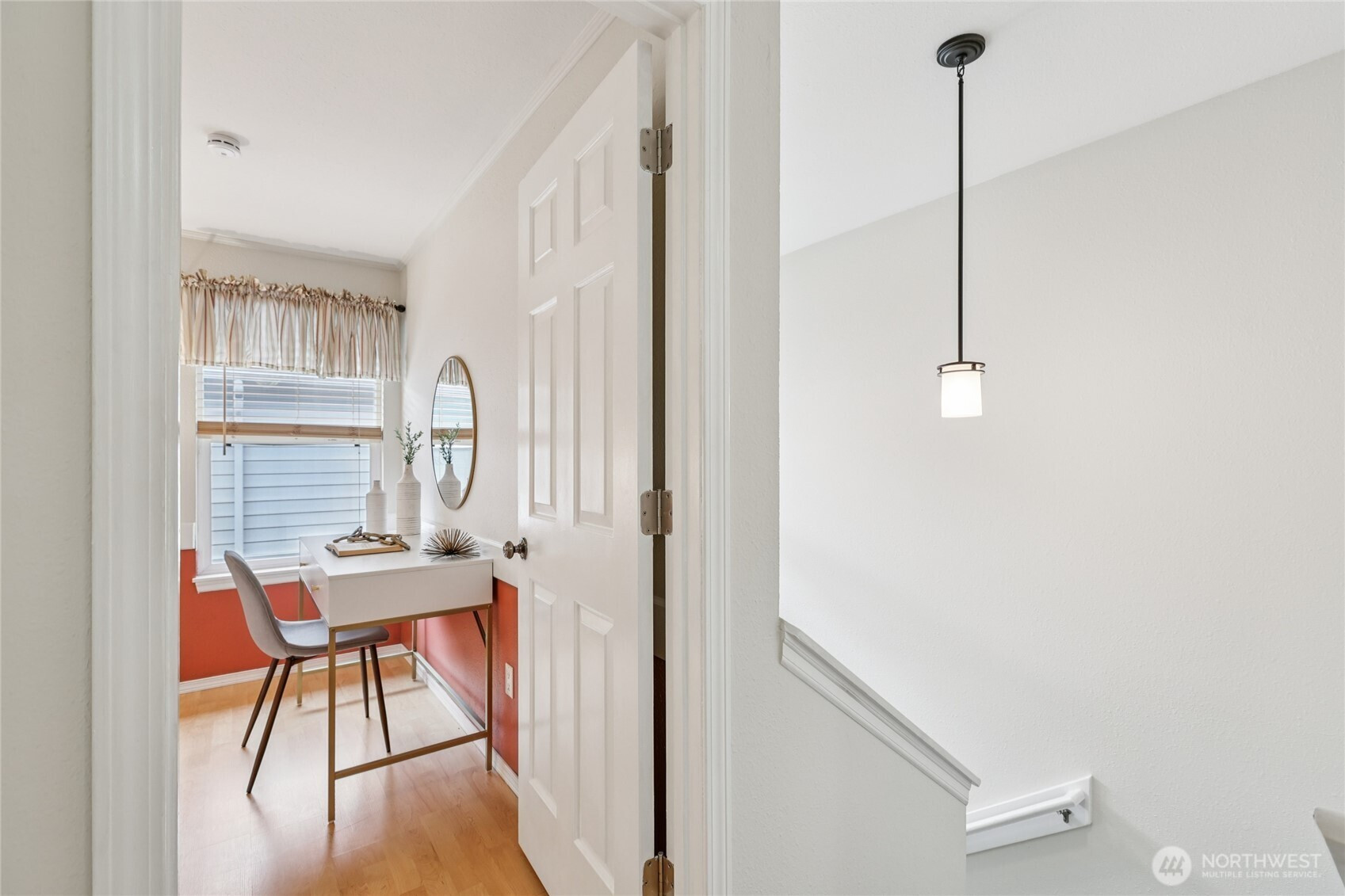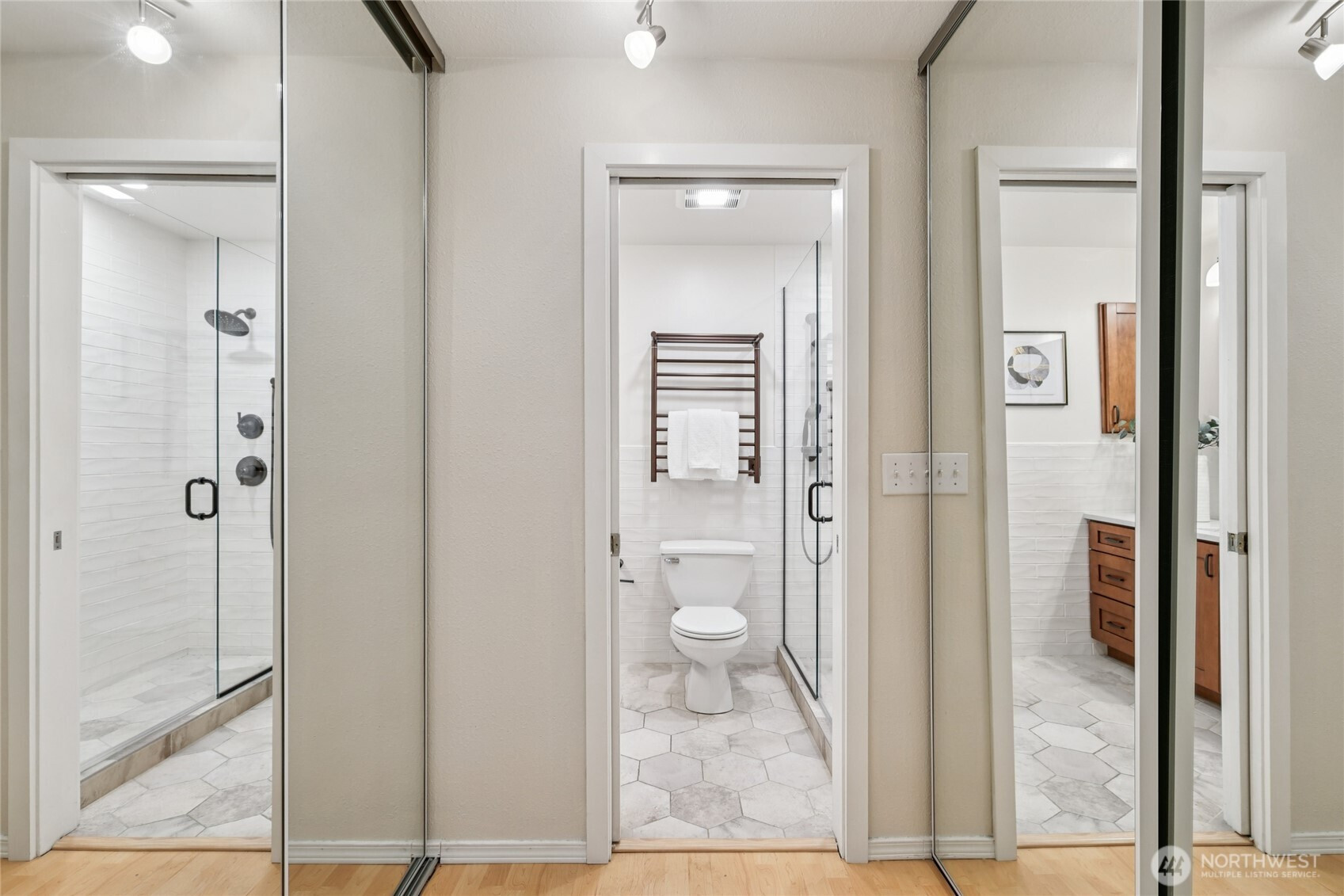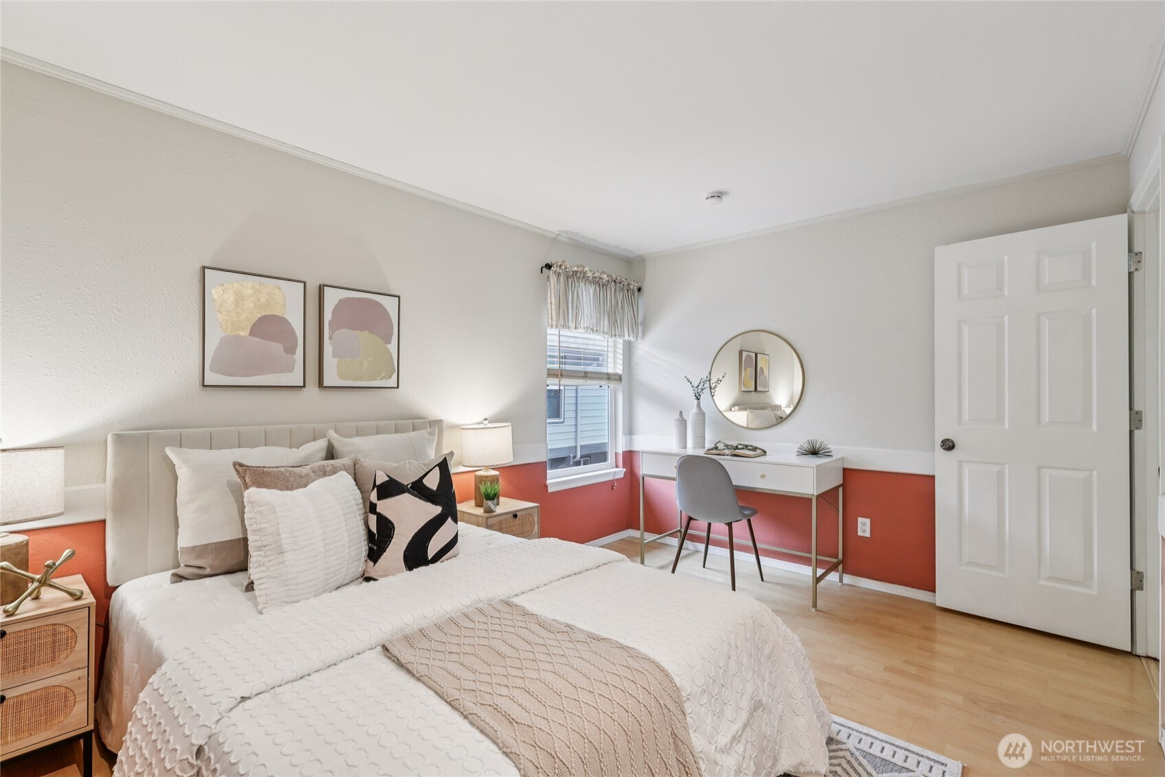 Tastefully updated 2 Bed/ 2.5 Bath townhome conveniently located in the heart of downtown Bellevue! The open main level is ideal for entertaining and centers around a cozy wood-burning fireplace. Remodeled kitchen features quartz counters, subway-tile backsplash, shaker cabinets and stainless steel appliances. Half bath with laundry on main level. Light-filled stairwell with big windows and recently installed plush carpet leads you up to two spacious bedrooms and two bathrooms. Large primary suite features dual closets, a second wood-burning fireplace and a balcony with city views. Fully updated en-suite bath with spacious walk-in shower and heated towel rack. Partially fenced back patio with Trex deck provides plenty of space for a BBQ and outdoor seating. Recent building updates include roof and exterior paint with courtyard improvements underway. Secured garage with two designated parking spaces and a large storage room. Investor friendly with no rental cap! Unbeatable location with easy access to shopping, restaurants, parks, freeways and top-rated Bellevue schools!