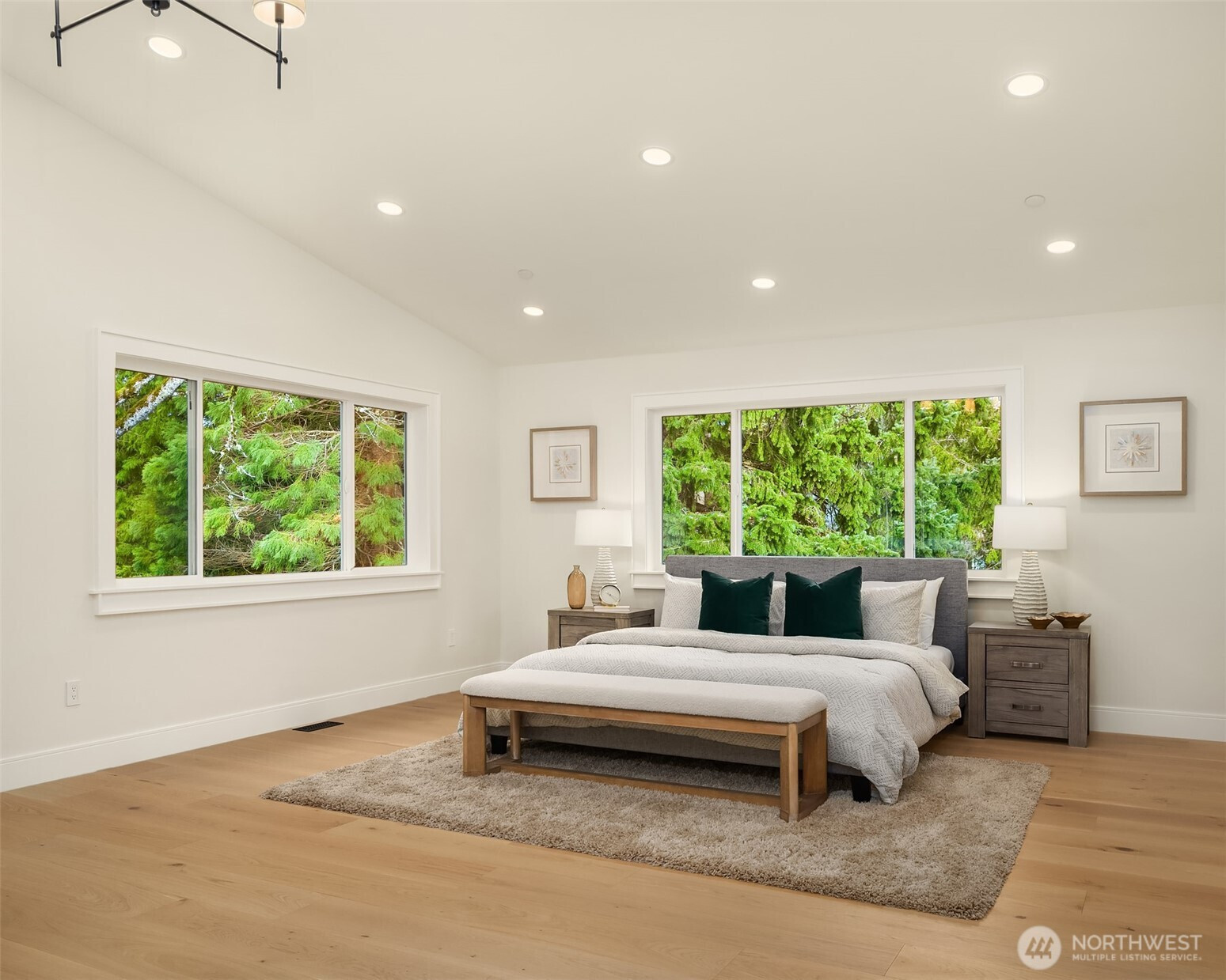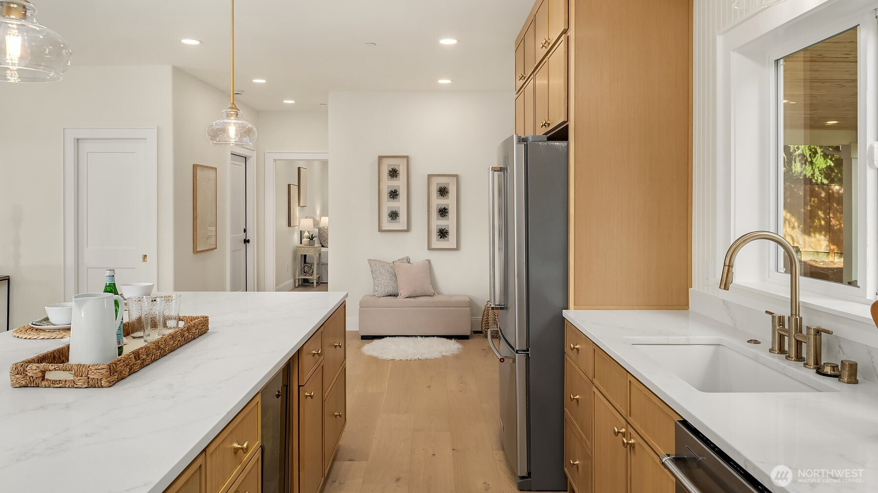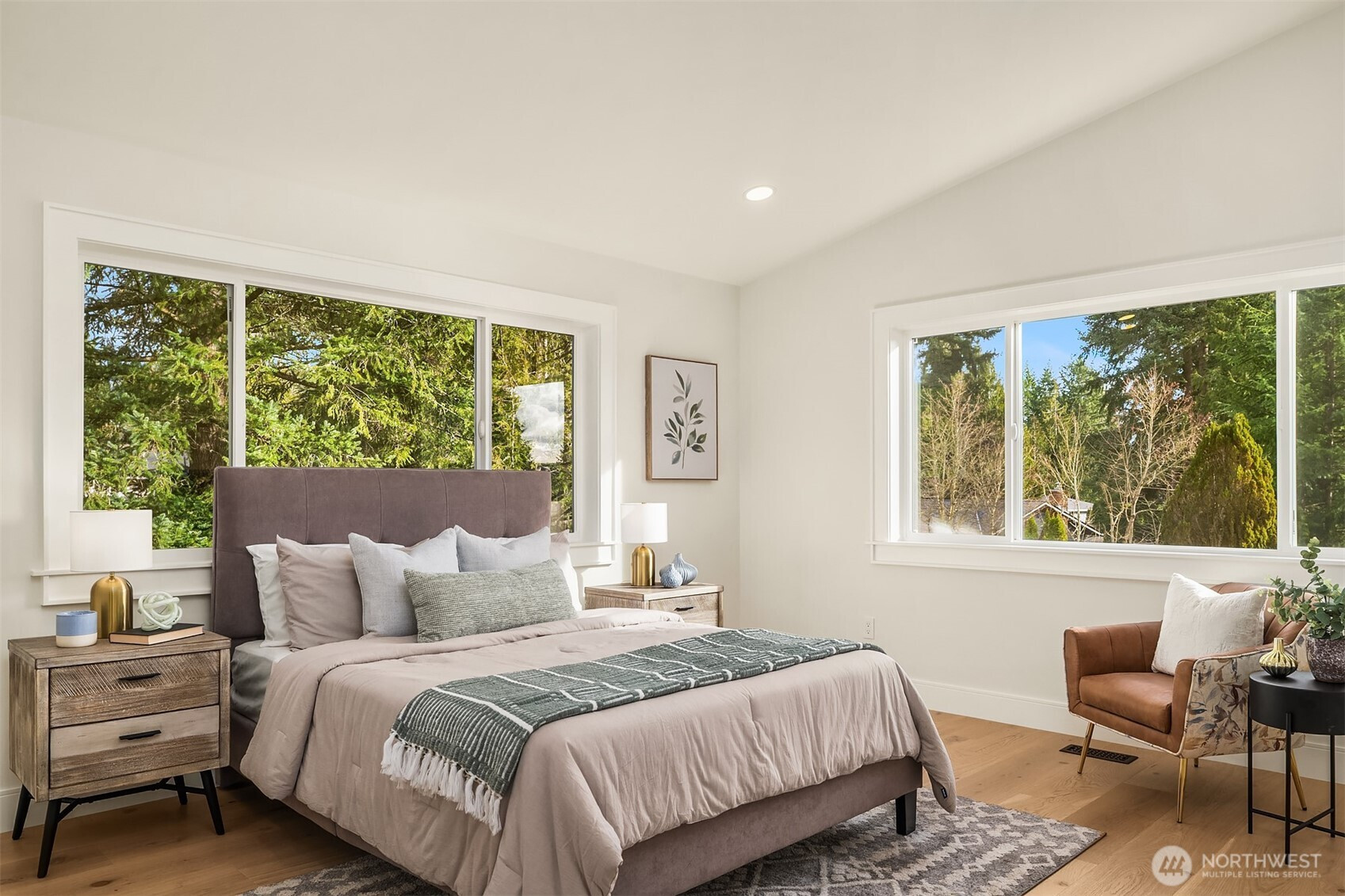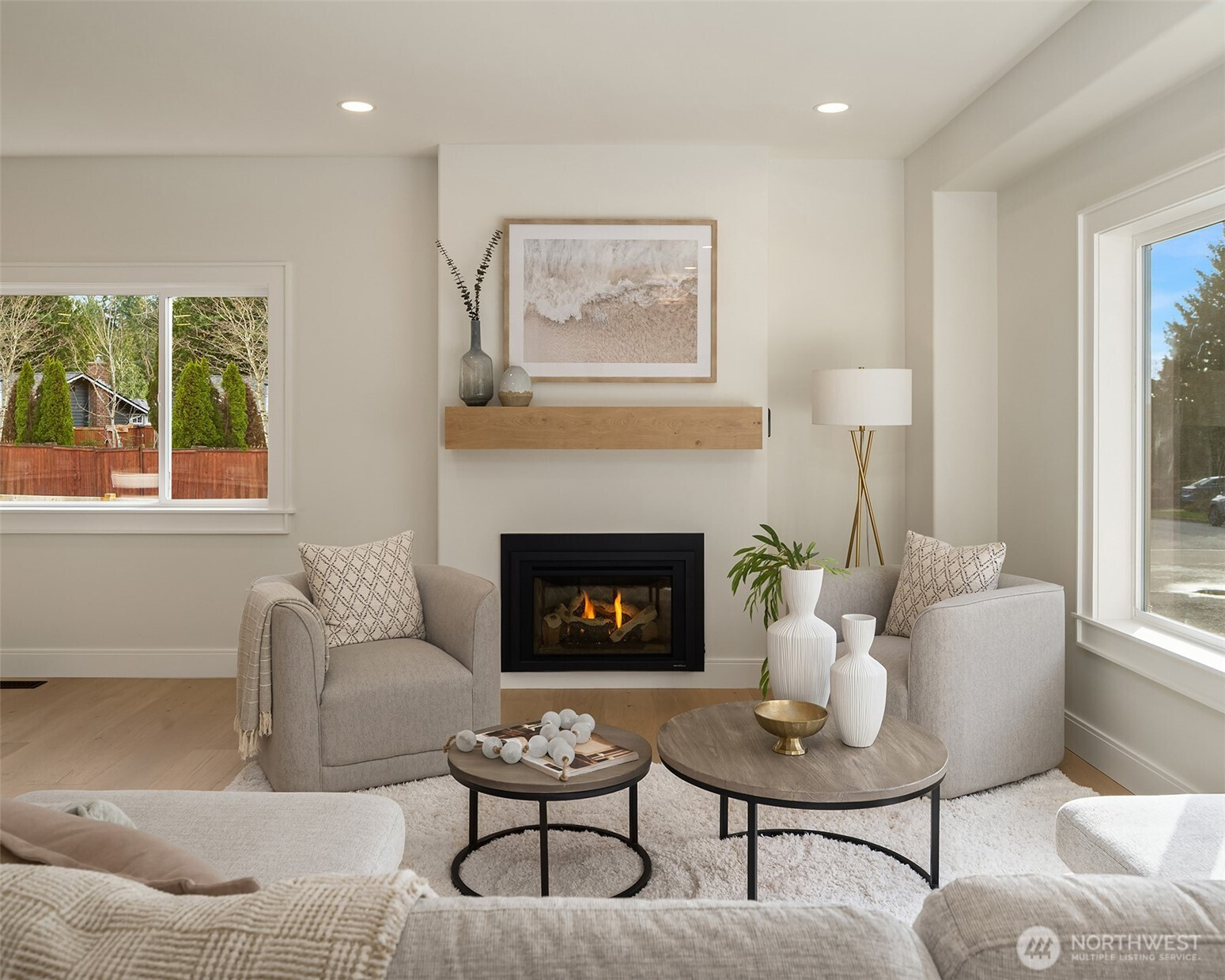 Designed for buyers who appreciate refined craftsmanship and thoughtful details, this beautifully rebuilt corner-lot home offers a rare blend of style, comfort, and everyday luxury. Vaulted ceilings upstairs and high ceilings on the main level create an airy, light-filled flow throughout. The chef-inspired kitchen features premium appliances, engineered hardwood floors, custom trim, and a hidden walk-in pantry, opening seamlessly to a warm living space centered around a new gas fireplace, perfect for quiet evenings or lively gatherings. Heated bathroom floors elevate daily routines, while expansive closets provide effortless organization. The primary suite includes a generous private office ideal for remote work, and a downstairs bedroom with a full bath offers flexibility for guests, in-laws, or a nanny. Step outside through the large French doors onto a ~500 sq ft covered patio already wired for TVs and an outdoor kitchen, setting the stage for memorable indoor-outdoor entertaining all year round. With brand-new heat pump HVAC, plumbing, electrical (including panel), roof, siding, windows, flooring, fresh landscaping, RV parking, a spacious garage ready for custom-built-ins, and a separate laundry room, every detail has been carefully curated for turnkey living. Quietly situated on a peaceful street in Redmond, homes finished to this level rarely come available. Schedule your private tour and experience the difference in person.