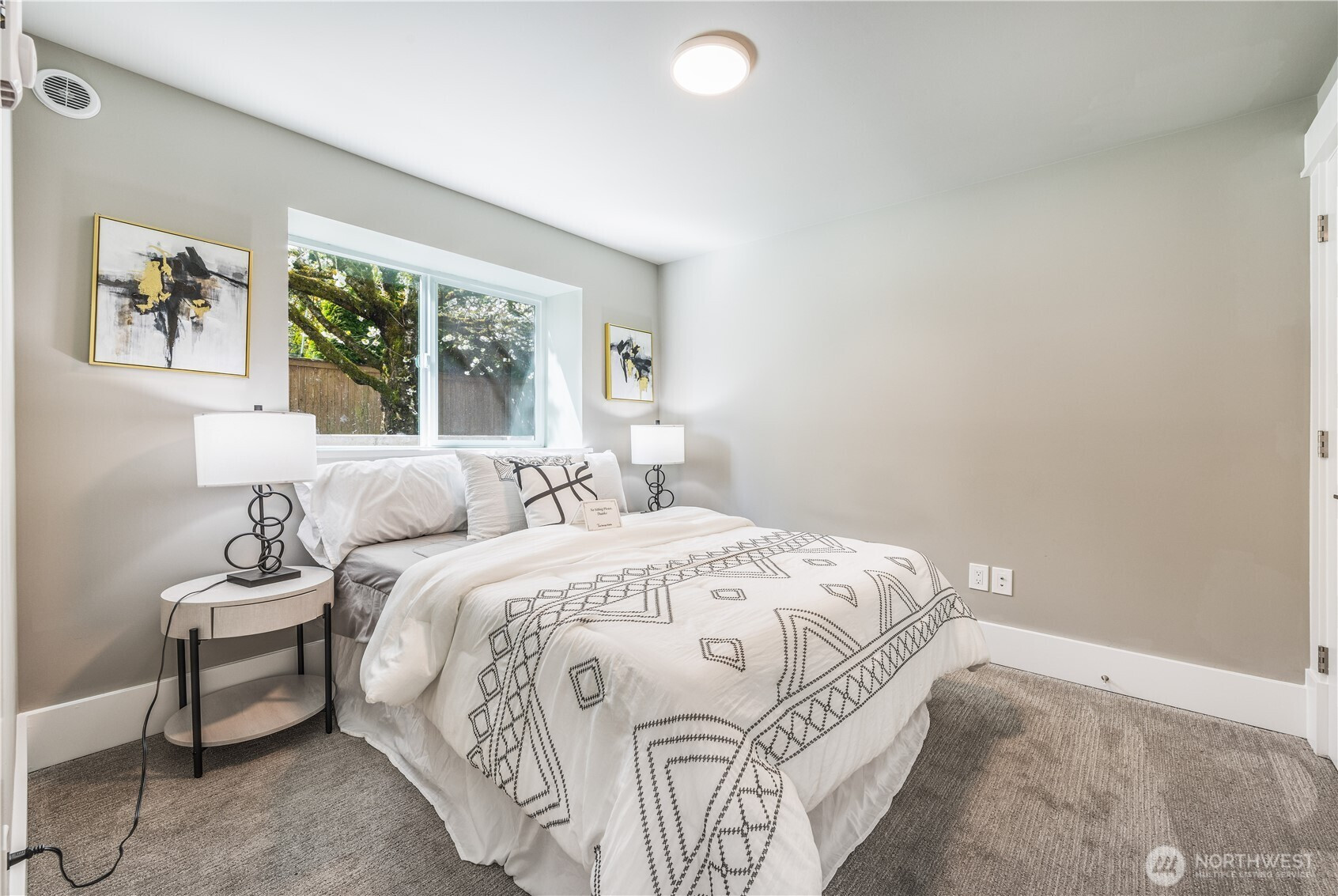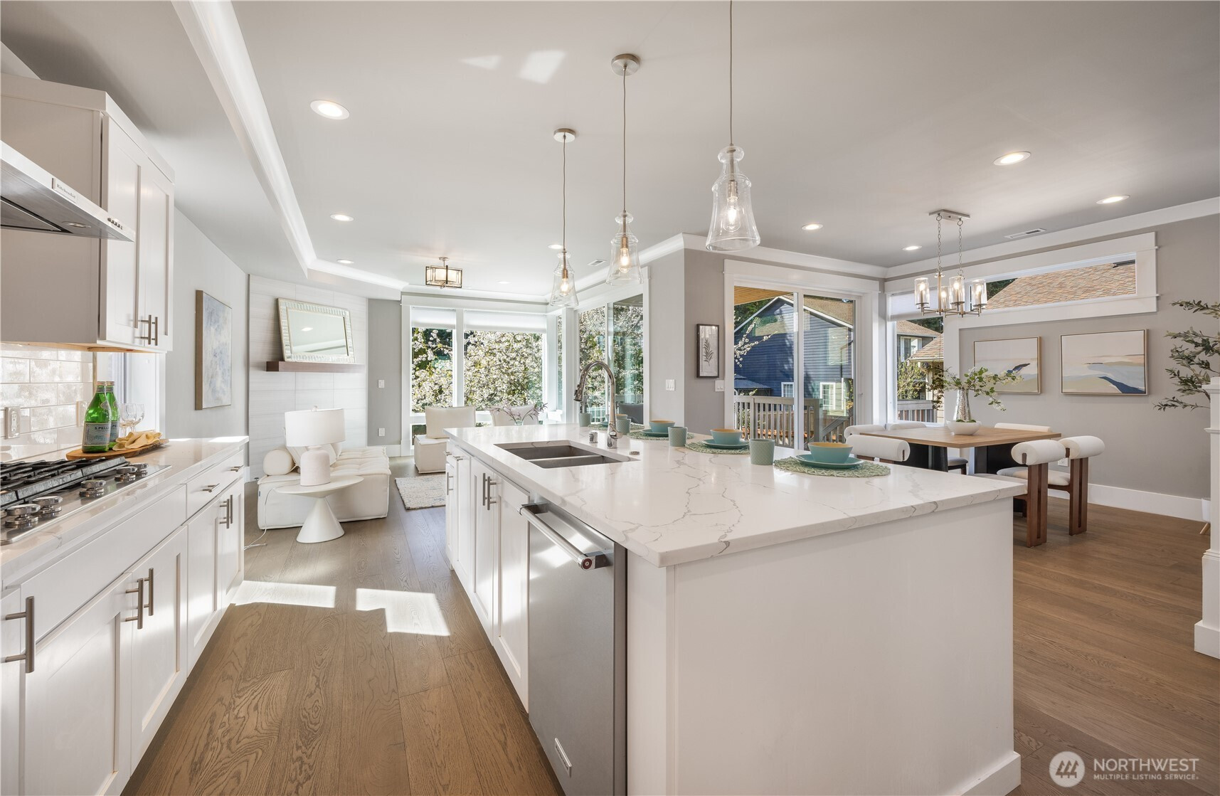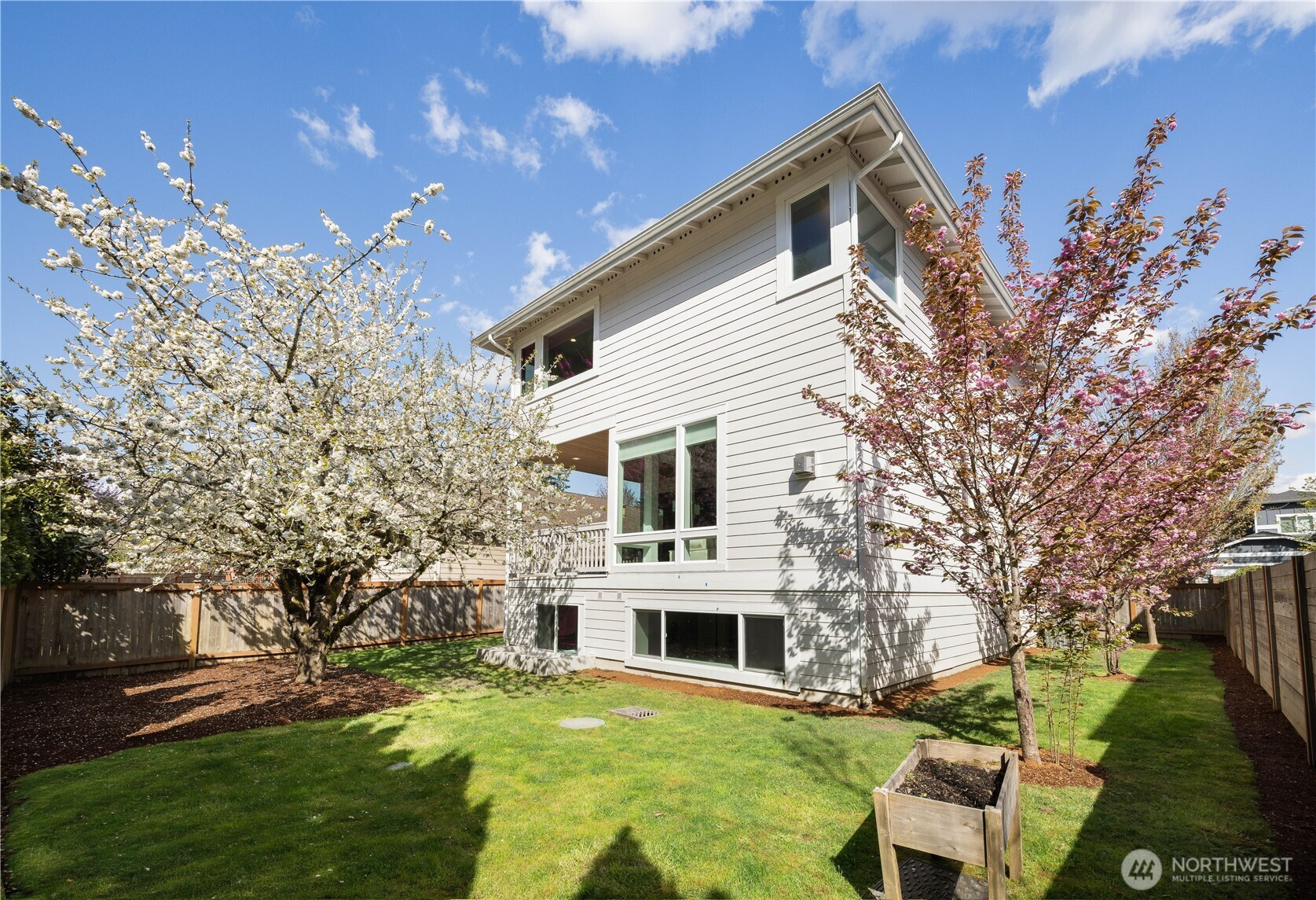 Better than new! Rare opportunity to own a recently built single-family home in the highly sought-after Rose Hill neighborhood at this price point. High quality meets refined taste, showcasing designer-grade modern finishes throughout. Engineered hardwood floors span the main level. The dream white kitchen features slab quartz countertops, full-height tile backsplash, maple cabinetry, under-cabinet lighting, and stylish fixtures. A grand island with eat-in and walk-in pantry provide both beauty and functionality, complemented by a full suite of KitchenAid appliances. The inviting living room with a cozy fireplace flows seamlessly into the dining area and out to a covered patio—perfect for entertaining and enjoying views of seasonal blossoms from every window. A bright main-floor office with an adjacent shower bath offers excellent flexibility. Upstairs, the primary suite offers a spa-like retreat with a walk-in closet. Two additional bedrooms and a full bath complete the upper level. The lower level includes a spacious bonus room, plus an additional bedroom with a shower bath: ideal for guests or multi-generational living. Additional features include A/C, tankless water heater, and a generous fully fenced yard with mature landscaping and year-round blossoms. Prime location just minutes to downtown Kirkland, Tech site, Costco, I-405. Top-rated Lake Washington schools. Don’t miss this opportunity to embrace the warmth and joy Kirkland has to offer!