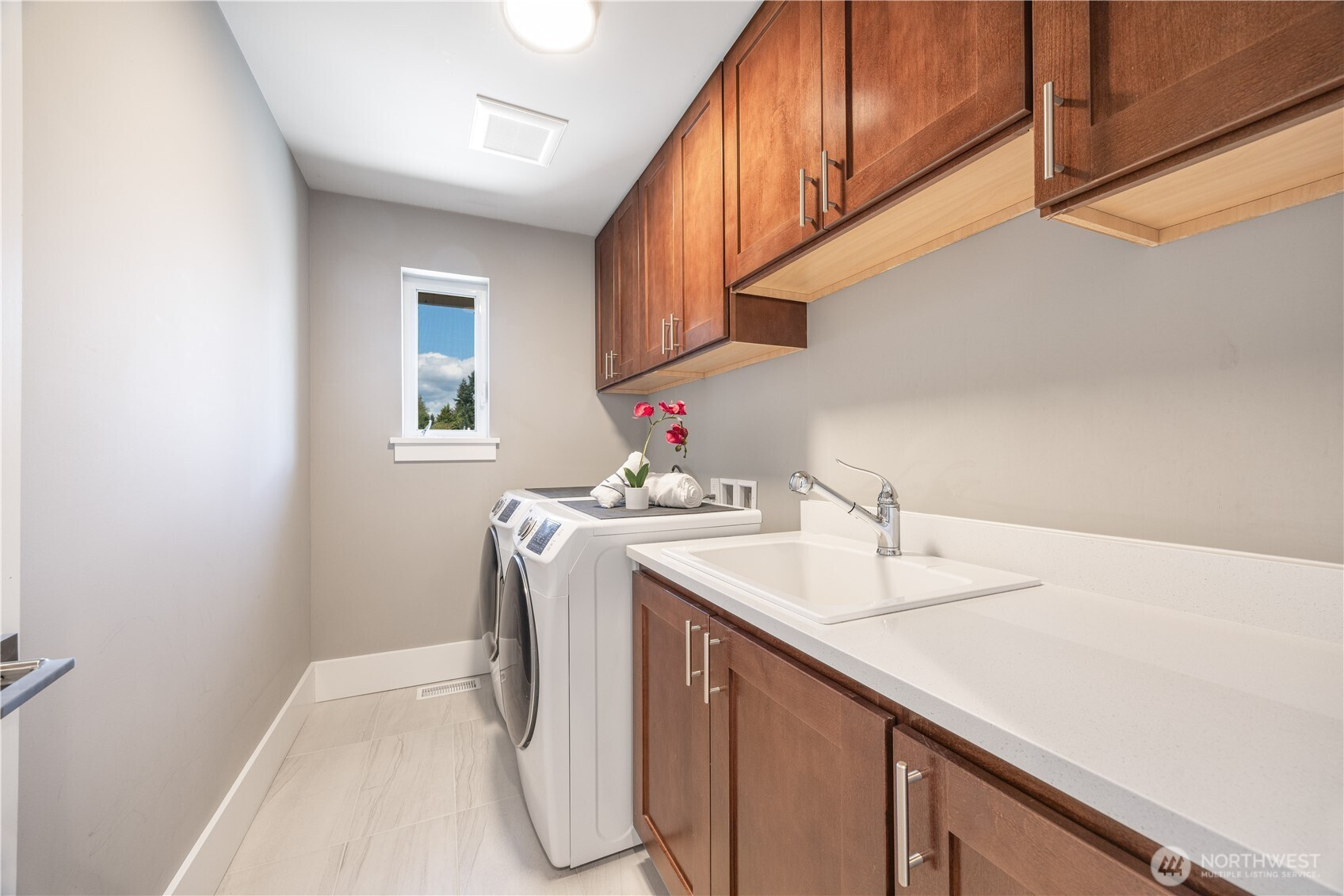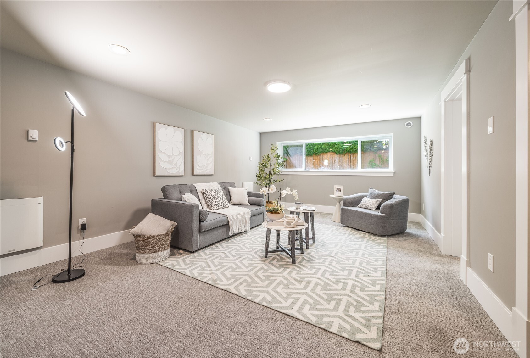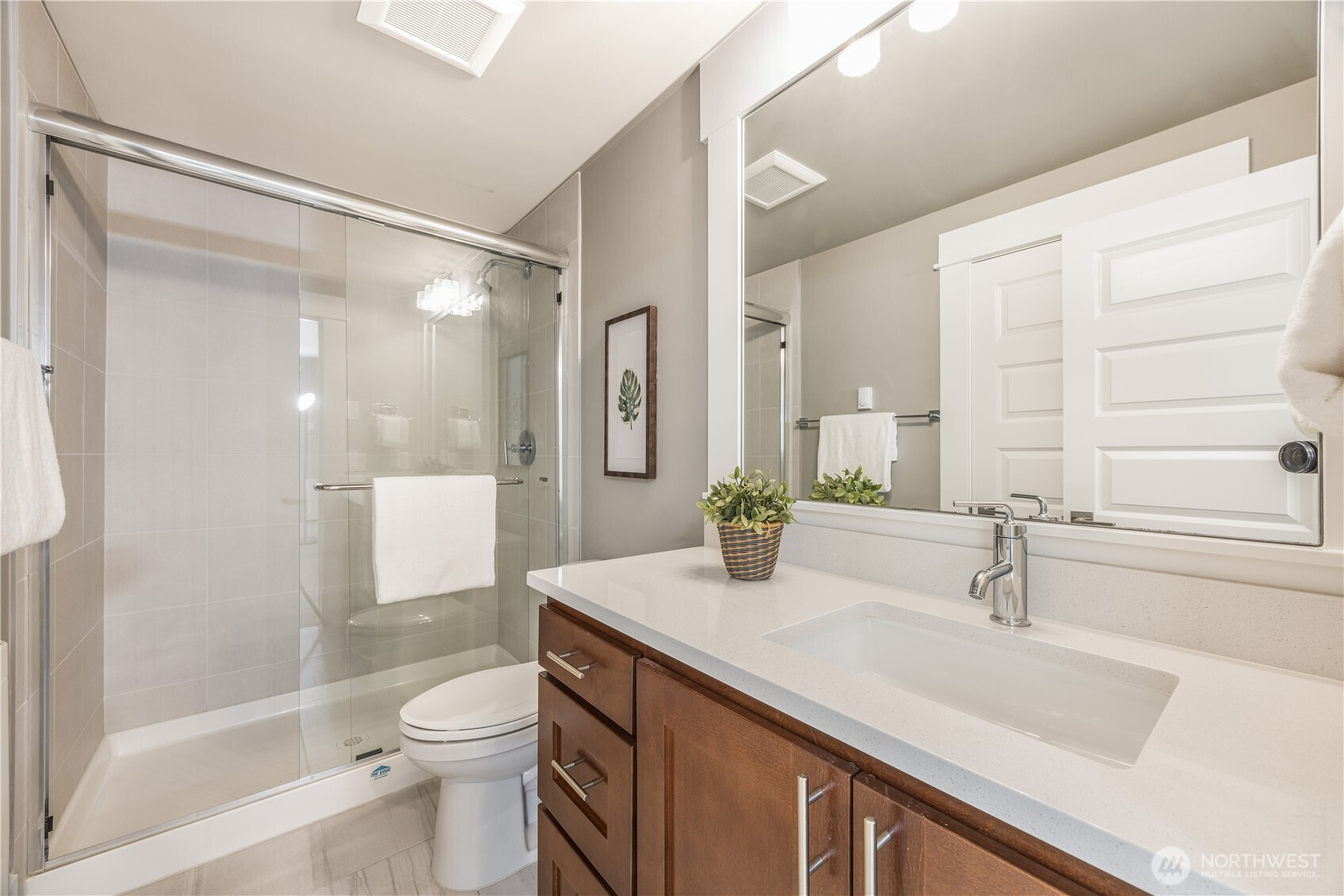 Better than new! Rare opportunity to own a recently built single-family home in the highly sought-after Rose Hill neighborhood at this price point. High quality meets refined taste, showcasing designer-grade modern finishes throughout. Engineered hardwood floors span the main level. The dream white kitchen features slab quartz countertops, full-height tile backsplash, maple cabinetry, under-cabinet lighting, and stylish fixtures. A grand island with eat-in and walk-in pantry provide both beauty and functionality, complemented by a full suite of KitchenAid appliances. The inviting living room with a cozy fireplace flows seamlessly into the dining area and out to a covered patio—perfect for entertaining and enjoying views of seasonal blossoms from every window. A bright main-floor office with an adjacent shower bath offers excellent flexibility. Upstairs, the primary suite offers a spa-like retreat with a walk-in closet. Two additional bedrooms and a full bath complete the upper level. The lower level includes a spacious bonus room, plus an additional bedroom with a shower bath: ideal for guests or multi-generational living. Additional features include A/C, tankless water heater, and a generous fully fenced yard with mature landscaping and year-round blossoms. Prime location just minutes to downtown Kirkland, Tech site, Costco, I-405. Top-rated Lake Washington schools. Don’t miss this opportunity to embrace the warmth and joy Kirkland has to offer!