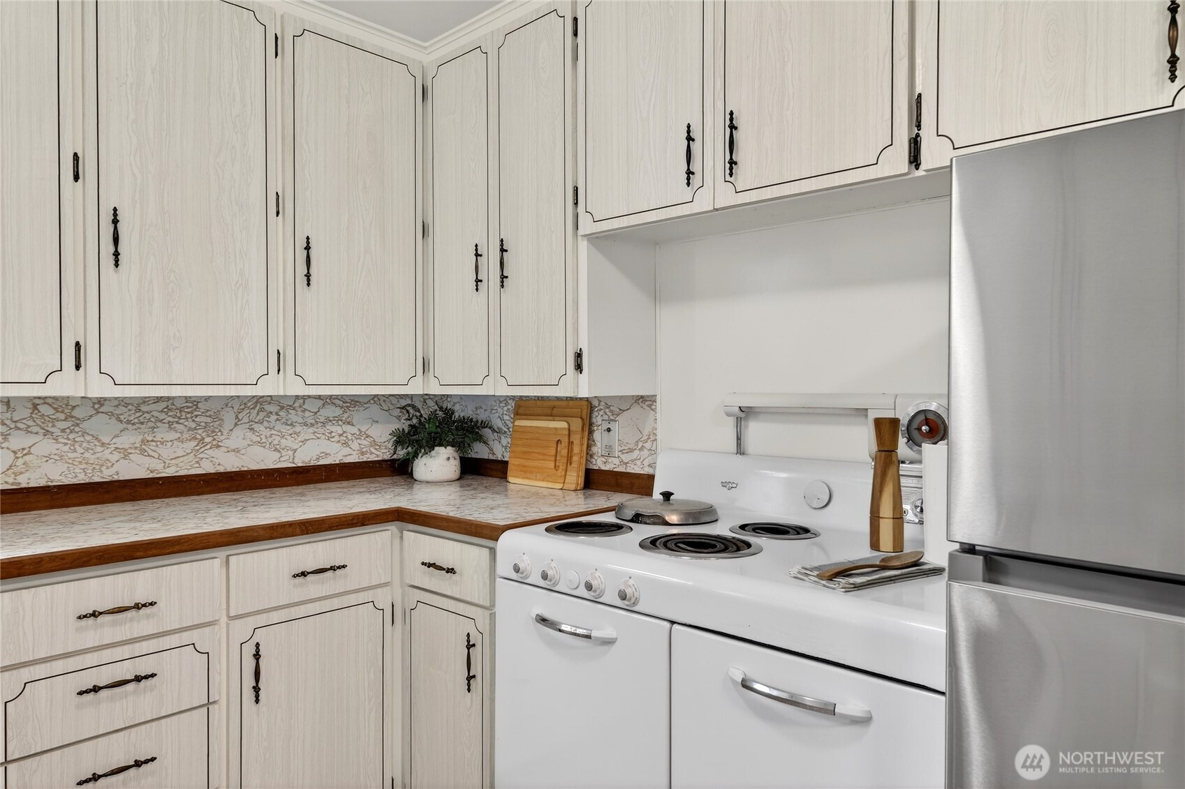 At the crest of the hill just east of Blue Ridge sits the sweetest 1945 bungalow you didn’t know you were waiting for. West-facing front door means golden hour light spilling into the living room, where a cozy gas fireplace anchors the space and rainy evenings feel extra dialed in. The layout lives easy. Bright living room flows into a kitchen with generous storage and an eating nook overlooking a big, flat, sun-soaked backyard. The lot that invites summer dinners, raised garden beds, a game of croquet… or a savvy look at the future. Large, level, and whispering DADU potential for buyers who like their RE with a little extra upside. Live comfortably today, explore additional value tomorrow. Inside, the home keeps its classic 40’s personality intact while benefiting from thoughtful updates. Upstairs offers two comfortable bedrooms with bungalow warmth. Downstairs, the daylight basement adds laundry, storage, and an attached garage, plus a double-wide carport ready for bikes, boards, tools, or weekend projects. And the setting is just right: a peaceful Crown Hill perch minutes to neighborhood cafes, easy transit options, and spontaneous sunset strolls at Carkeek Park. Vintage charm. Smart systems. A big sunny lot with real possibility. For first-time buyers looking for a foothold or investors thinking a few chapters ahead, this home makes a pretty compelling argument.