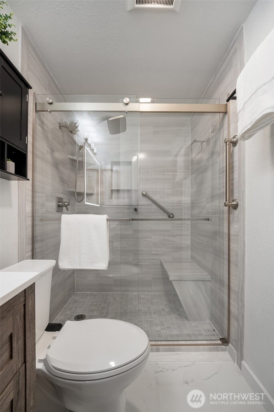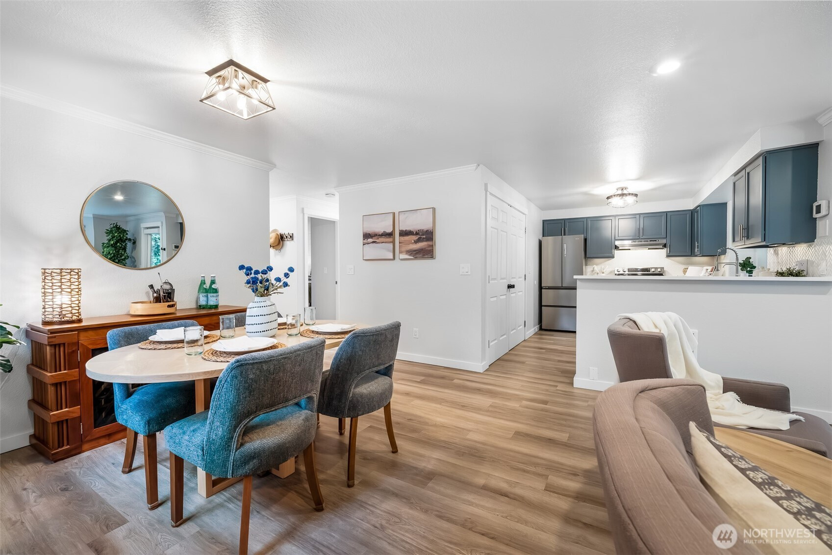 Beautifully remodeled 2-bedroom, 1-bath condo in Kirkland’s sought-after Juanita neighborhood. Thoughtfully updated throughout, this home features luxury LVP flooring and a bright, refined interior designed for effortless living. The fully remodeled kitchen impresses with sleek finishes, brand-new refrigerator, built-in water filtration system, large pantry with custom built-ins, and stylish under-cabinet lighting. Generously sized bedrooms provide comfortable retreats with ample space for guests or a home office. The spa-inspired bath offers a new shower with rain head and large vanity with storage. A striking fireplace with built-in heat creates a warm and welcoming atmosphere. Outside, the private patio invites quiet mornings and evening gatherings, plus additional storage for everyday convenience. Two dedicated parking spaces, including one covered spot. Ideally located just moments from dining, shopping, transit, and scenic Juanita Beach Park. Situated within the highly regarded Lake Washington School District. Well-maintained HOA. Pre-inspection available. A turnkey home offering style, comfort, and a premier Kirkland location.