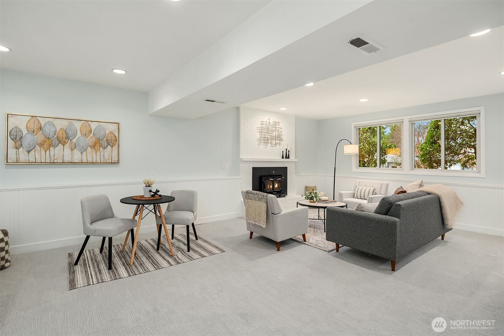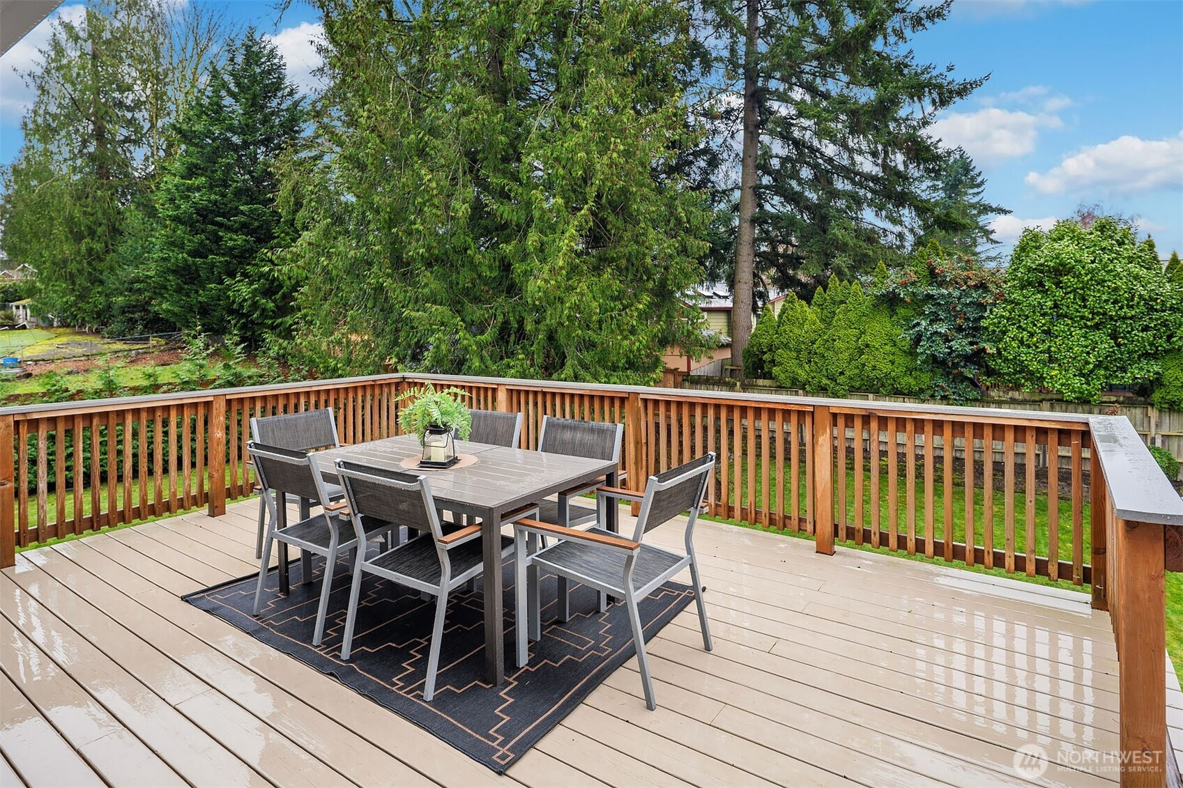 Just a skip from downtown Bothell, this sunny split-level lives large and feels sublime. The arched flagstone fireplace balances warmth against cool, sleek fixtures on the main floor. The kitchen is huge and open to the dining and living areas, providing the ideal space to entertain and connect with loved ones. Bask in the sunshine on the deck overlooking the flat backyard, hot tub, and tall trees. Down the hall, the primary suite has a refreshed bathroom and walk-in closet. The lower level expands the home's footprint with high ceilings, a giant rec room, and a wet bar. A bonus room serves as a WFH office or guest room, with a bathroom nextdoor. With a freshly painted exterior, a new roof, and AC, this is the home you've been waiting for.