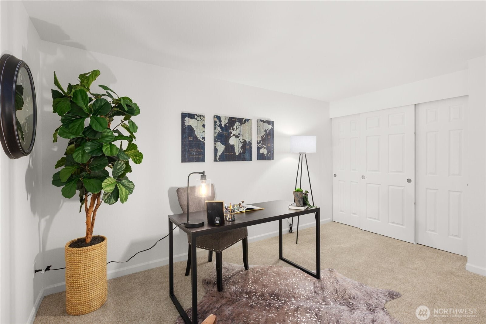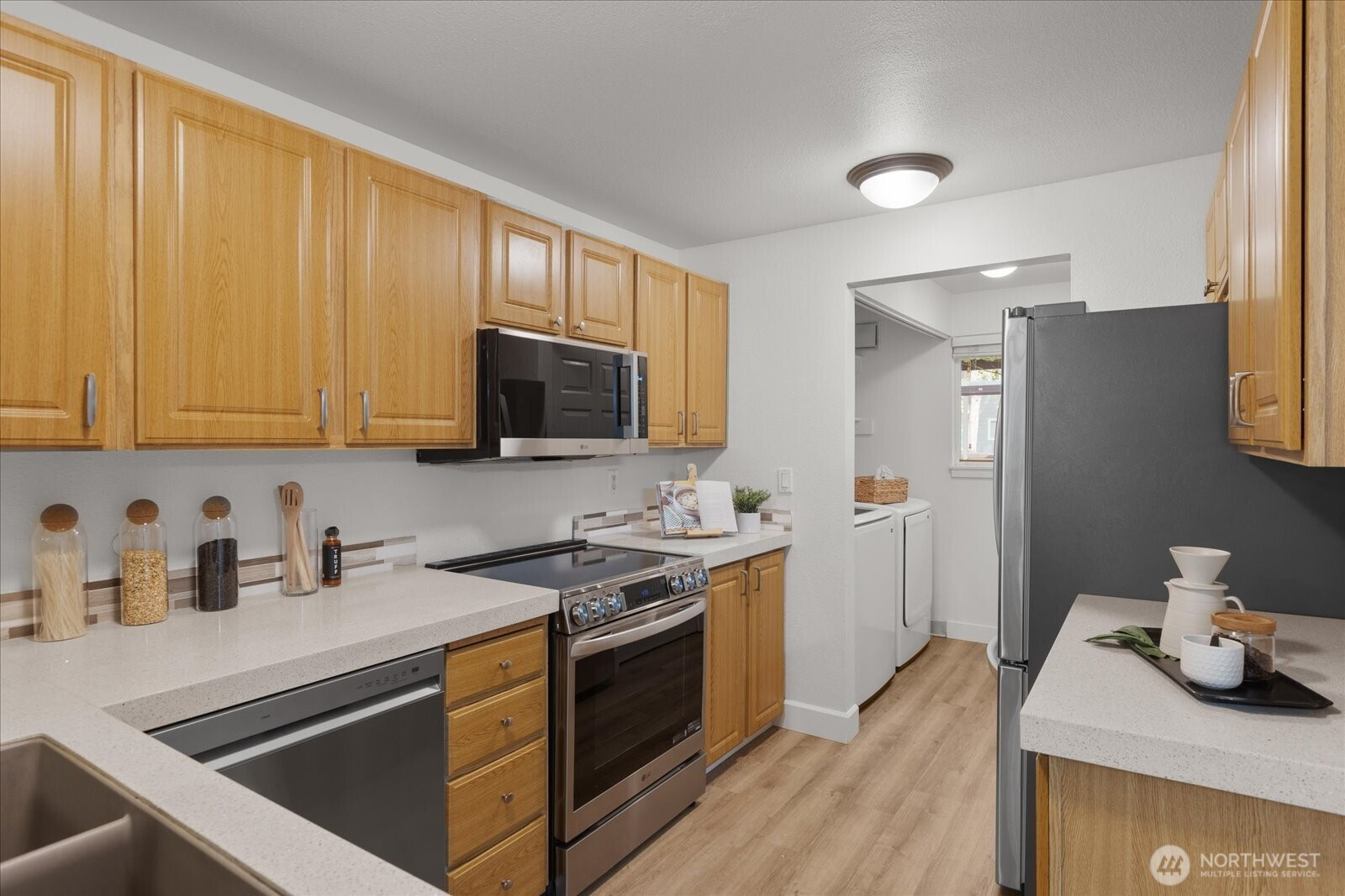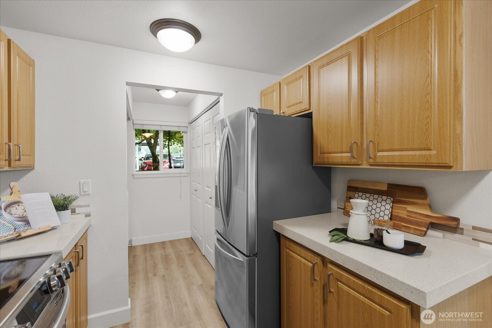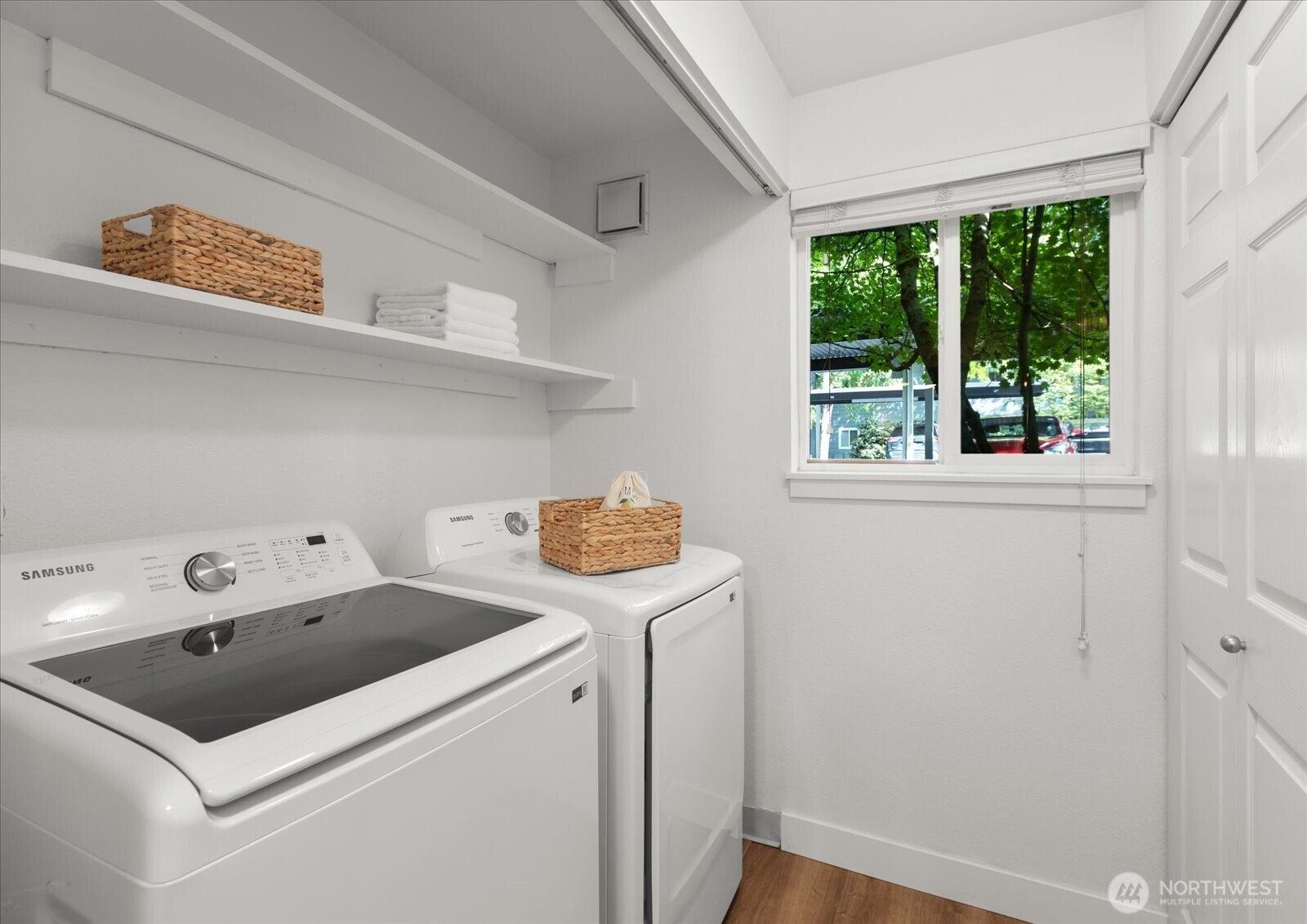 Welcome to your retreat in the heart of the Juanita NH! Nestled at the Kirkland Springs community, this charming home offers a perfect blend of comfort and convenience. With 980 sqft, the home features 2 spacious bdrms & 2 baths. Inside, you'll find an open-concept living area w/ new SS appliances & in-unit washer + dryer. Relax on the back patio next to the beautiful water feature after a day at work or running errands. NO RENTAL CAP offers flexibility for future investment/income producing opportunities. Totem Lake Village is nearby where you can enjoy shopping, dining, and movies. A seamless commute to Seattle/Redmond/Woodinville/Bothell. Modern living meets effortless convenience, this home is a true gem! Make it your own. Tour Today!