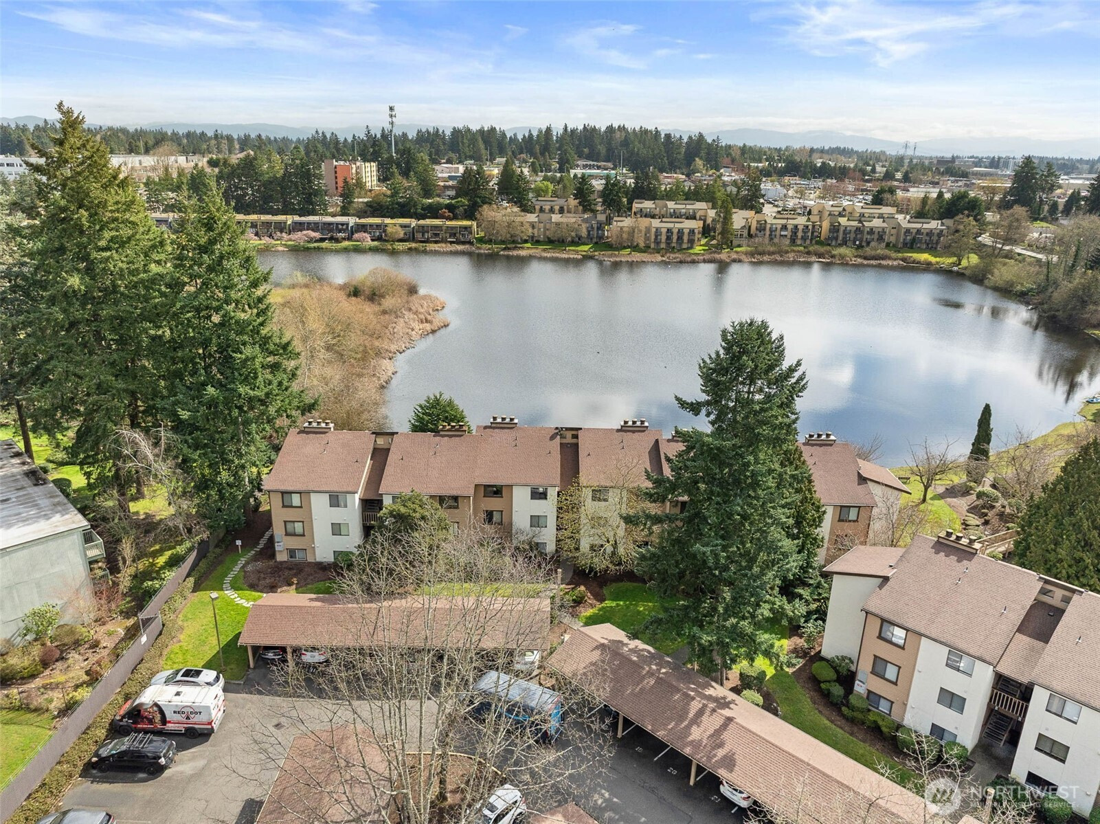 Lakeside Village retreat in the heart of the Federal Way this beautifully upgraded 2-bedroom, 1 3/4-bath condo offers sweeping views of the picturesque lake from your patio, dining room & living room. Living room features wood burning fireplace. Featuring an updated kitchen with quartz counters, newer appliances, newer flooring, newer cabinets, updated bathrooms with tile finishes. Close to new light rail station, schools, restaurants, all conveniences, public transportation & freeways for an easy commute in any direction. Community features outdoor community pool, an athletic court, lots of parking options including a covered carport. FHA & VA Approved Condo!