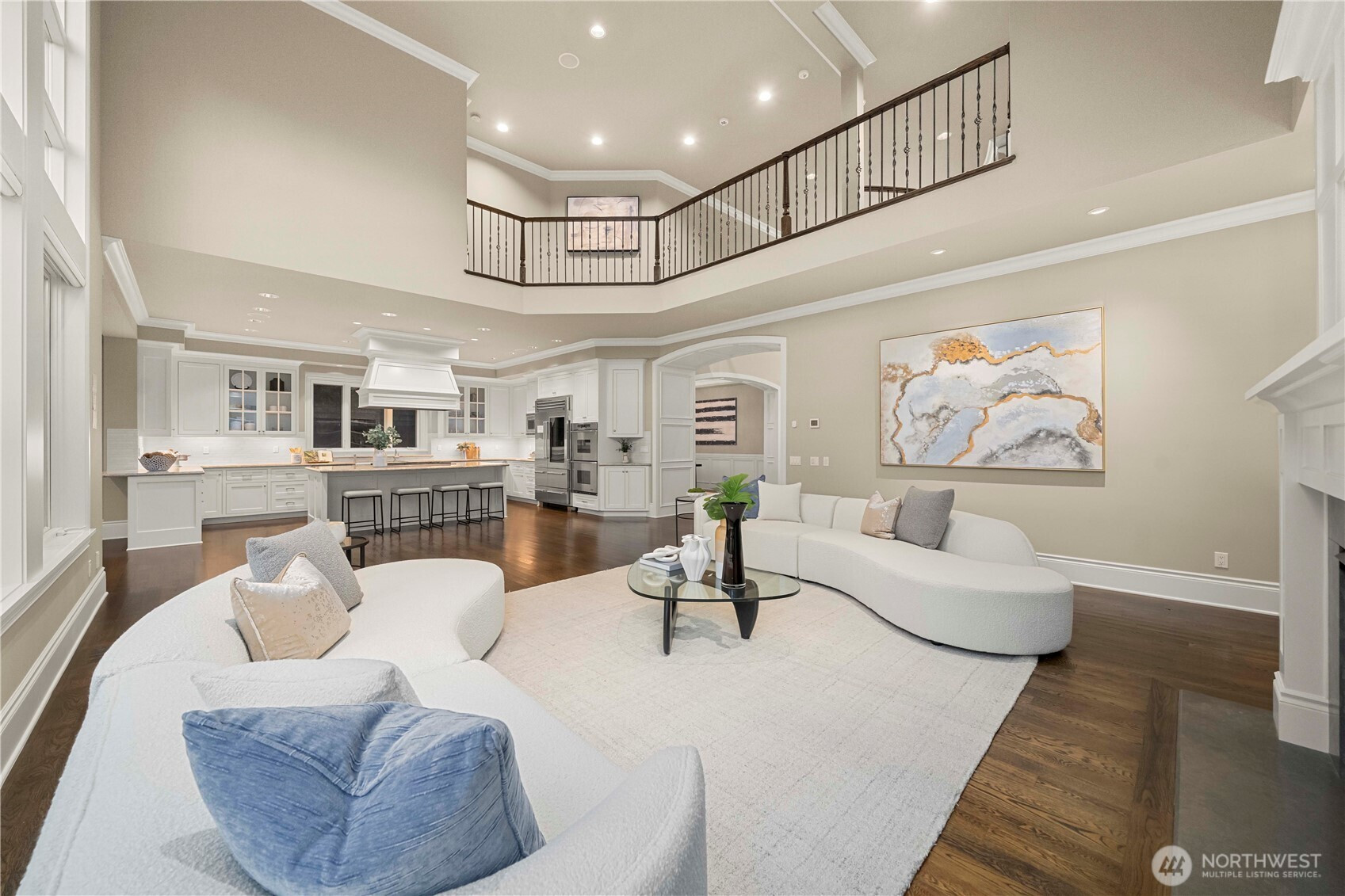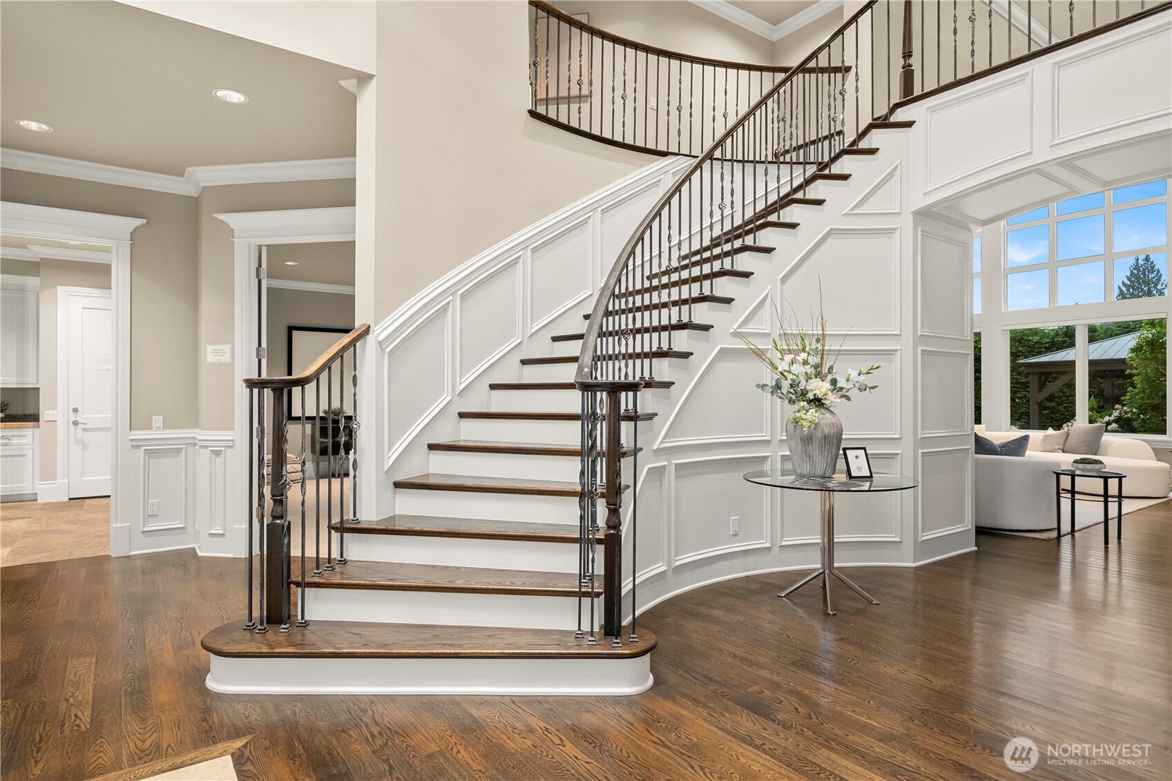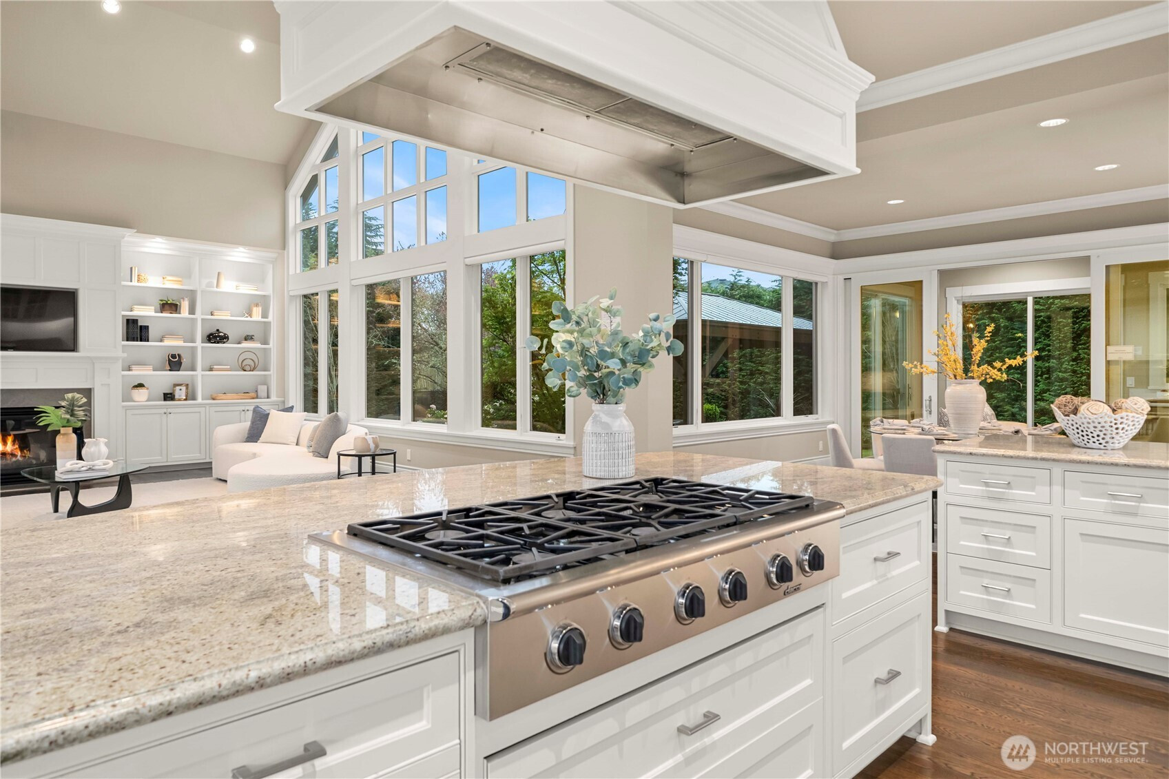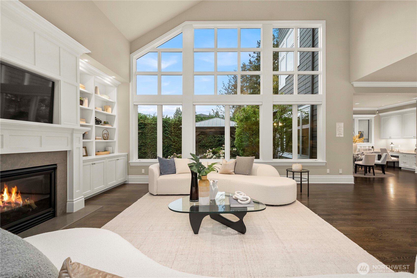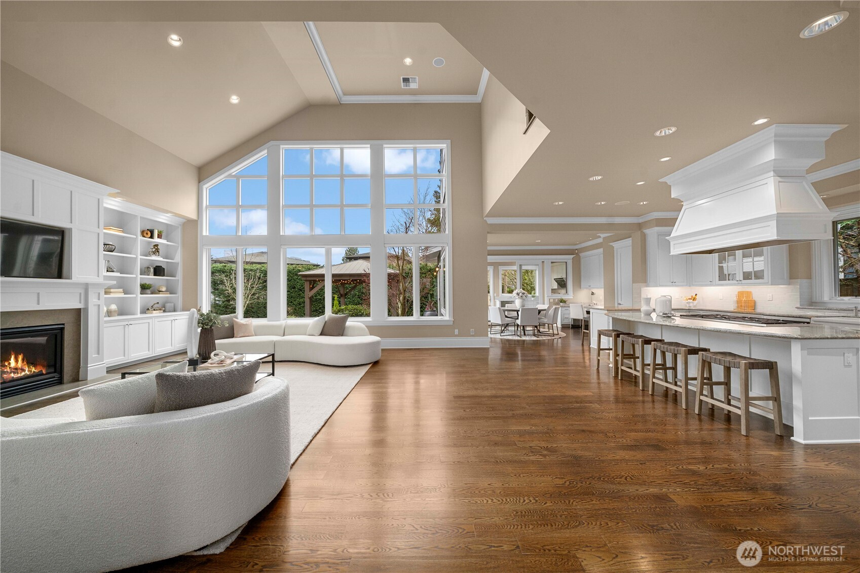 Perfectly positioned just moments from Downtown Bellevue, this exceptional Adam Leland custom estate offers a rare blend of privacy, scale, flat, beautifully landscaped lot. A grand, light-filled foyer creates an unforgettable first impression, featuring soaring ceilings, a sweeping curved staircase, exquisite millwork, & rich hardwood floors that set the tone for timeless elegance. The home opens to a breathtaking two-story great room, where a dramatic wall of floor-to-ceiling windows floods the space with natural light & frames serene garden views. A statement fireplace with custom built-ins anchors the room, while the open-concept design seamlessly connects living, dining, kitchen & kitchenette spaces-ideal for both everyday living & entertaining. The chef’s kitchen is appointed with Sub-Zero appliances, dual ovens, Miele dishwashers, & an expansive island, complemented by custom cabinetry & refined finishes. A sunlit dining area opens effortlessly to the outdoor covered cabana, creating a seamless indoor-outdoor lifestyle. A wood-paneled office & versatile media/flex spaces provide functionality for modern living. Upstairs, the Luxe primary 5-piece suite with fireplace capturing sweeping city views, accompanied by 3 well-appointed guest suites, custom closets, & light-filled spaces throughout. Complete with a 3-car garage with EV charging, top-rated Bellevue schools, minutes to world-class shopping, dining, & parks, a rare opportunity to own refined Bellevue luxury.