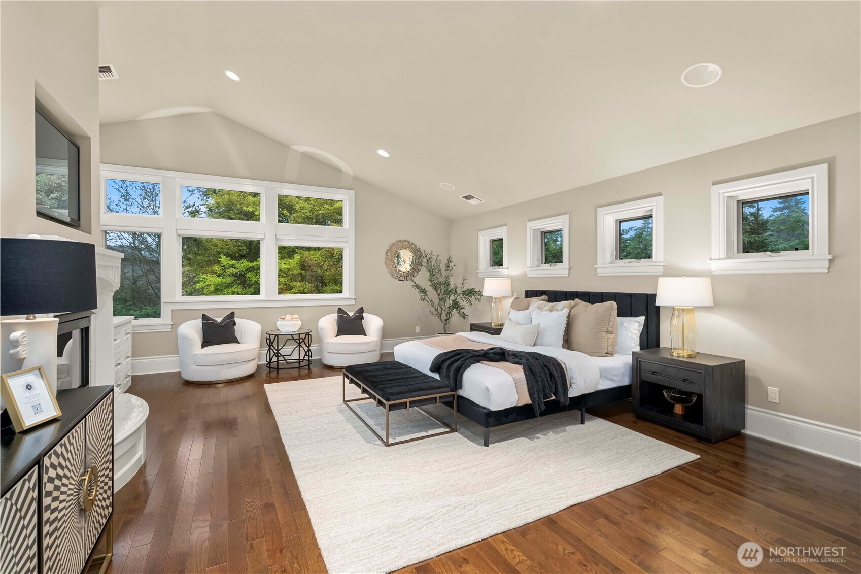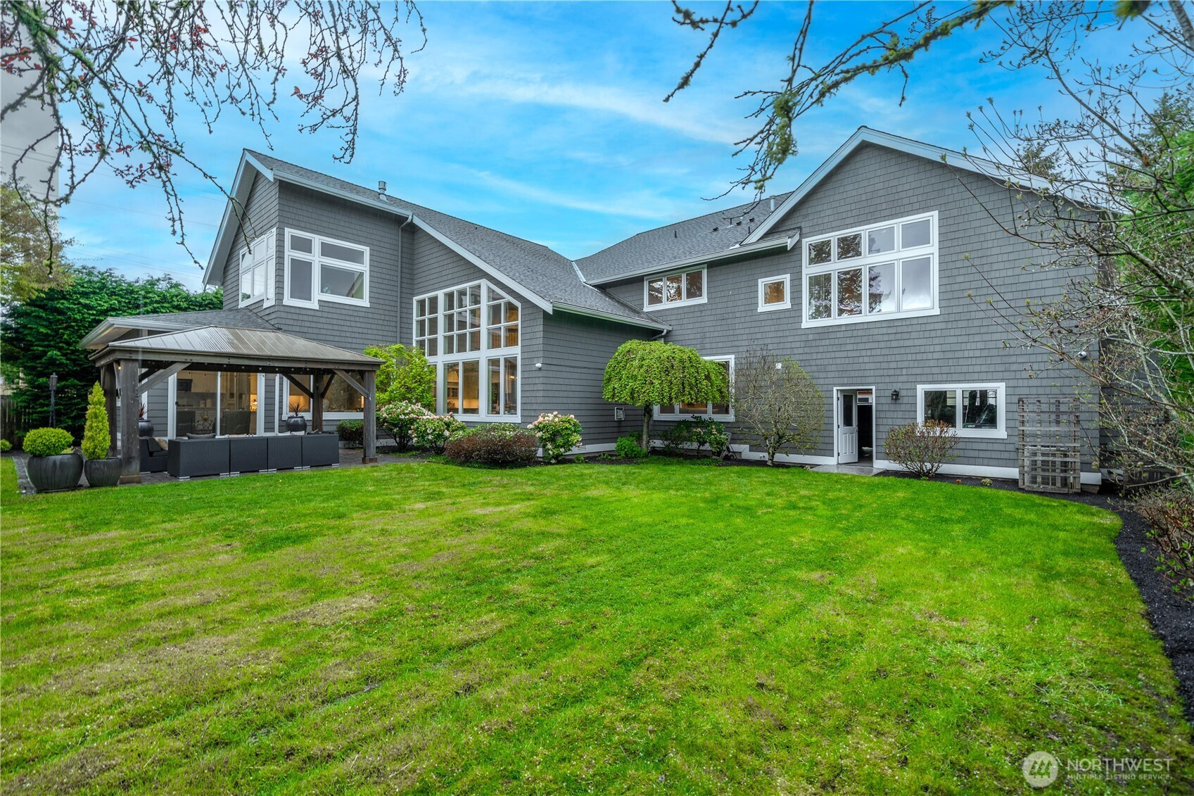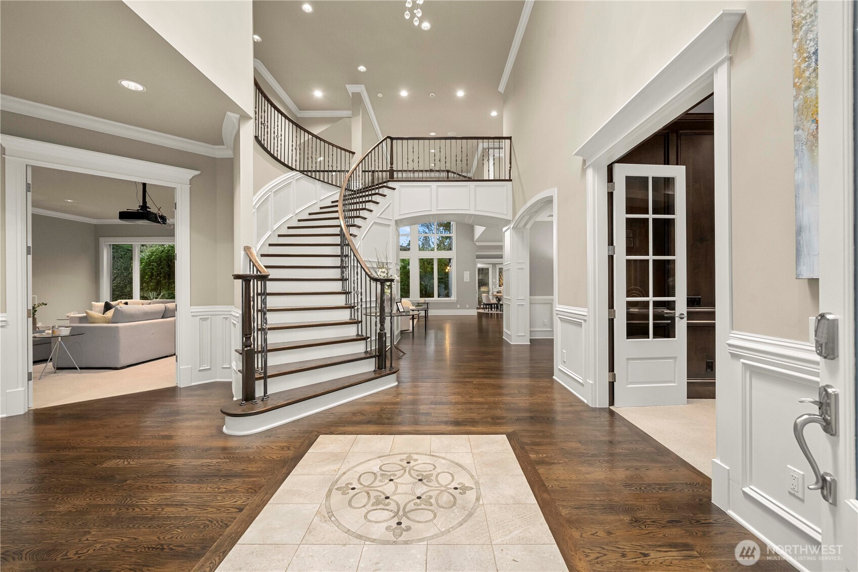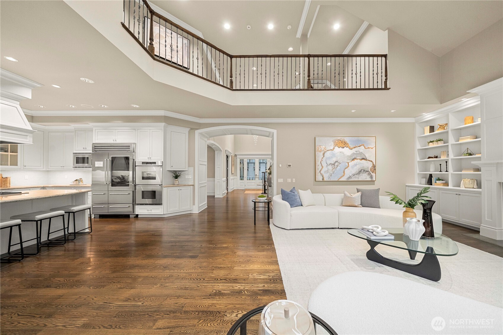 Perfectly positioned just moments from Downtown Bellevue, this exceptional Adam Leland custom estate offers a rare blend of privacy, scale, flat, beautifully landscaped lot. A grand, light-filled foyer creates an unforgettable first impression, featuring soaring ceilings, a sweeping curved staircase, exquisite millwork, & rich hardwood floors that set the tone for timeless elegance. The home opens to a breathtaking two-story great room, where a dramatic wall of floor-to-ceiling windows floods the space with natural light & frames serene garden views. A statement fireplace with custom built-ins anchors the room, while the open-concept design seamlessly connects living, dining, kitchen & kitchenette spaces-ideal for both everyday living & entertaining. The chef’s kitchen is appointed with Sub-Zero appliances, dual ovens, Miele dishwashers, & an expansive island, complemented by custom cabinetry & refined finishes. A sunlit dining area opens effortlessly to the outdoor covered cabana, creating a seamless indoor-outdoor lifestyle. A wood-paneled office & versatile media/flex spaces provide functionality for modern living. Upstairs, the Luxe primary 5-piece suite with fireplace capturing sweeping city views, accompanied by 3 well-appointed guest suites, custom closets, & light-filled spaces throughout. Complete with a 3-car garage with EV charging, top-rated Bellevue schools, minutes to world-class shopping, dining, & parks, a rare opportunity to own refined Bellevue luxury.