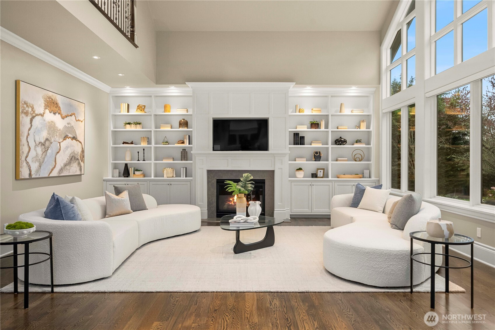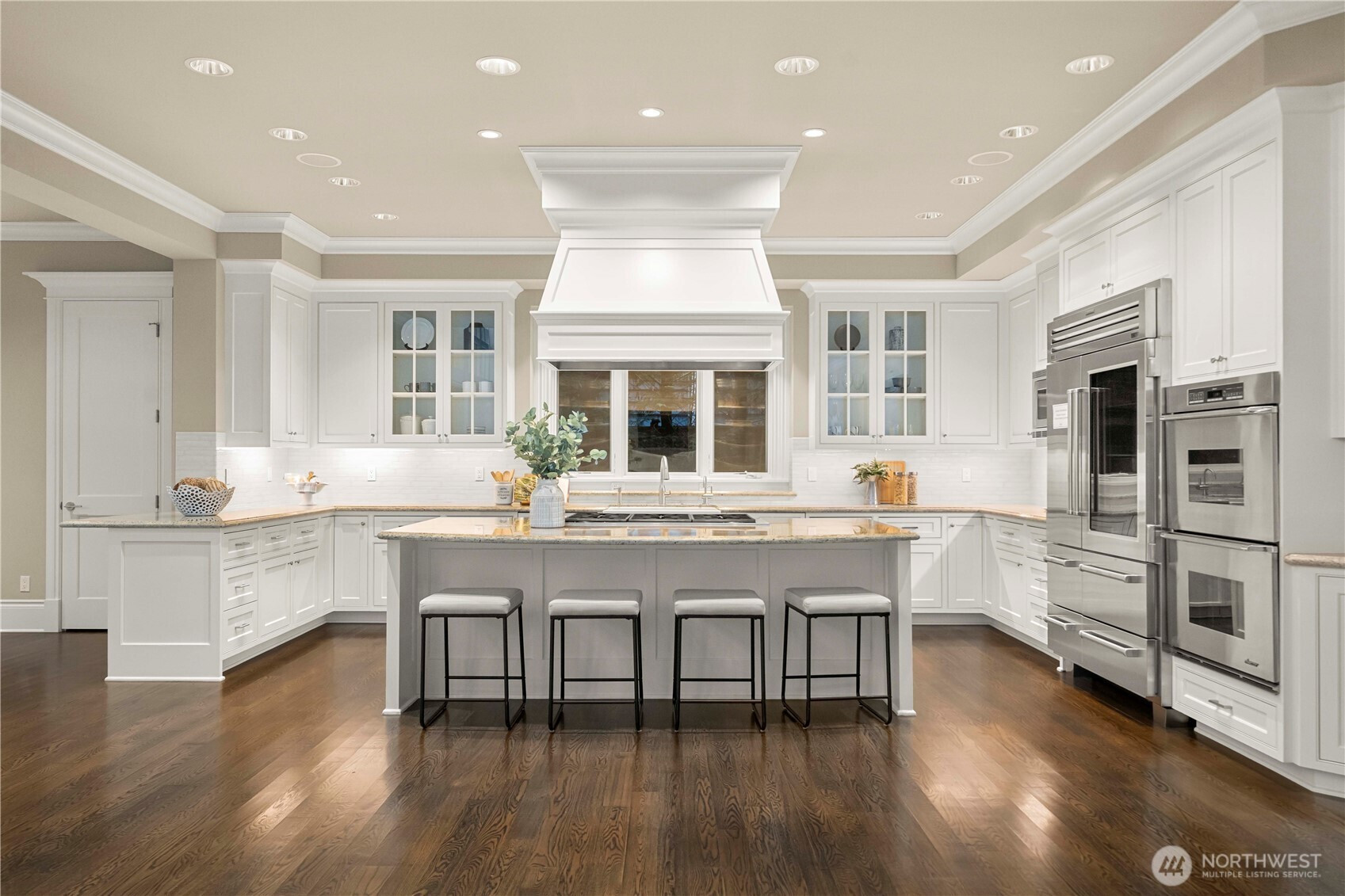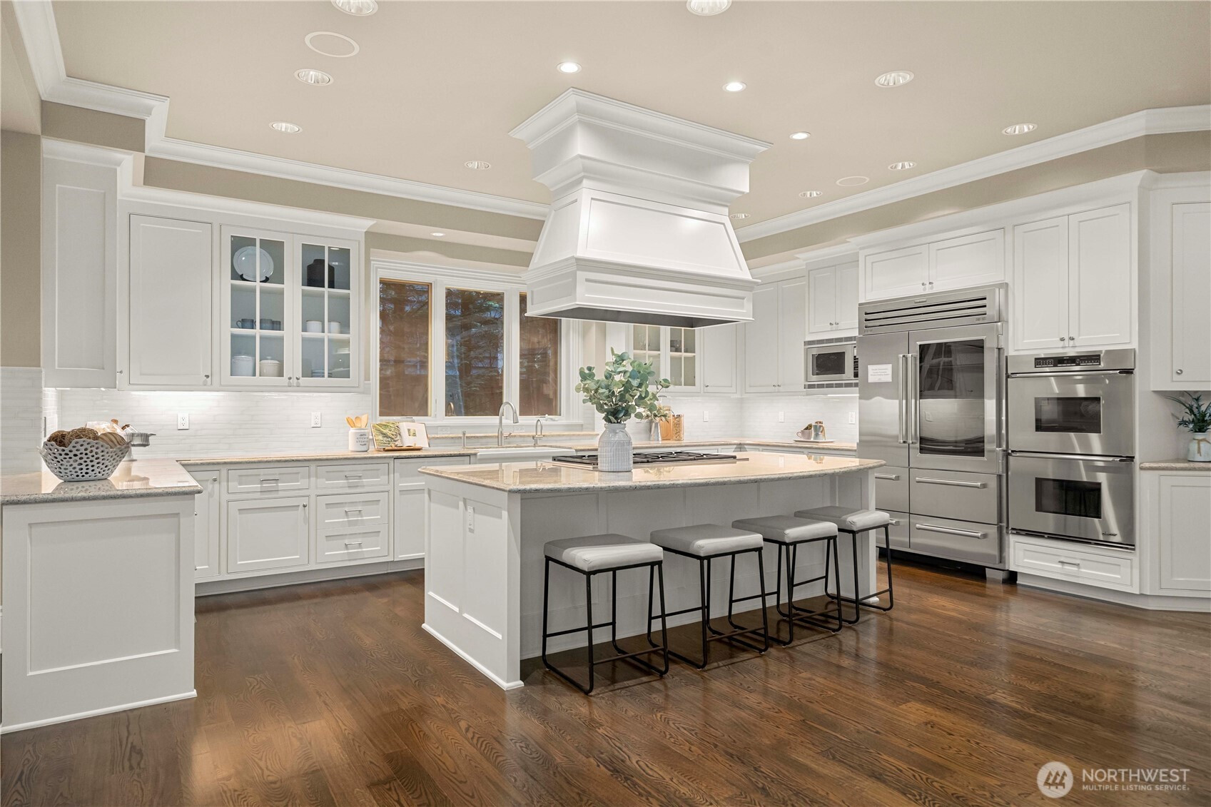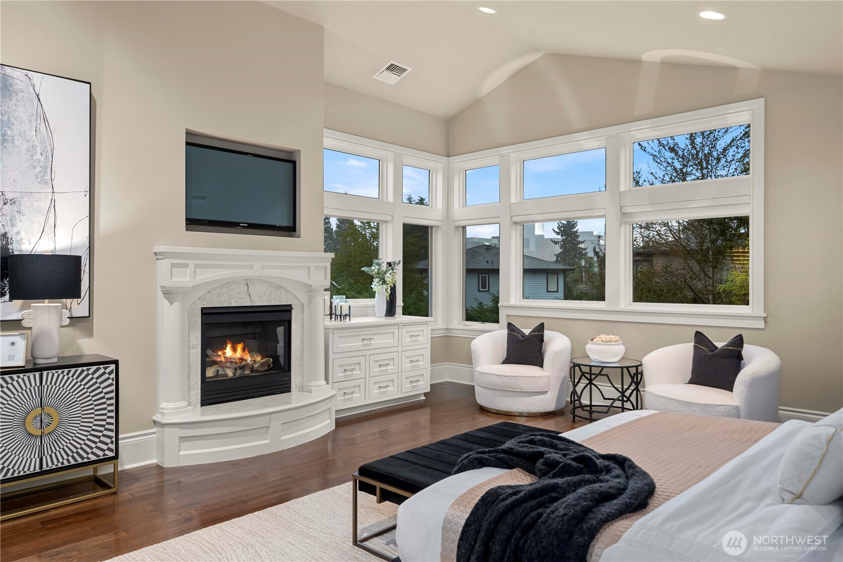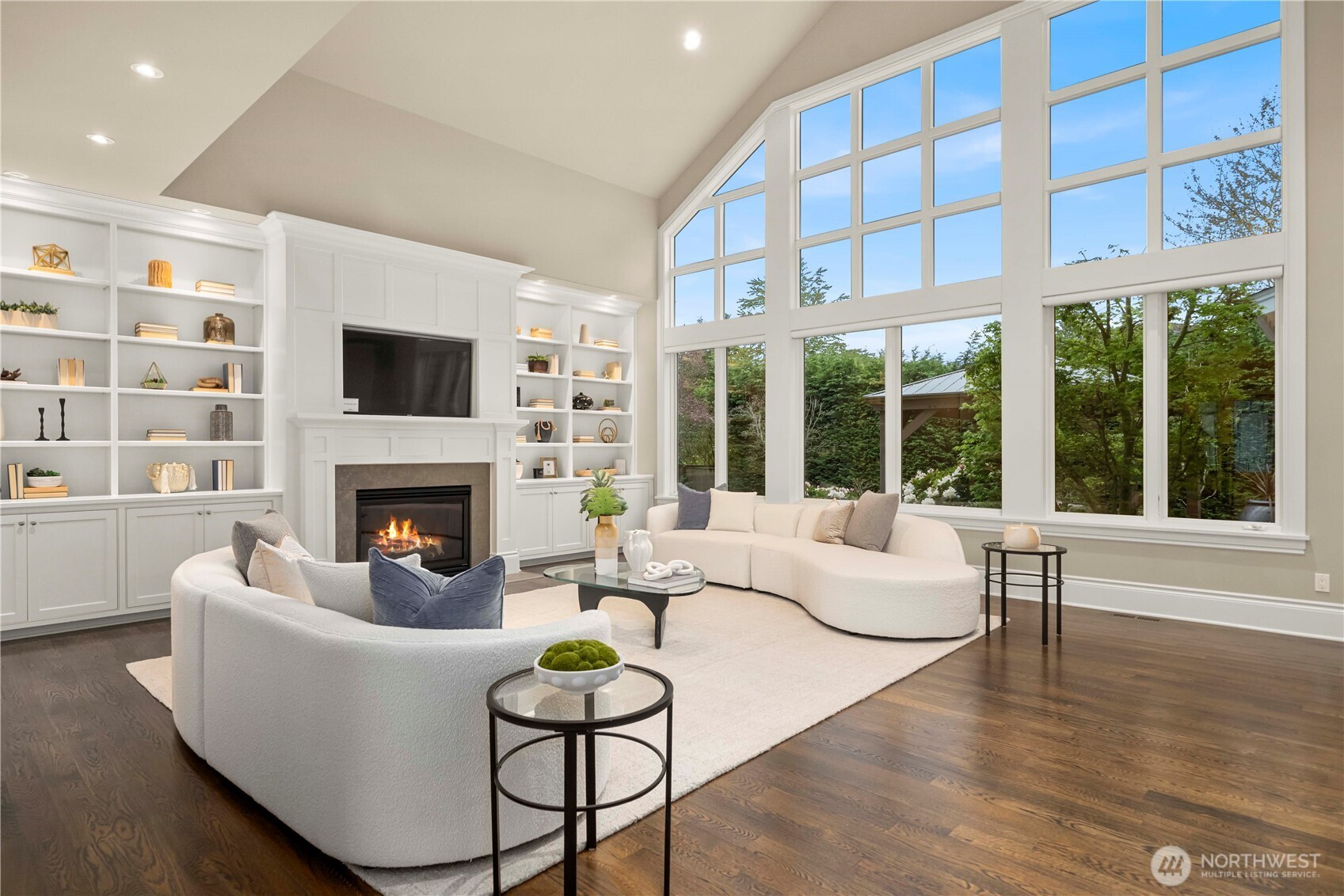 Perfectly positioned just moments from Downtown Bellevue, this exceptional Adam Leland custom estate offers a rare blend of privacy, scale, flat, beautifully landscaped lot. A grand, light-filled foyer creates an unforgettable first impression, featuring soaring ceilings, a sweeping curved staircase, exquisite millwork, & rich hardwood floors that set the tone for timeless elegance. The home opens to a breathtaking two-story great room, where a dramatic wall of floor-to-ceiling windows floods the space with natural light & frames serene garden views. A statement fireplace with custom built-ins anchors the room, while the open-concept design seamlessly connects living, dining, kitchen & kitchenette spaces-ideal for both everyday living & entertaining. The chef’s kitchen is appointed with Sub-Zero appliances, dual ovens, Miele dishwashers, & an expansive island, complemented by custom cabinetry & refined finishes. A sunlit dining area opens effortlessly to the outdoor covered cabana, creating a seamless indoor-outdoor lifestyle. A wood-paneled office & versatile media/flex spaces provide functionality for modern living. Upstairs, the Luxe primary 5-piece suite with fireplace capturing sweeping city views, accompanied by 3 well-appointed guest suites, custom closets, & light-filled spaces throughout. Complete with a 3-car garage with EV charging, top-rated Bellevue schools, minutes to world-class shopping, dining, & parks, a rare opportunity to own refined Bellevue luxury.