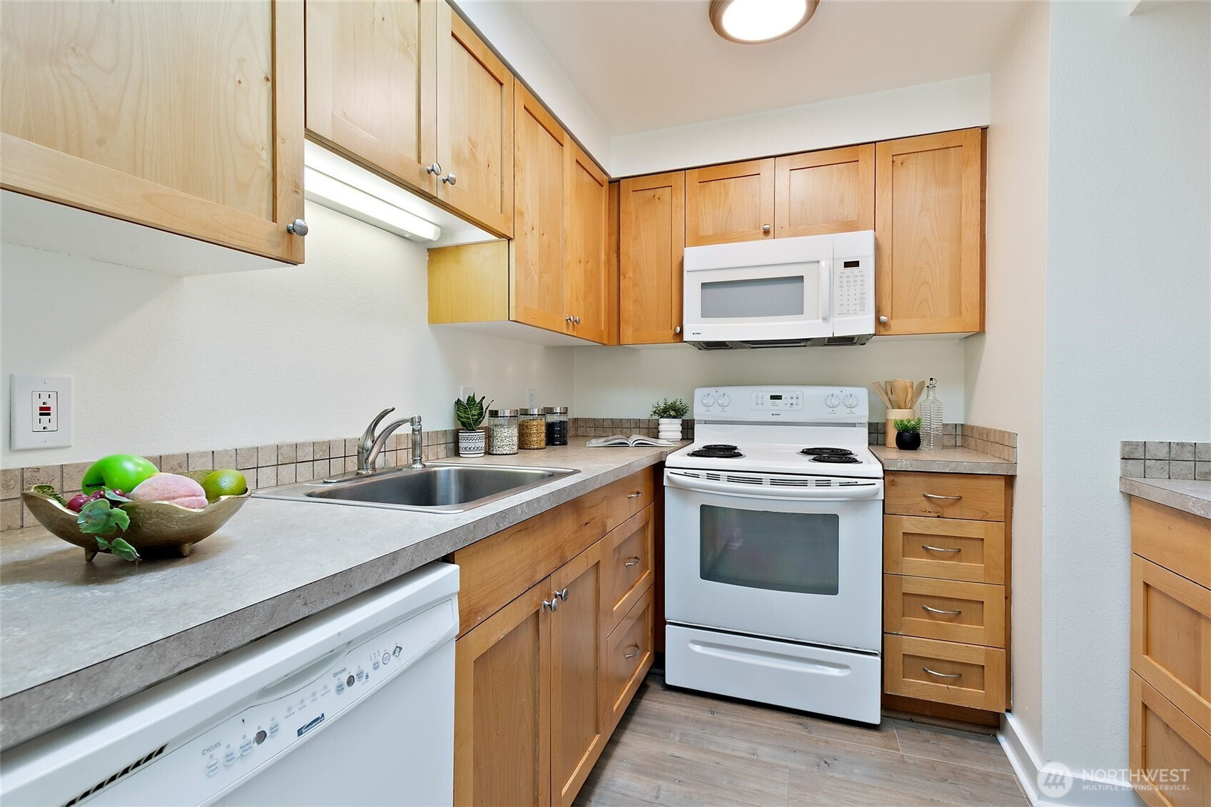 Tucked into a bright corner lot in Kirkland’s desirable Springbrook community, this delightful cottage-style home blends comfort with simplicity. Sun-filled interiors showcase laminate wood floors and a welcoming gas fireplace, seamlessly connecting the living area to the kitchen and dining space—ideal for both daily living and entertaining. Two cozy bedrooms offer restful retreats, while the deck and fully fenced yard provide a serene setting for outdoor relaxation. An attached garage plus additional parking enhances everyday convenience. Springbrook stands out with low HOA dues, as the homes are deeded as single-family residences. Enjoy easy, low-maintenance living just minutes from Juanita Village, nearby beaches and parks, Totem Lake shopping, Juanita High School, Evergreen Hospital, and quick access to I-405.