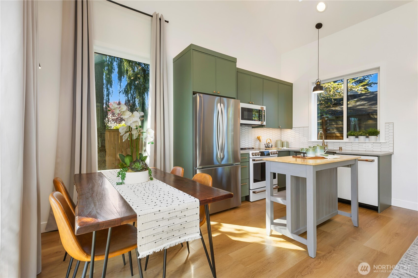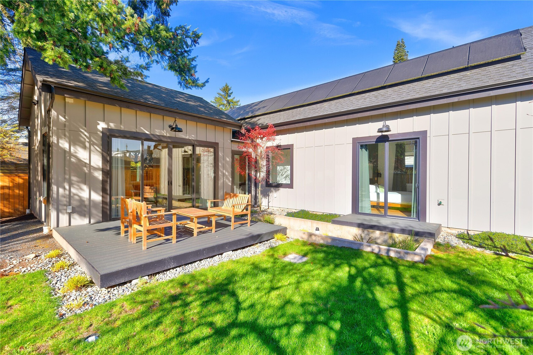 This is not your average DADU—far from it! You will have to see for yourself. Thoughtfully designed by Fivedot Architecture and completed at the end of 2023, this fully custom, single-level home lives like a brand-new standalone residence with elevated design and efficiency throughout. Soaring vaulted ceilings, 8’ doors and walls of windows create an expansive, light-filled interior, while six skylights—including in both bathrooms—bring in natural light at every turn. A striking Pinky’s steel front door opens to a curated entry moment with a framed view of the gorgeous maple tree. The chef’s kitchen is anchored by premium appliances, layered lighting and timeless finishes, flowing seamlessly into the dining and living spaces with an oversized slider to one of the 2 decks. The primary suite is a true retreat with private deck access and a spa-inspired ensuite featuring heated floors, double vanity from Belmont and a stunning oversized shower with custom glass shower enclosure. 2 additional bedrooms offer flexibility with custom lighting and built-ins closet systems. Designed for comfort and efficiency, the home includes mini-split heating & cooling in every room, a high efficiency heat pump water heater and a fully owned solar system for an exceptionally low utility footprint. Outside, enjoy the sun drenched 4,206 SF lot with southern exposure, curated landscaping and ample dedicated parking—all tucked into a peaceful setting just mins from parks and vibrant city amenities.