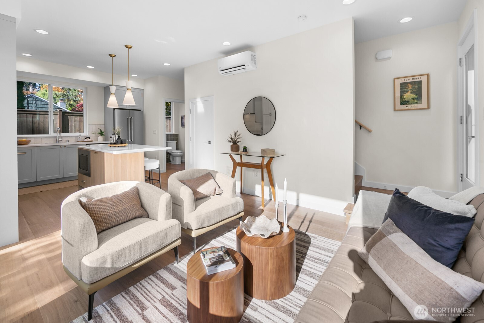 Experience modern living in this stunning new stand-alone home, designed for comfort, style, and function. Step inside to wide-plank engineered hardwoods, high-end finishes, tall ceilings, and windows that flood the space with natural light. The open floor plan features a chef’s kitchen with premium cabinets, appliances, a spacious living area, and a large fenced yard perfect for BBQs, pets, and gatherings. Upstairs are two bedrooms, a den ideal for an office or guest room, and a spa-inspired bath. Built by premier local builder Olsen Anderson with exceptional quality, efficient systems, A/C, designer touches, and an EV-ready garage. Welcome home!