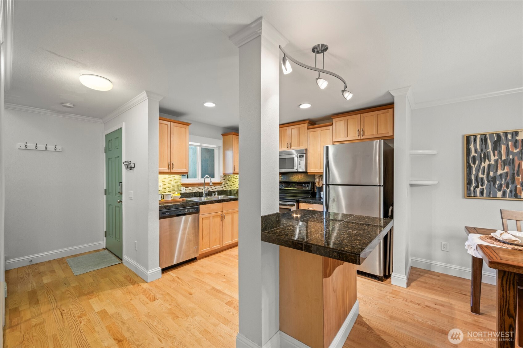 Kirkland 2BR townhome with no neighbors above or below, private fenced yard, reserved parking at your door, low HOA, and easy access to Bellevue, I-405, and parks. Smart start in Kirkland, located in Westwood Village, this two-story home offers the layout today’s buyers want: open main level living, defined dining space, and a private fenced backyard that expands your living area—ideal for pets, entertaining, or a quiet outdoor retreat. The kitchen features granite counters and flows easily into the main living space. Engineered hardwoods downstairs and on stairs make for a clean low maintenance feel. Carpet in bedrooms for comfort. Newer washer/dryer, dedicated parking space (#60) right outside your door, guest parking, and a generous storage unit add everyday convenience. Well-run, professionally managed HOA with reasonable dues that include water, sewer, and garbage. Major capital improvements are already complete—New roof, Milgard windows, and durable stucco siding—with no current or pending assessments. Prime location next to Safeway, on a bus line, and minutes to Downtown Kirkland, Totem Lake Village, Evergreen Hospital, Juanita Beach, parks, and major Eastside employers. Easy access to I-405 makes commuting simple. Move-in ready, this is one of the most accessible entry points into Kirkland homeownership—offering space, privacy, and location without compromise! This one checks all your boxes!