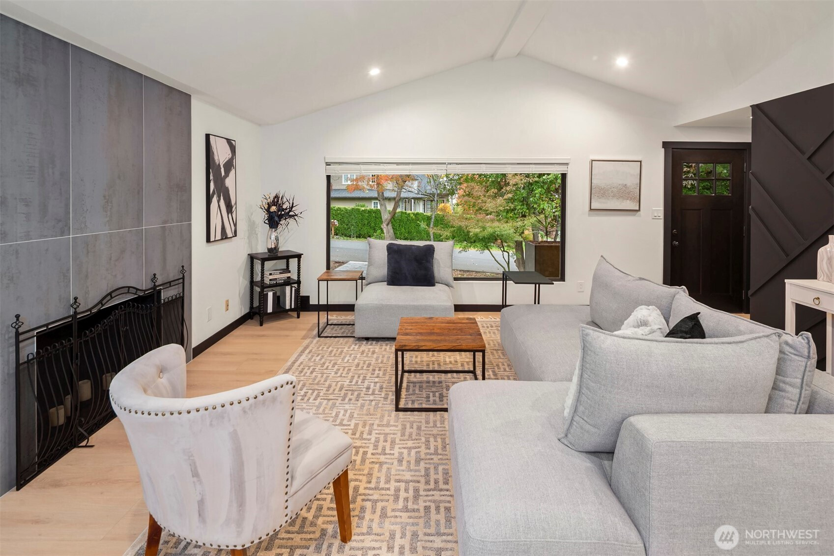 Prime location in West Bellevue, blocks from world-class dining, shopping and top rated schools. This gorgeous rambler is full of natural light with vaulted ceiling, updated open concept kitchen with quartz countertops and all new stainless steel appliances. Beautiful new laminate hardwood flooring throughout the main level, full tiled bathroom with double sink. Access to a beautiful paved patio perfect for entertaining with views of downtown. Sought after Bellevue School district, Clyde Hill Elementary and Chinook Middle School.