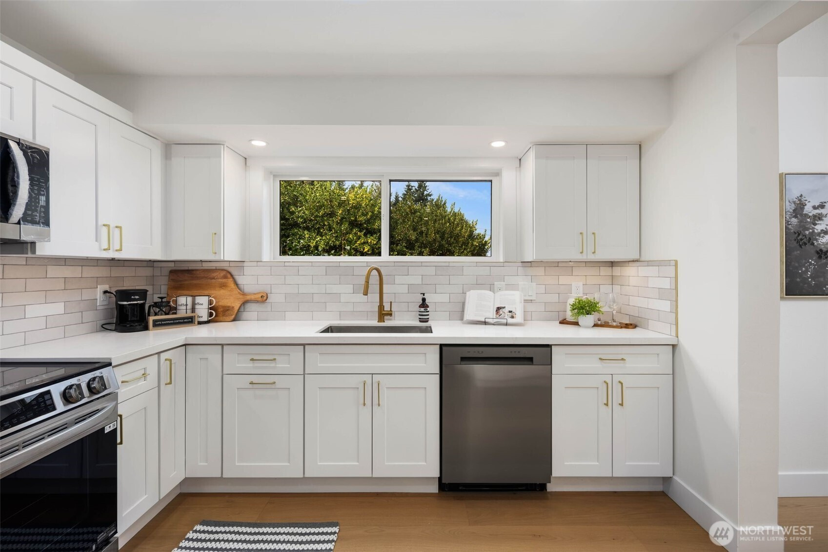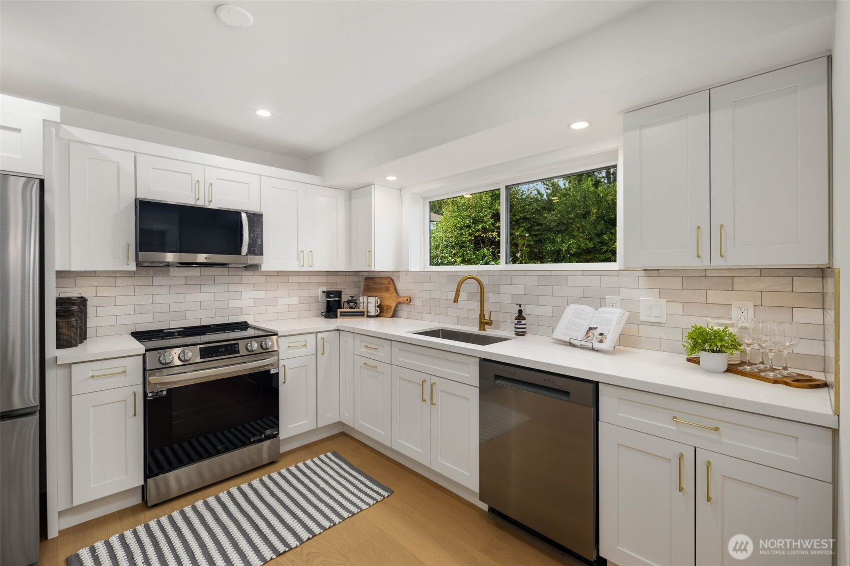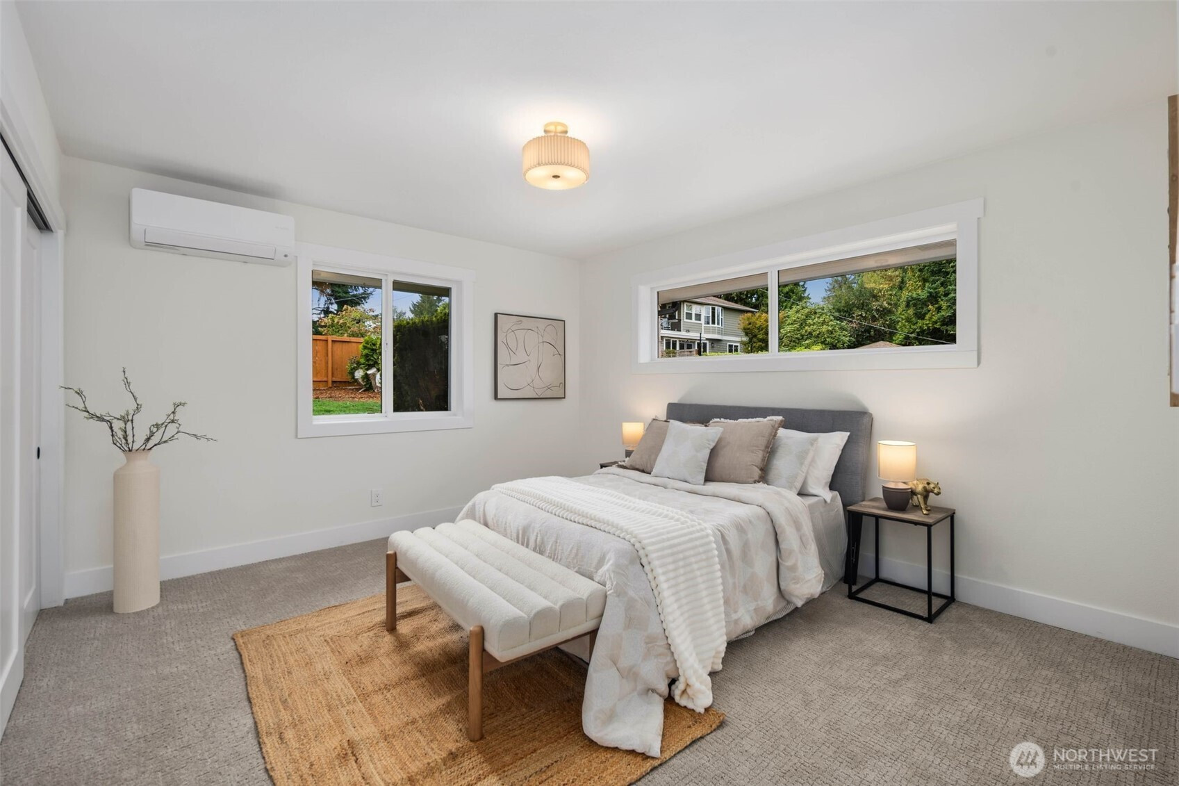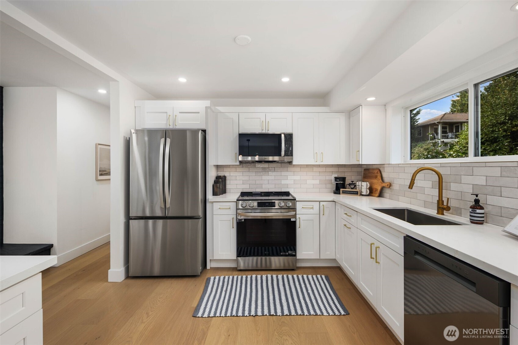 In the heart of Matthews Beach this home offers Lake Washington Views! Just steps to the Burke-Gilman Trail, and minutes from Matthews Beach Park, the University District, Seattle Children’s Hospital, UW, Magnuson Park, shopping, dining, and transit. Enjoy the best of North Seattle living with trails, parks, and the lake at your doorstep. Inside, this reimagined home showcases brand-new appliances, modern lighting, and stunning tile work. Stay comfortable year-round with new mini-split heating and cooling. The open layout highlights sleek finishes, while the fully fenced yard offers privacy and outdoor living. A daylight basement with wet bar provides the perfect space for entertaining.