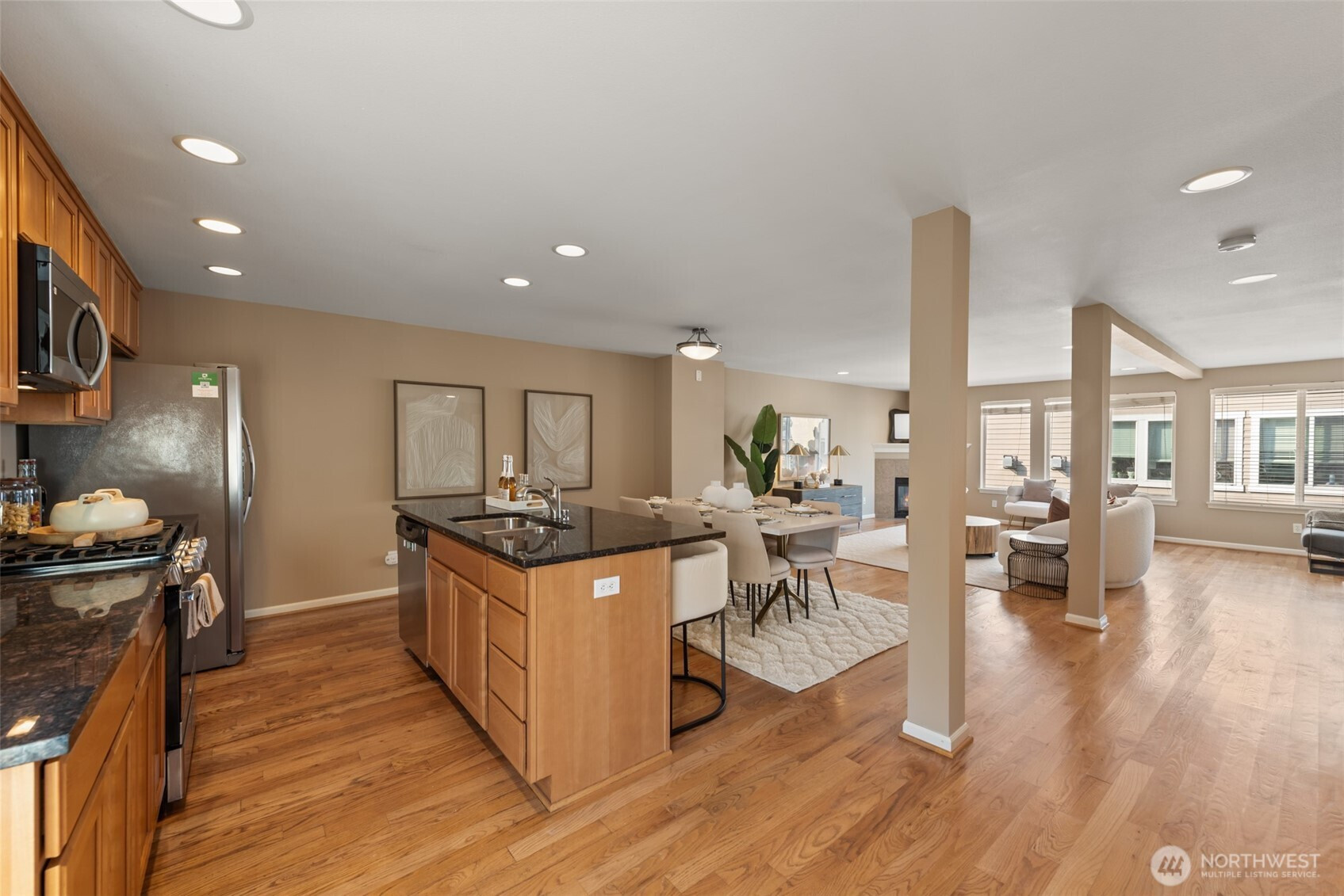 Discover an exceptional Greenwood home with over 2,300 sq ft of versatile living space. Thoughtfully designed with 4 bedrooms plus a den, this residence offers flexibility for today’s lifestyle. The lower level includes a private suite with full bath and separate entrance—ideal for guests or a media room. Light-filled main floor features an open layout with a cozy gas fireplace and dedicated office space. Upstairs, soaring ceilings frame three bedrooms and two baths. Enjoy a fully fenced yard, attached two-car garage, and the convenience of a highly walkable neighborhood—all with no HOA fees.