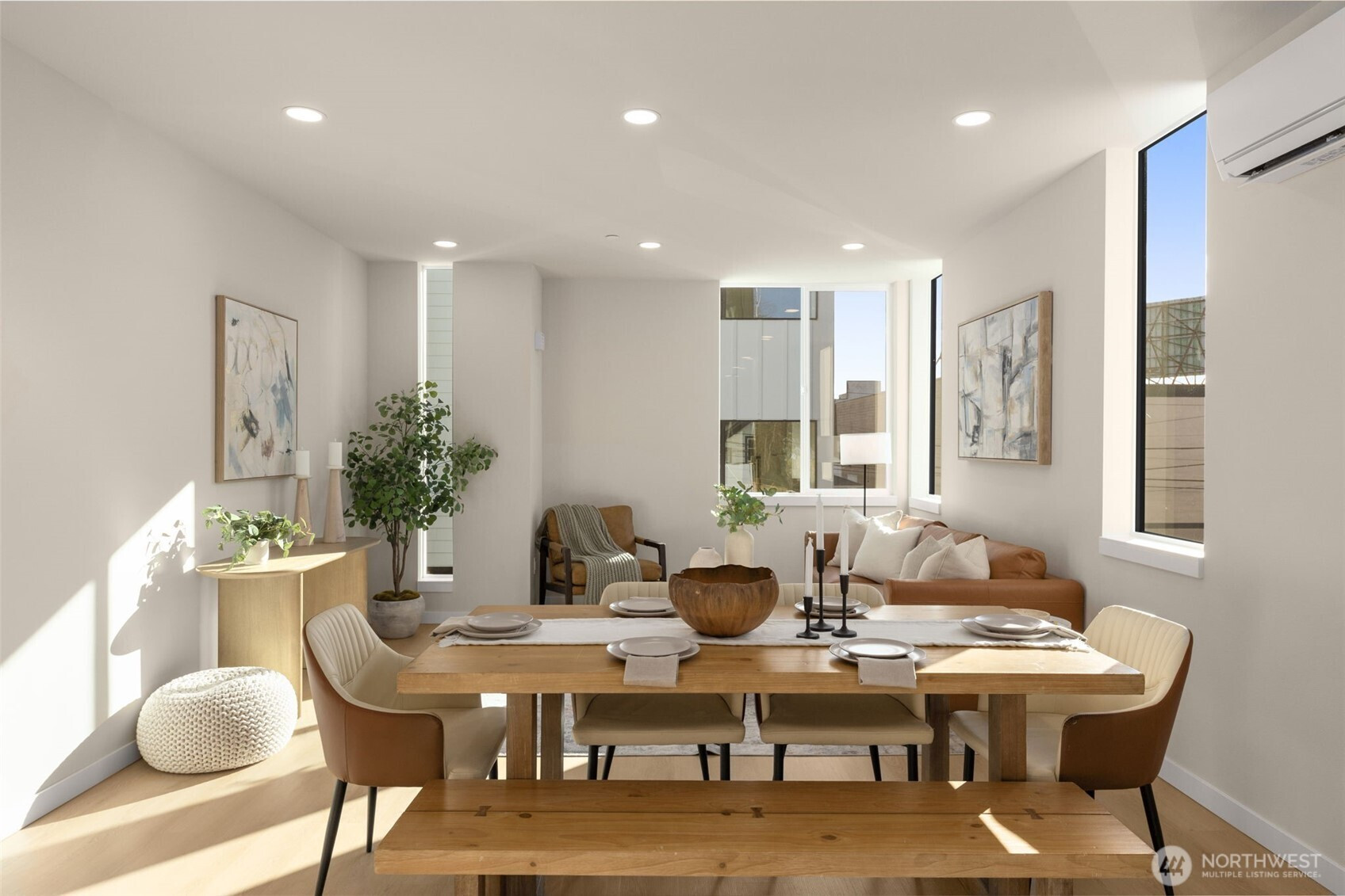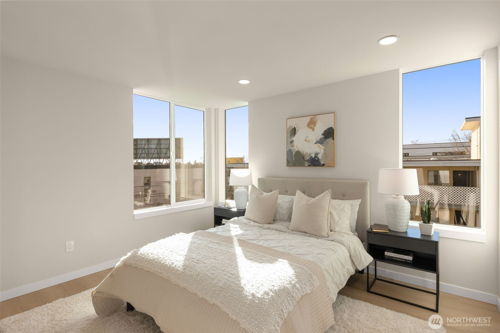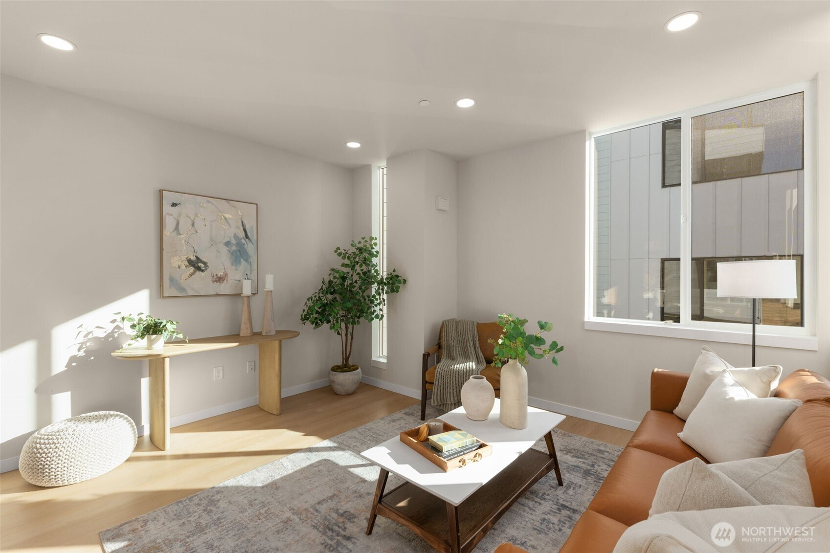 Incredible 4.75% financing for 10 years. Modern living meets thoughtful design in the brand-new Sawyer community by GreenCity, located near Green Lake and in the heart of Roosevelt. The light-filled main level features a gourmet kitchen with stunning quartz, premium appliances, and seamless flow to the living area. A lower-level bedroom with a stylish ¾ bath offers flexible use for guests, work, or a roommate. The upper-level primary suite includes vaulted ceilings and a spa-inspired bath. Enjoy territorial views from your private rooftop deck. EV-ready parking, energy-efficient systems, and close access to cafés, restaurants, transit, and shopping. Note: Interior pictures are of model home.
