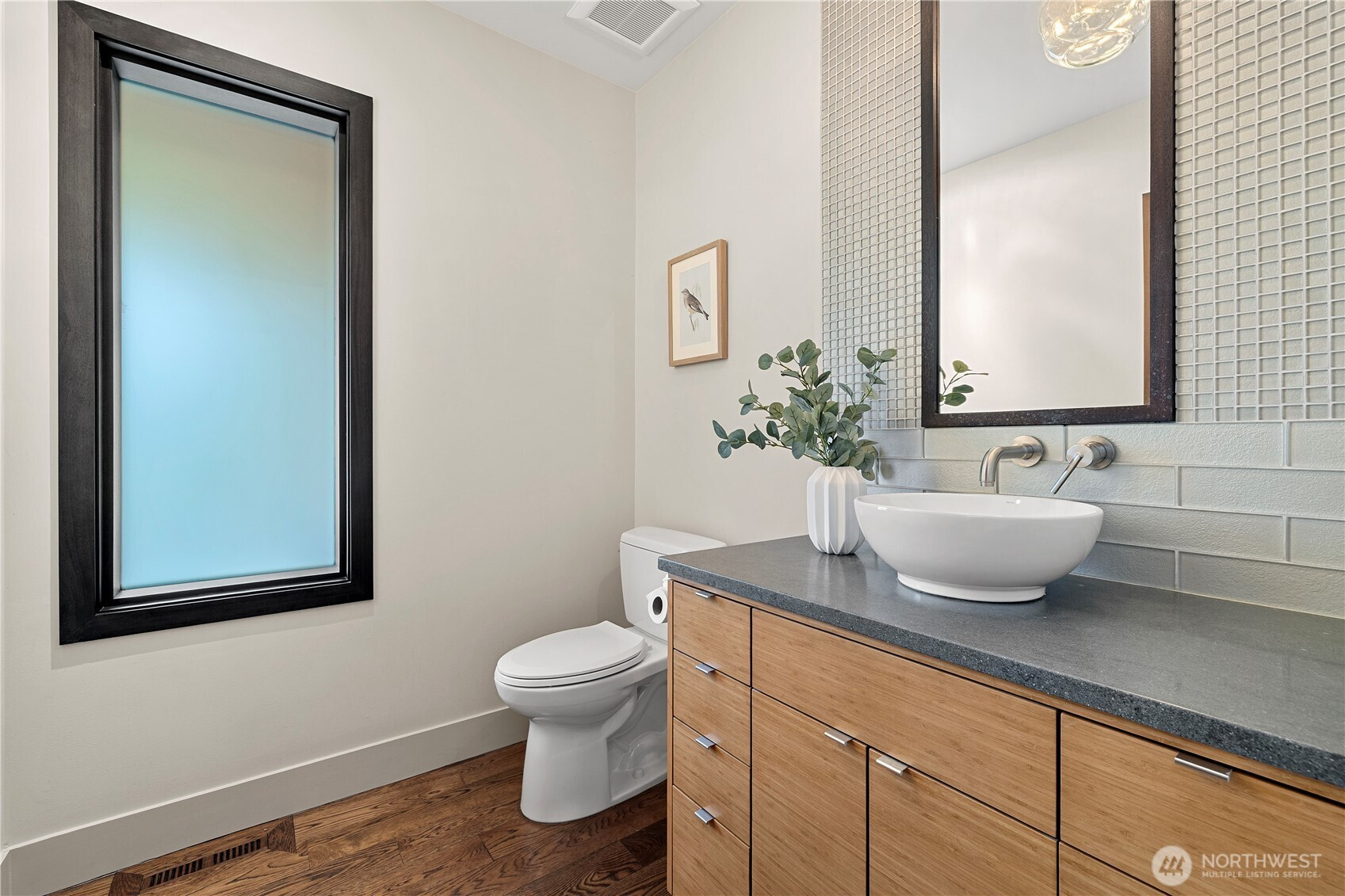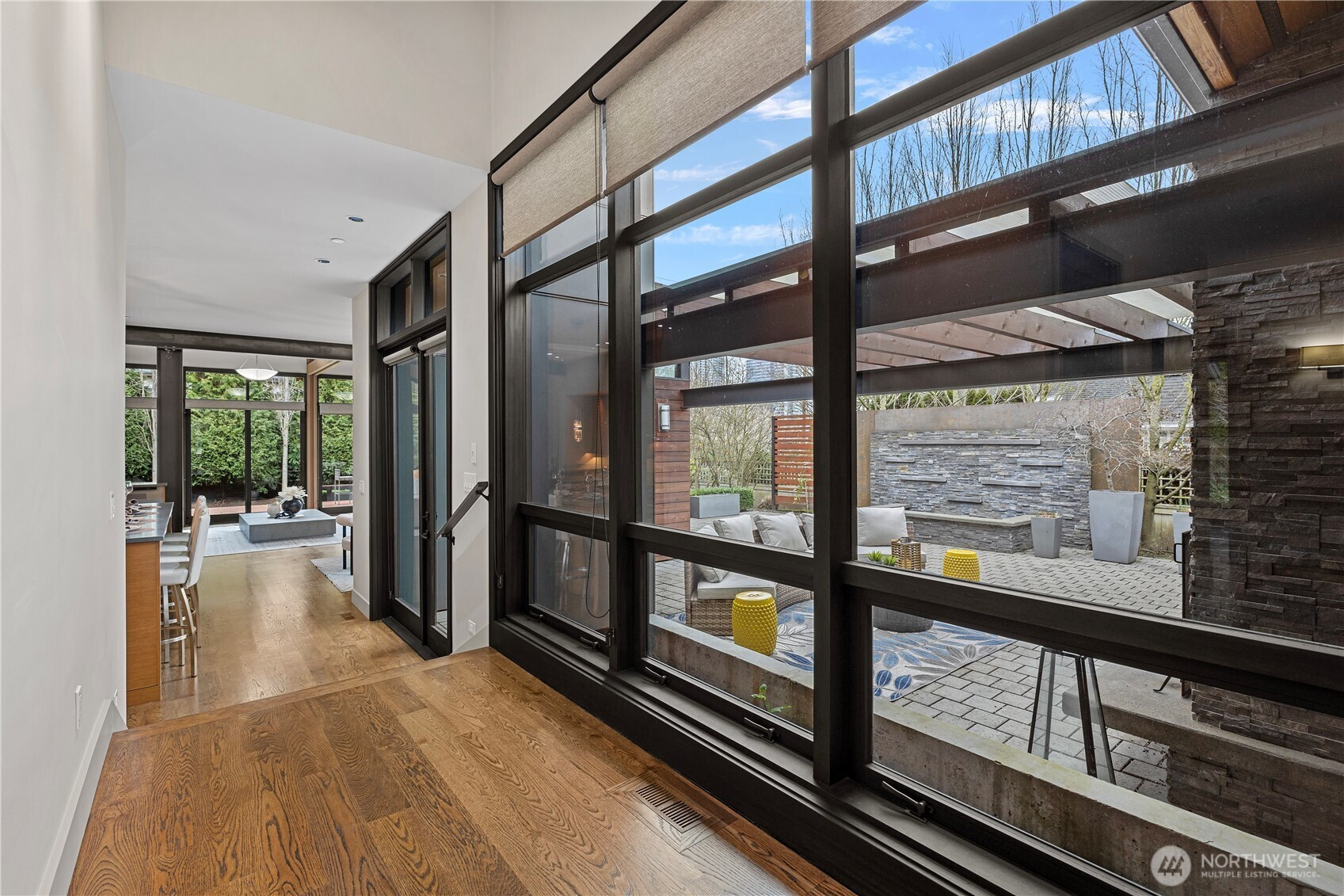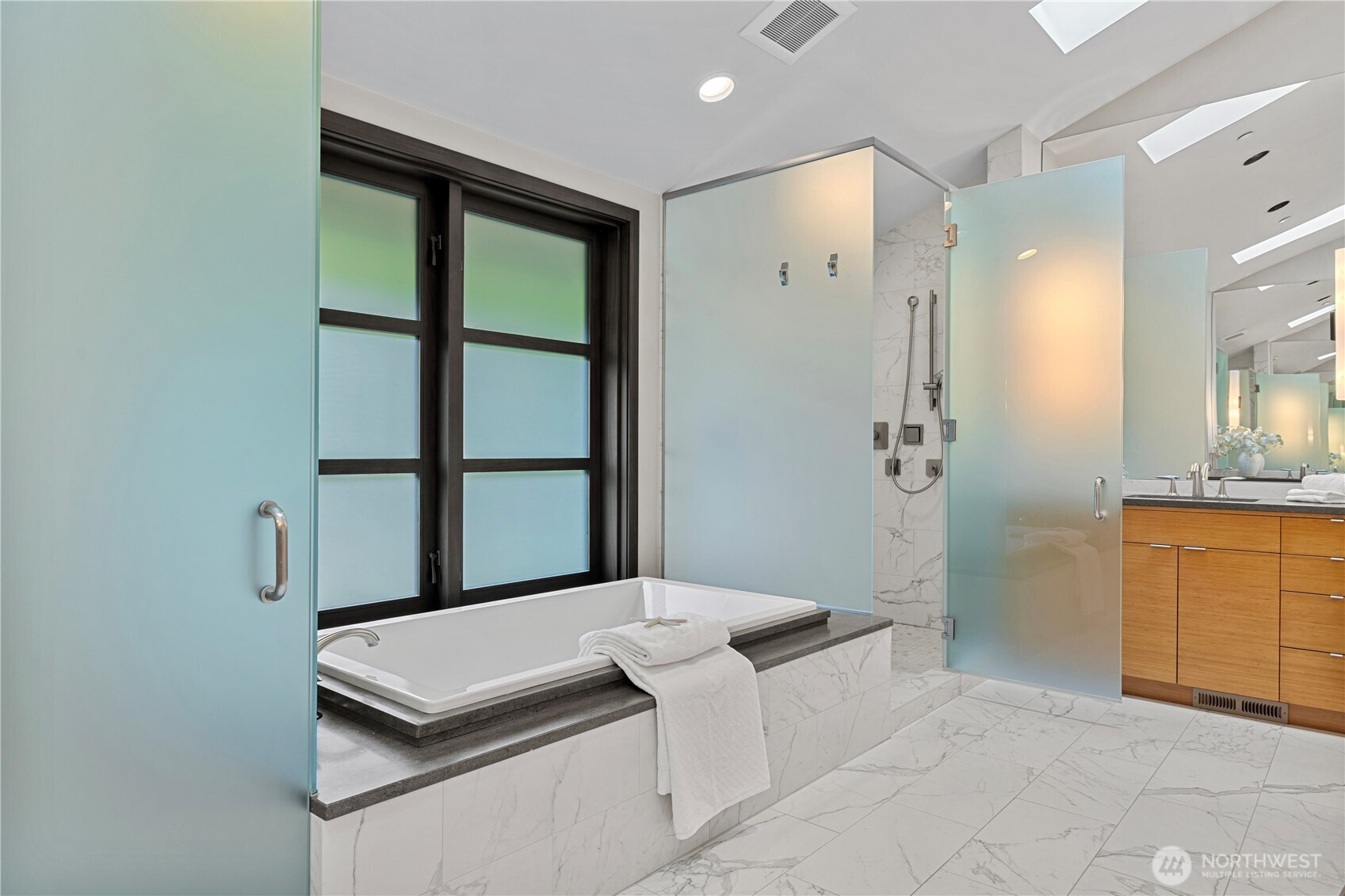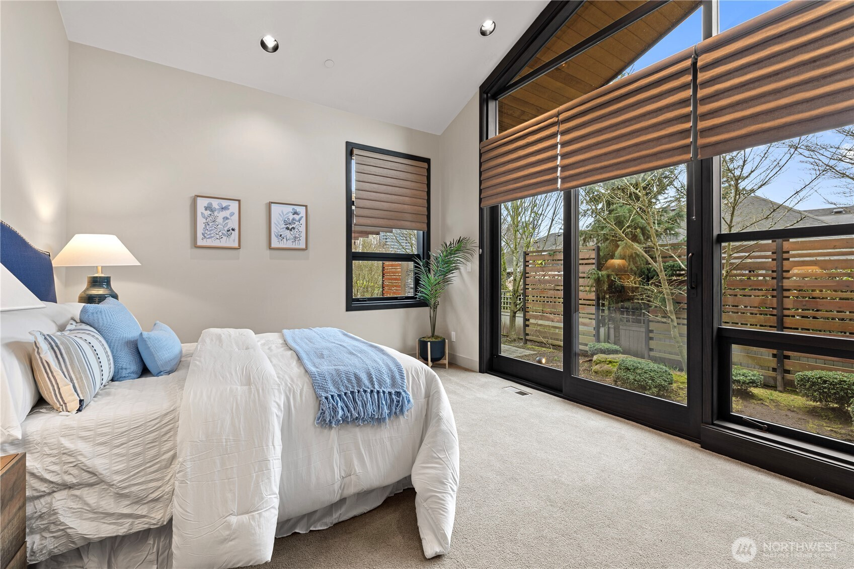 Northwest Modern rambler in the coveted Vuecrest neighborhood, one of West Bellevue’s most desirable communities. Designed by RMC Architects and built by Peter Davis Builders, this architecturally striking home features dramatic vaulted spaces, expansive glass, and a refined palette of timber, steel, and natural materials. Multiple sliding glass walls create seamless indoor–outdoor living, opening to covered outdoor areas, ironwood decks, and beautifully landscaped grounds. Many bedrooms feature large windows or direct access to the surrounding yard, enhancing the home’s connection to light and nature. A flexible attic loft provides additional usable space beyond the main level, not included in the home’s square footage. Extraordinary oversized garage with soaring ceilings offers space for six or more vehicles—an exceptionally rare feature in West Bellevue. Ideally located minutes to downtown Bellevue, parks, shopping, dining, and major tech campuses, and served by the award-winning Bellevue School District.