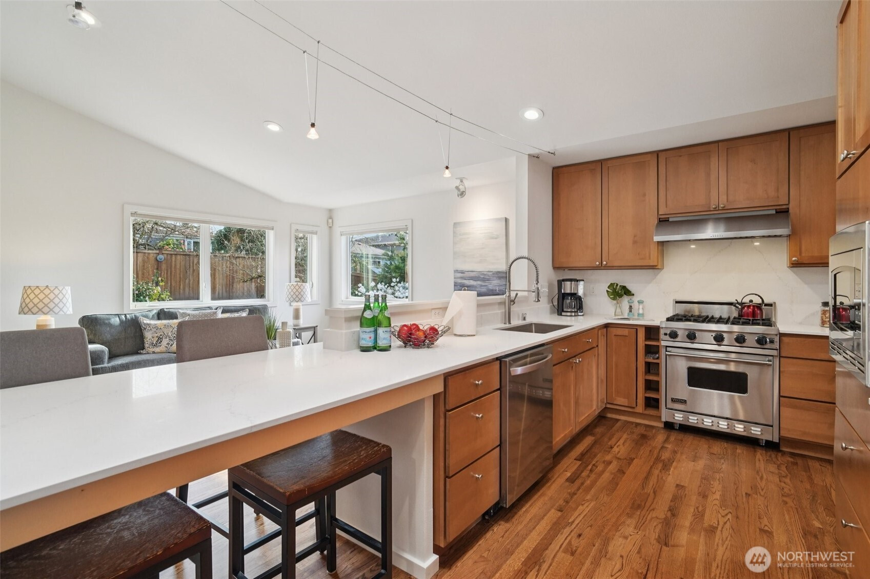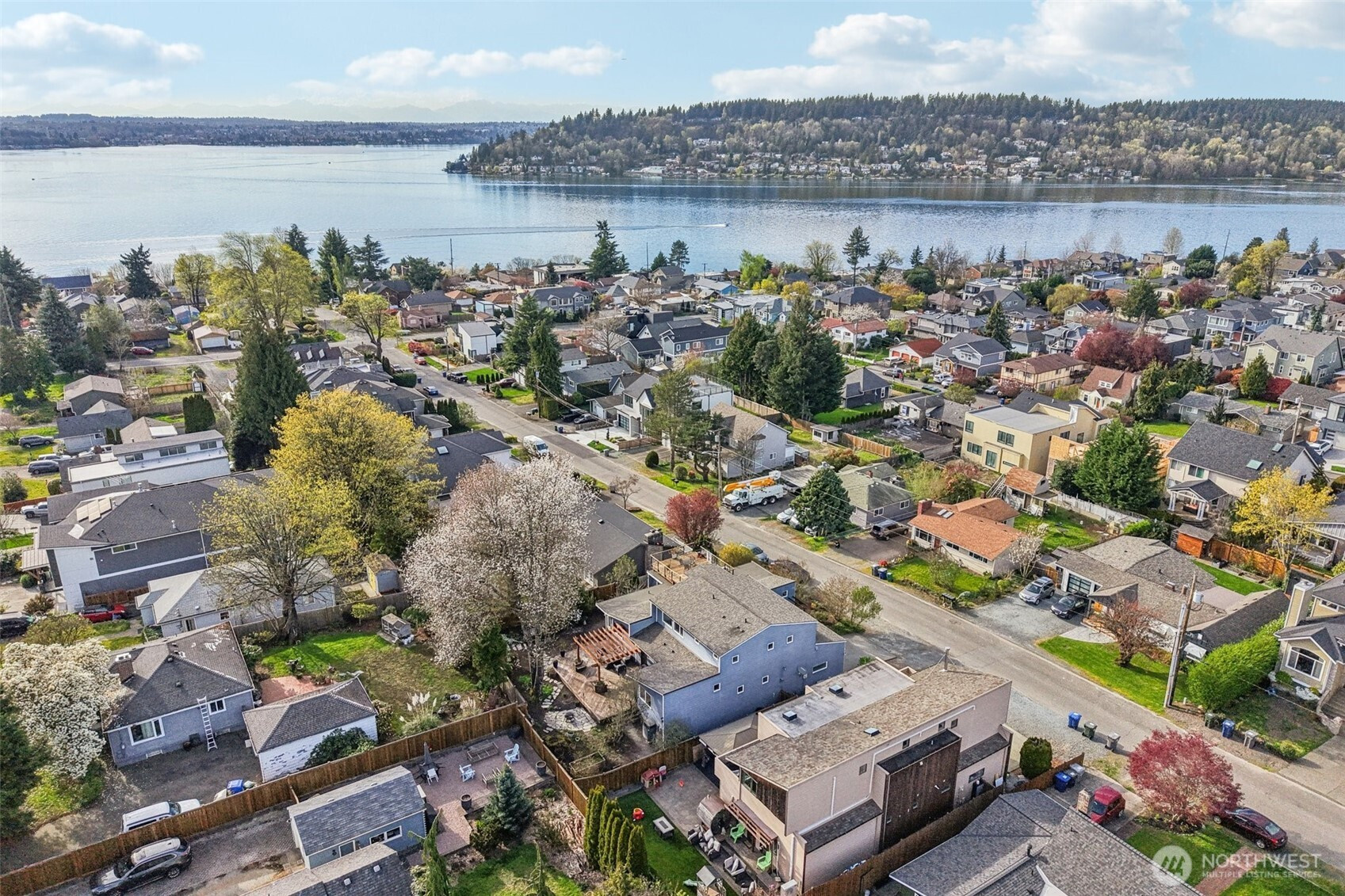 Sweeping lake and mountain views set the tone for this beautifully crafted custom contemporary home in desirable Lower Kennydale. Designed with both elegance and livability in mind, the spacious open layout is anchored by a gourmet kitchen featuring gquartz countertops, professional-grade stainless steel appliances, and custom cabinetry—perfect for everyday enjoyment and memorable gatherings. Two luxurious primary suites offer versatility and comfort, each with generous walk-in closets, while every bedroom is complemented by its own private full bath adorned with timeless quartz. The expansive lower level presents a substantial bonus room along with a dedicated storage and wine room, adding both function and refinement. Built Green with efficiency at its core, the home includes gas heat, hot water, enhanced insulation, and central air for year-round comfort. Additional highlights include wiring for a hot tub and a two car garage. Outdoor spaces shine with a large view deck and a private patio overlooking a fully landscaped yard with mature fruit trees—an ideal setting for relaxation or entertaining.