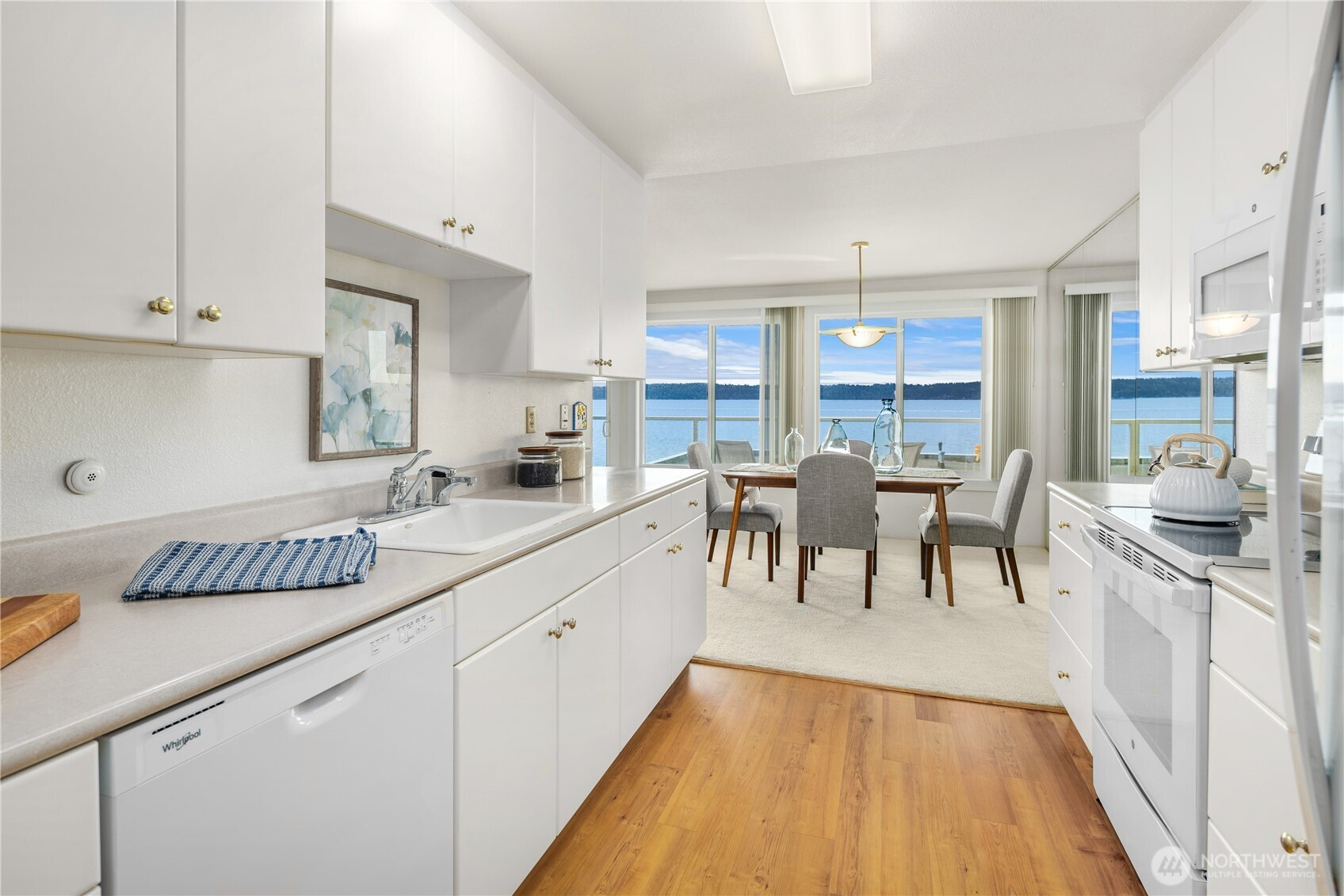 (503) 893-8874Expansive views to the west in this 3 bdrm/1 3/4 bath West Beach condo. Waterfront, beach walks, watching marine life & an active sound plus a boat launch, kayak storage & heated outdoor pool are yours to enjoy. Travel down a private lane to your own sanctuary in the city. Elevator for no steps access or up a short flight of steps to end unit in the first building. Rare 1512 sq ft of living space has an open floor plan. LR features a gas fireplace & sliders to big lanai. The DR can be expanded for large gatherings. Galley kitchen w/great cabinet & counter space. The primary suite has a big view, wall of closets & adjacent 3/4 bath. 2 bdrms, 1 bath, full size washer/dryer & additional linen storage complete the interior. A must see.