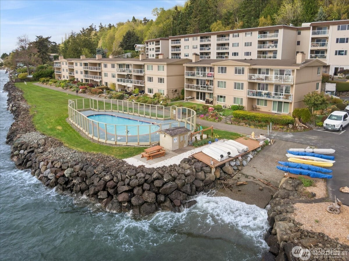 West Beach is a peaceful waterfront enclave of view condos, tucked away just south of Brace Point and the Fauntleroy ferry. Our second-floor residence offers level entry from parking, no stairs required, making daily living simple and accessible. Inside, you'll find this smart two-bedroom, two-bath layout is complemented by updated finishes and an open living area that extends to a generous deck. From here, take in wide westerly views across Puget Sound to Vashon Island and the Olympic Mountains. Large sliders in both living and front bedroom keep the connection to the water constant, whether you are going about your daily life, or cozied up by the gas fireplace with a book enjoying the shifting light, passing ferries, marine life, and striking sunsets. Community amenities include a private beach launch for kayaking or paddle-boarding and a recently refreshed waterfront pool. The nearby pet area, community room with kitchen, sauna and large well equipped workshop all add convenience and possibility for members of the community. All this plus covered parking, guest parking, on-deck storage, and extra storage available for personal belongings, kayaks, paddleboards etc. This home is an easy, low-maintenance option in a quiet waterfront setting. Pre-inspected with HOA documents available for the buyer's convenience.