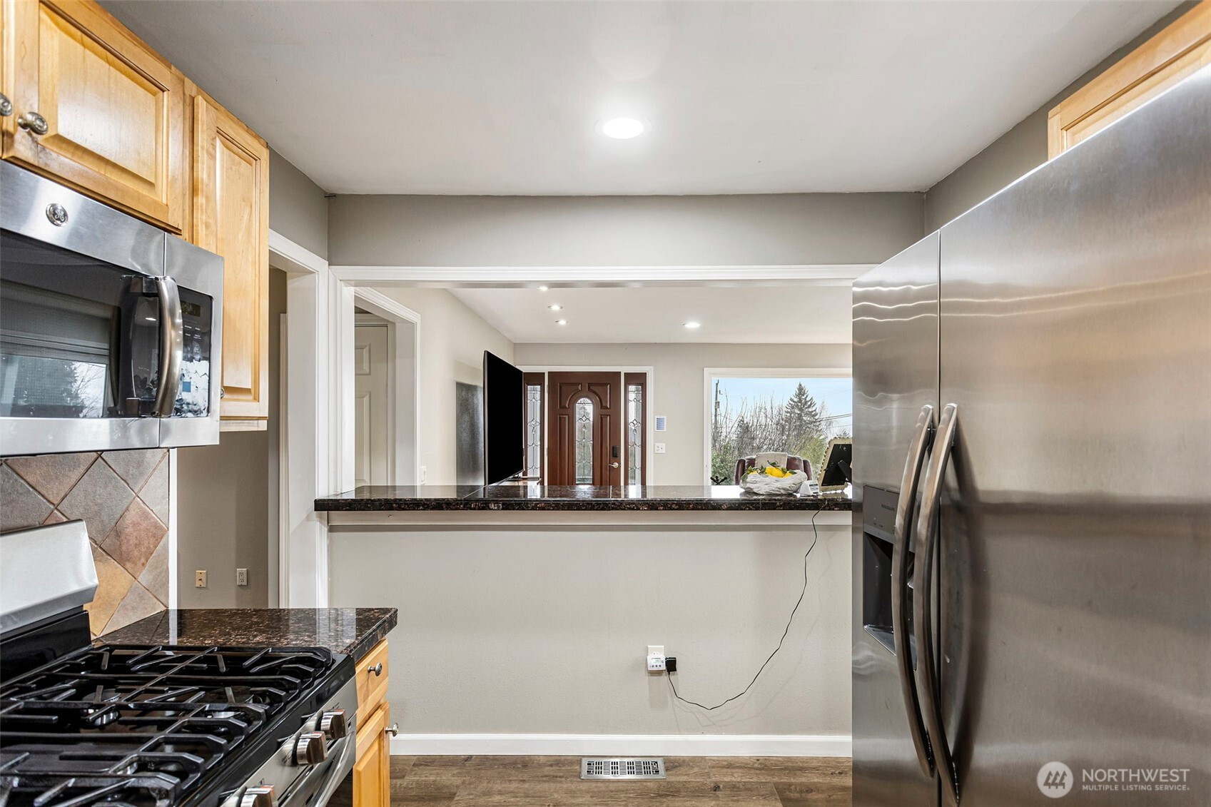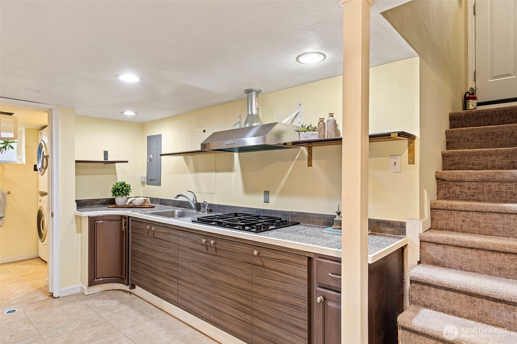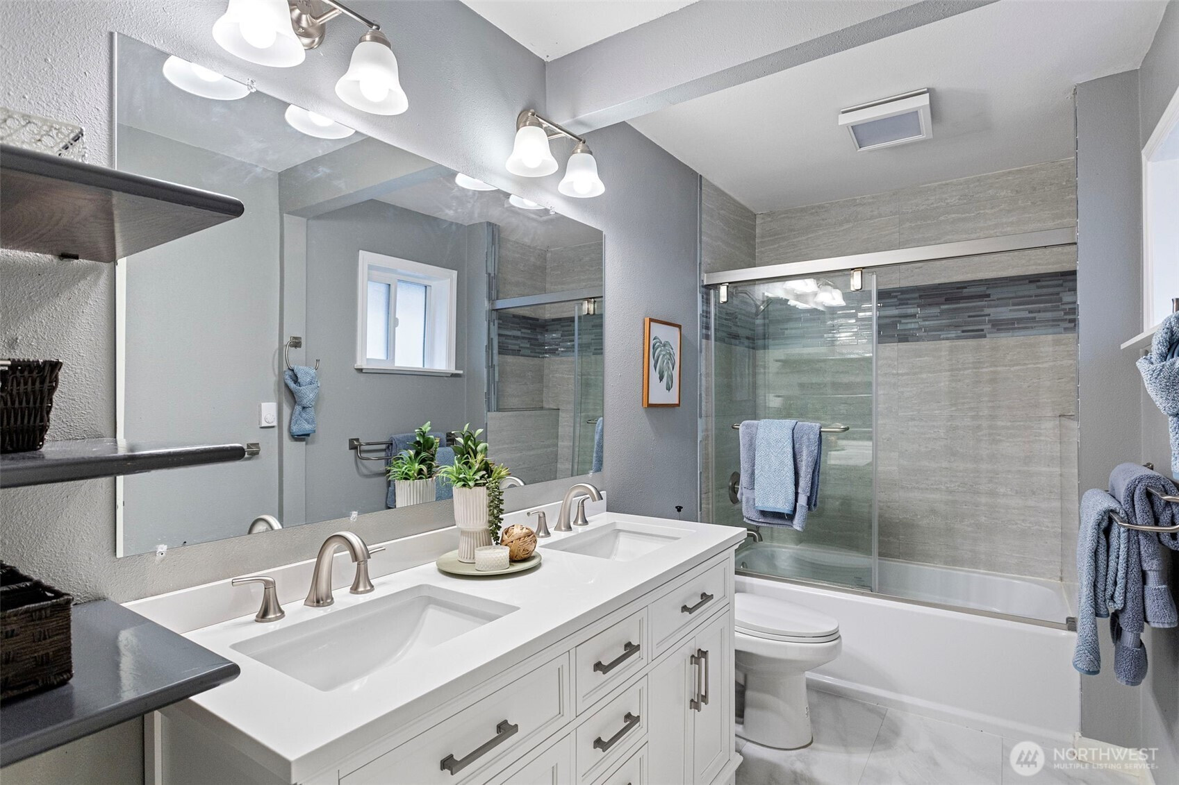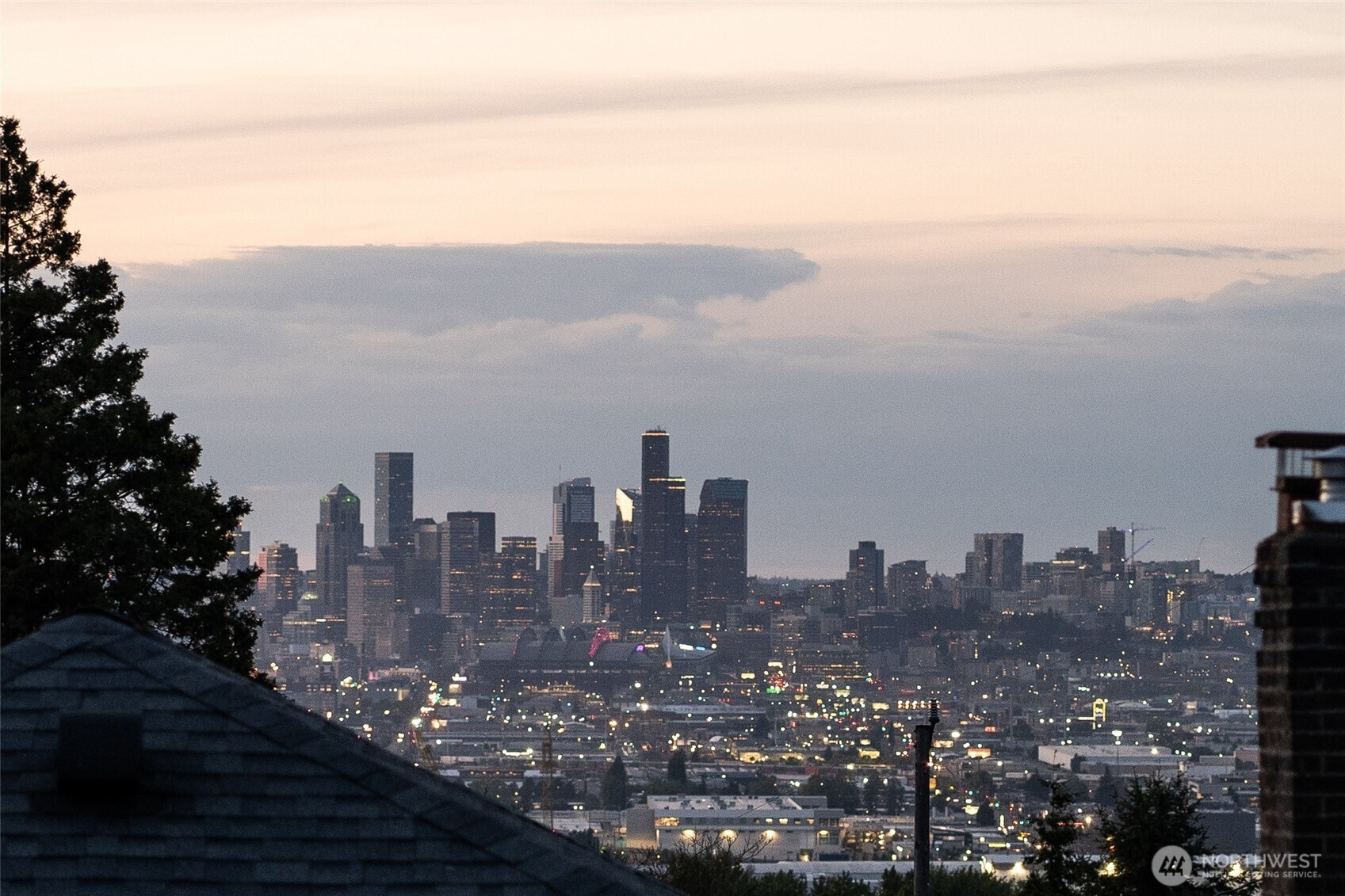 Stunning Corner Home with Panoramic Views of Downtown Seattle & Bellevue! This masterfully remodeled residence features a grand tiled entrance and a highly versatile floor plan designed for modern living. The upper level boasts 3 spacious bedrooms and 2 full baths, while the lower level offers a fully permitted 2-bedroom, 1-bath ADU with a separate entrance—perfect for rental income or multi-generational living. Enjoy light-filled interiors with new engineered hardwood flooring throughout, two full kitchens, and two separate laundry areas. The primary suite includes a generous ensuite bath and a sliding door opening to the private back patio. An expansive new deck (2024) provides the ultimate vantage point for sweeping city views. Major 2024 Upgrades: New roof, new Hardyplank siding, and new deck. Additional updates include a 2025 dishwasher, central vacuum, and fresh interior/exterior paint. The level, fenced yard offers DADU potential (Buyer to verify). Prime location with rapid access to I-5.