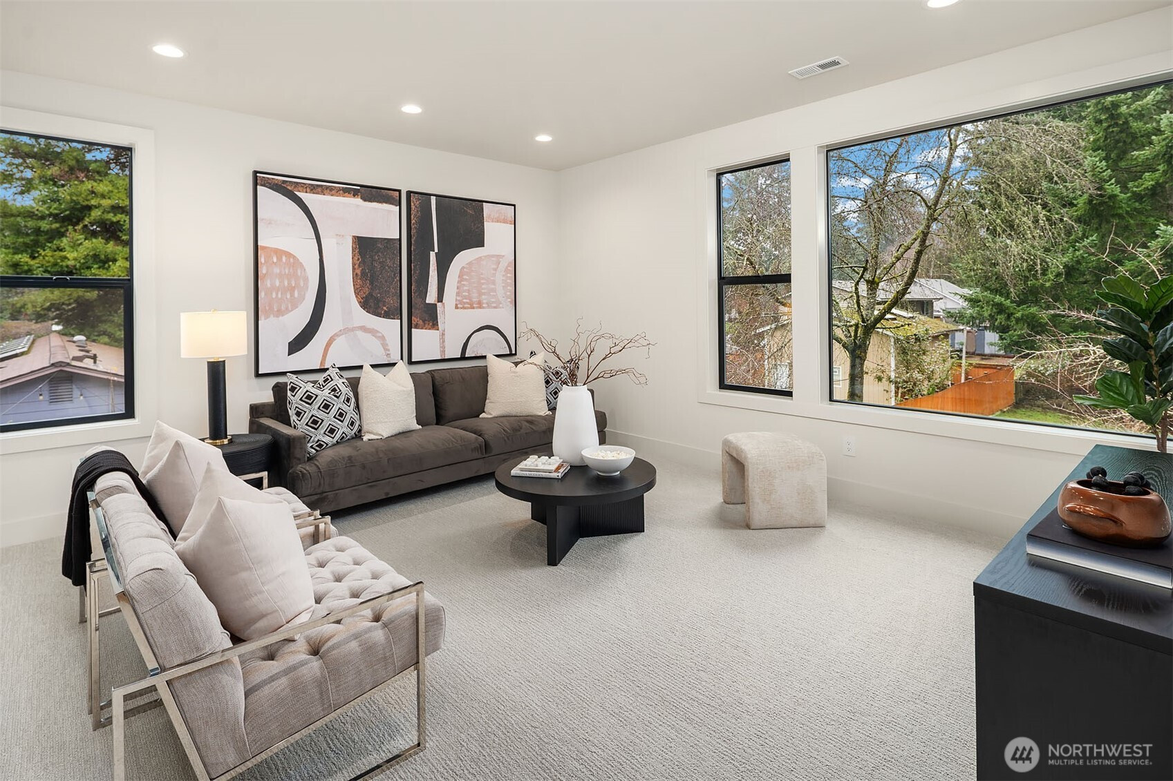 MN Custom Homes introduces a transitional design in the convenient Juanita neighborhood. Entertainment spaces include vaulted great room, chef’s kitchen, outdoor covered living space & upper-floor bonus room. Private, main floor guest en-suite with outdoor patio. Upper floor primary retreat with 5-piece bath and heated floors. Work from home office. South facing front door. Smart & green home features throughout, including solar panels. Convenient access to downtown Kirkland amenities, beaches, parks, schools & all major Tech campuses. Lake Washington Schools.