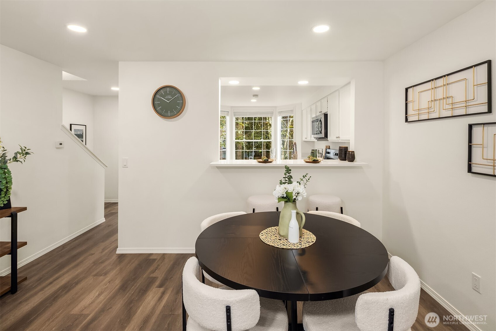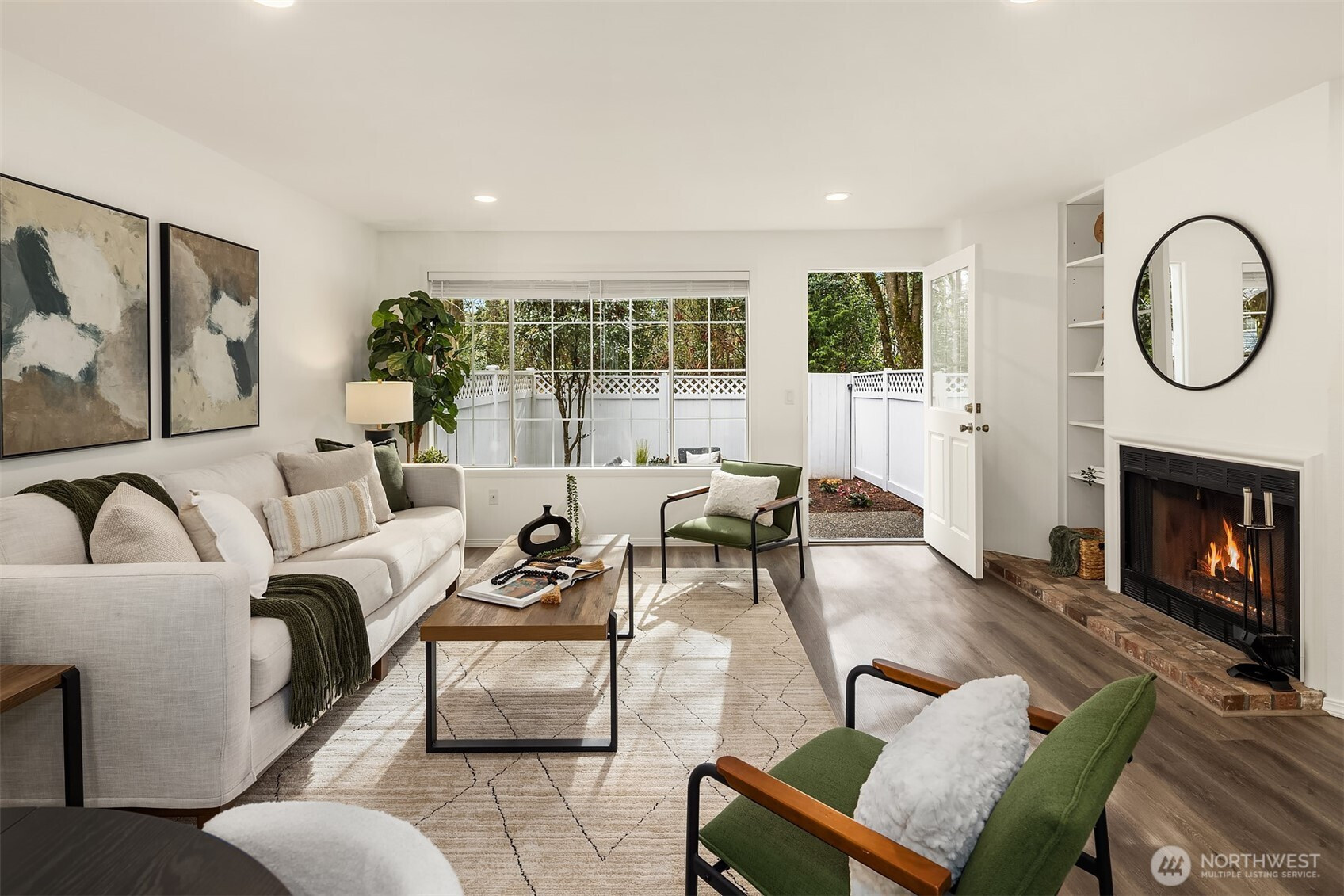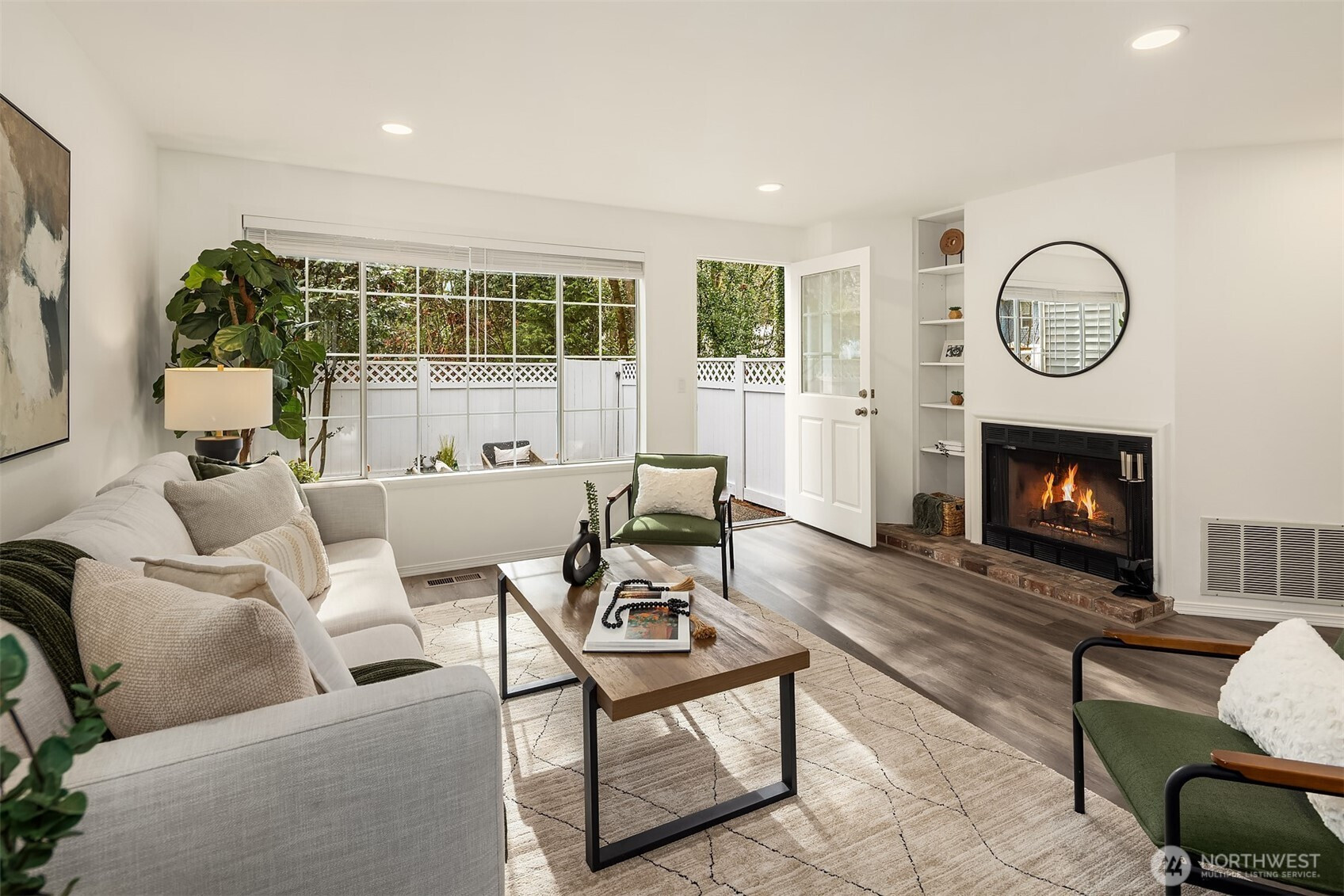 Extensively renovated townhome within the charming Springbrook Square community of Juanita. Inviting main level features a bright open layout. Spacious family room with wood burning fireplace opens to a private, fully fenced rear yard backing to a tranquil greenbelt setting. Updated kitchen features new stainless appliances, quartz countertops and a cozy breakfast nook. Convenient pass through to the dining room also offers additional bar top seating. Upper level with two generous ensuite bedrooms with ample closet space and modern baths. Thoughtful updates include new laminate flooring and interior paint throughout. Attached 2 car tandem garage with EV charging. Low HOA dues and no rental cap! Quiet, convenient location with easy access to the shops and amenities of Totem Lake and Juanita Village not to mention the waterfront recreation at Juanita Beach Park. Pre-inspected, turn-key condition!