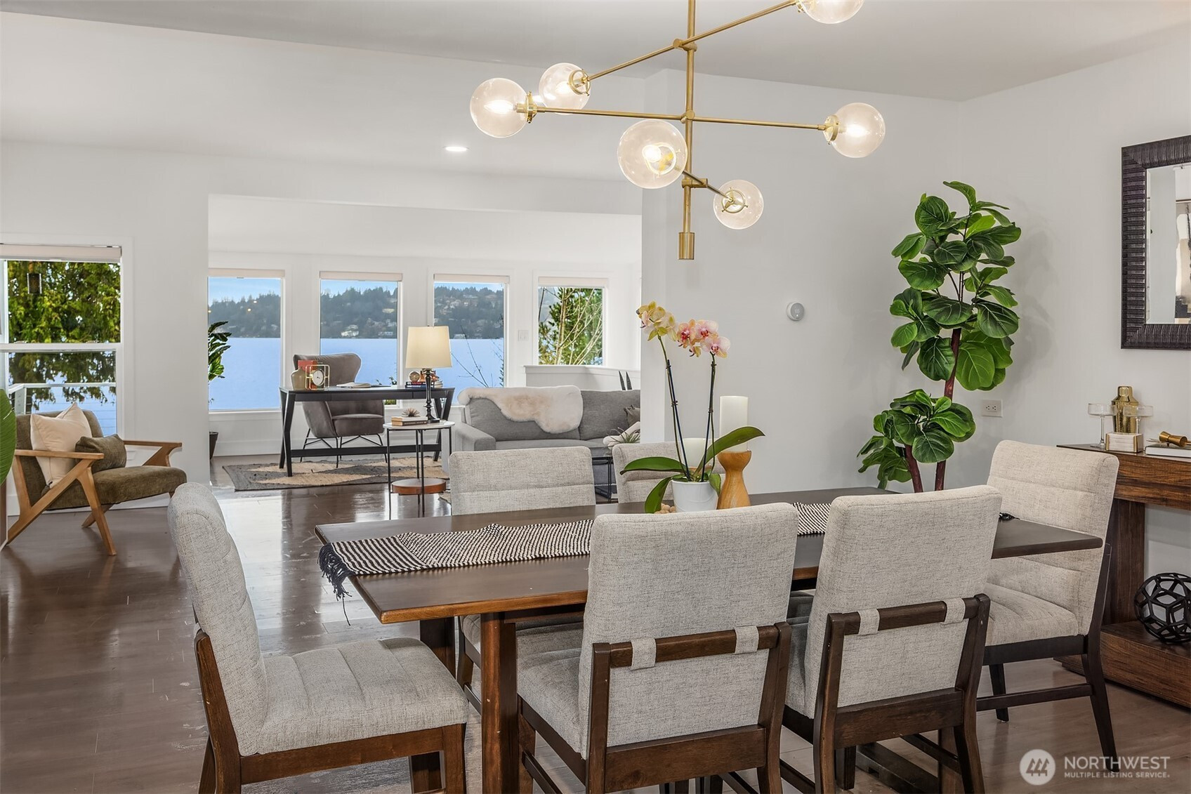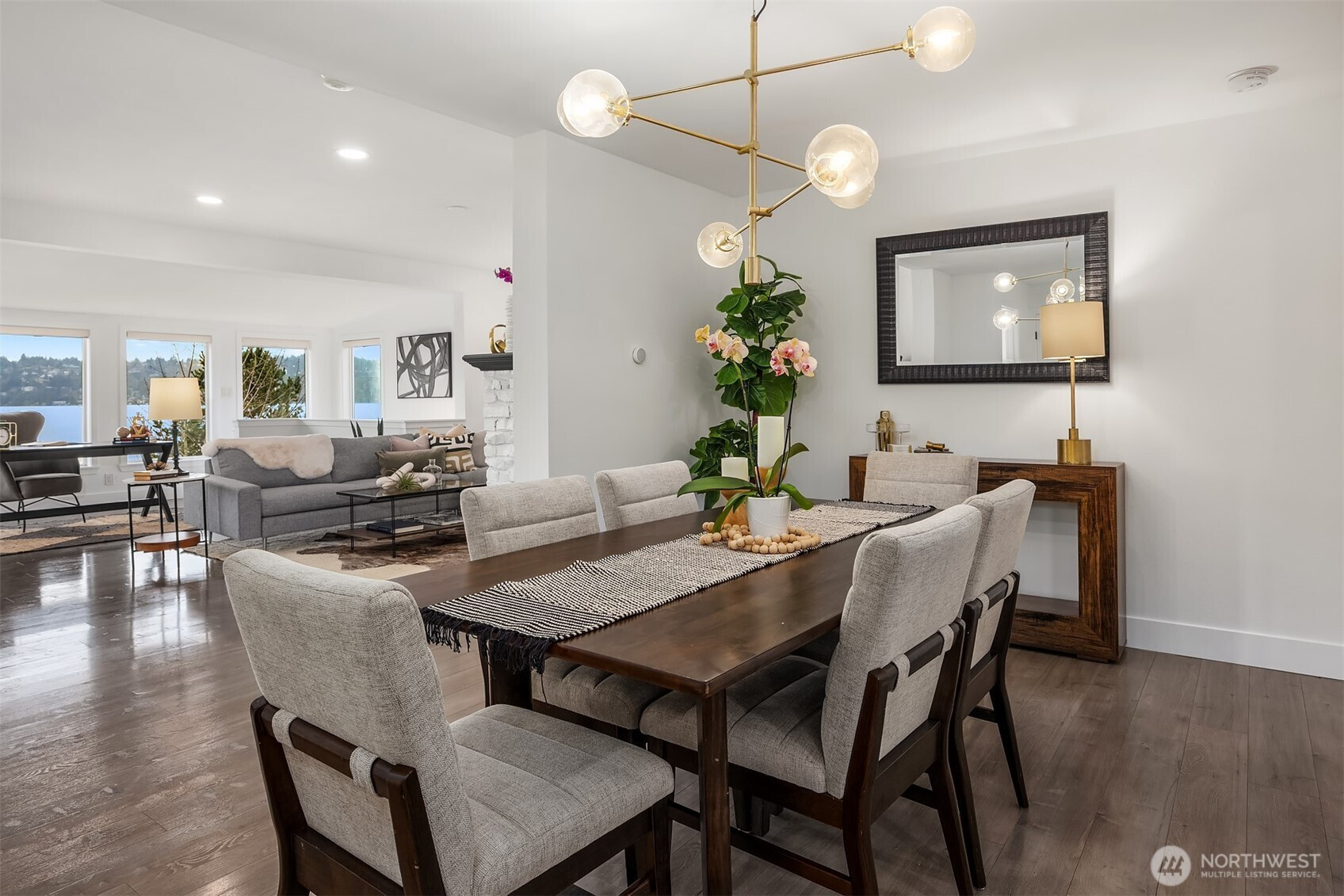 Welcome home. Remodeled 1908 Lake Washington classic boasting architecturally designed updated floor plan. Sprawling open spaces showcased by a lakeside wall of glass, taking advantage of sweeping lake, island & mountain views. Large gourmet kitchen with adjacent dining room. The formal living room boasts an original fireplace. Main-floor primary bedroom with bath. 2nd main bedroom at the opposite end of the house has a continental-view deck. Additional main floor full bath.Level entry daylight lower level has 3rd bedroom with private bath & direct access to private fenced back yard, with gate down to water. Private stairs lead to your own 10’ of Lake Washington waterfront. Install a custom private recreational dock!