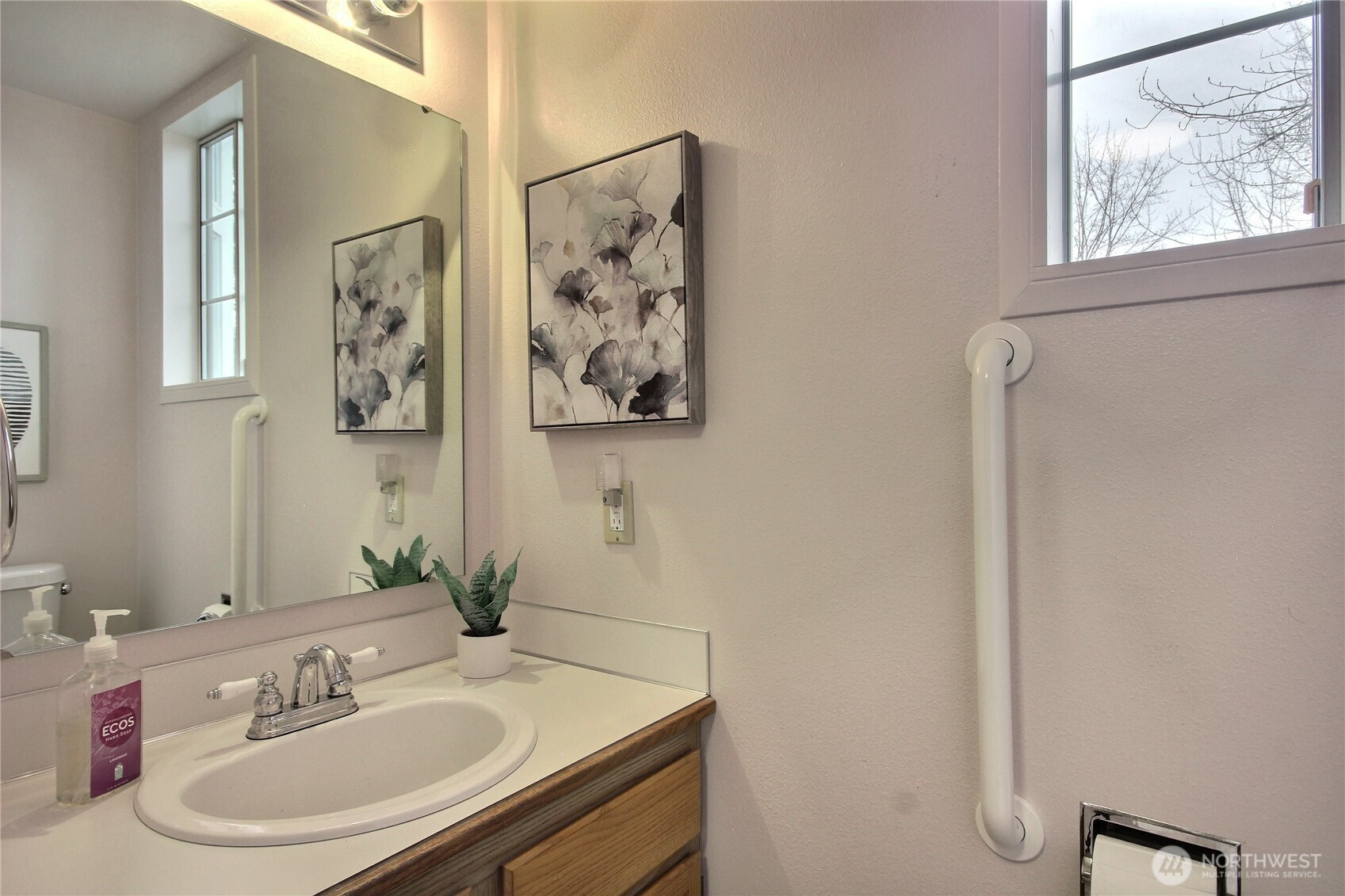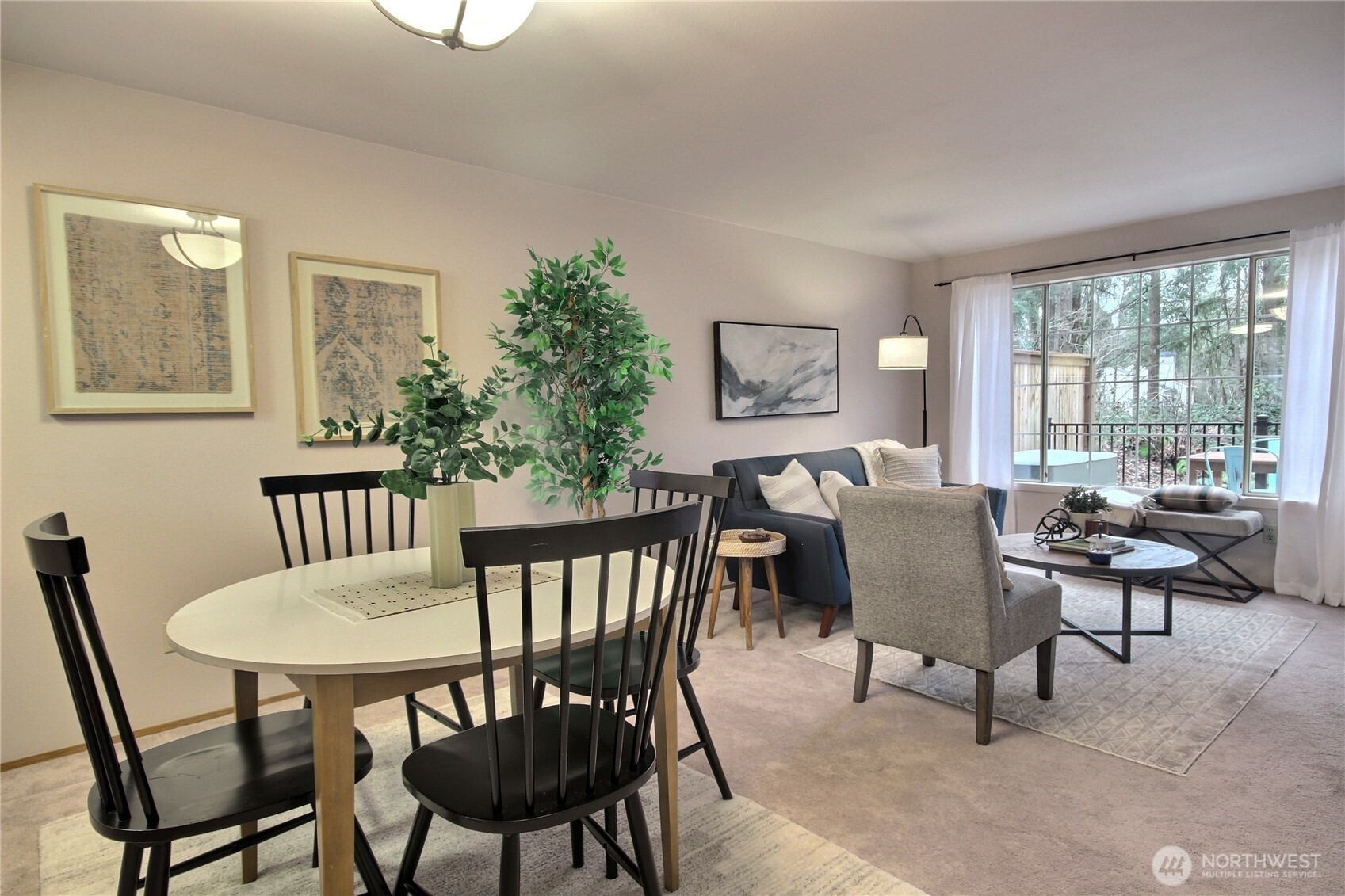 A lovely home in a quiet PUD development in Juanita - LOW DUES. Large kitchen has a great workspace, lots of cabinets, and a sunny coffee nook in the bay window. There is a window opening to the dining area. A spacious living area has a cozy wood-burning fireplace. The private deck is huge, overlooking a fenced yard/dog run, and facing a private greenbelt. Two bedrooms have full ensuite baths and spacious closets. The oversized garage is attached for easy access with a full-size laundry. There is great additional storage space. Efficient gas heat, a newer roof. A great opportunity without high Dues. Lake WA School District. Easy access to 405, Juanita Beach Park, and downtown Kirkland Restaurants and amenities.