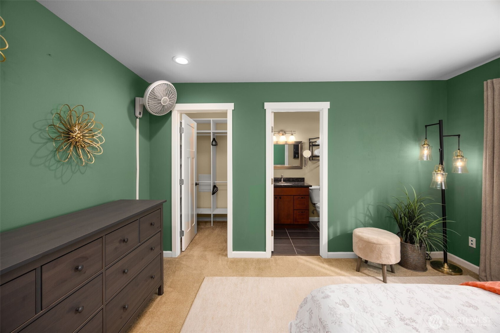 Bright, spacious, and beautifully designed, this 4-bedroom home offers 1,970 sq ft of light-filled living with an ideal open-concept layout. Expansive windows flood the home with natural light, creating a warm and inviting atmosphere throughout the main living, dining, and kitchen spaces perfect for both everyday living and effortless entertaining. The kitchen is well-appointed with stainless steel appliances, granite countertops, a generous eating bar, wood cabinetry, and a pantry, all seamlessly connected to the main living areas. The primary suite offers a peaceful retreat with a walk-in closet and ensuite bath, while three additional bedrooms, all on upper floor, provide flexibility for guests, work-from-home needs, or play space. Thoughtful upgrades and features throughout include bamboo flooring, a gas fireplace, designer lighting, and integrated smart home technology for modern convenience. Enjoy outdoor living with a fully fenced patio and deck, ideal for relaxing, entertaining, or play. The attached one-car garage is equipped for adventure, featuring extra storage along with bike lifts and kayak storage, making it easy to take full advantage of the Pacific Northwest lifestyle. Ideally located within just minutes to popular restaurants, coffee shops, entertainment, and shopping.