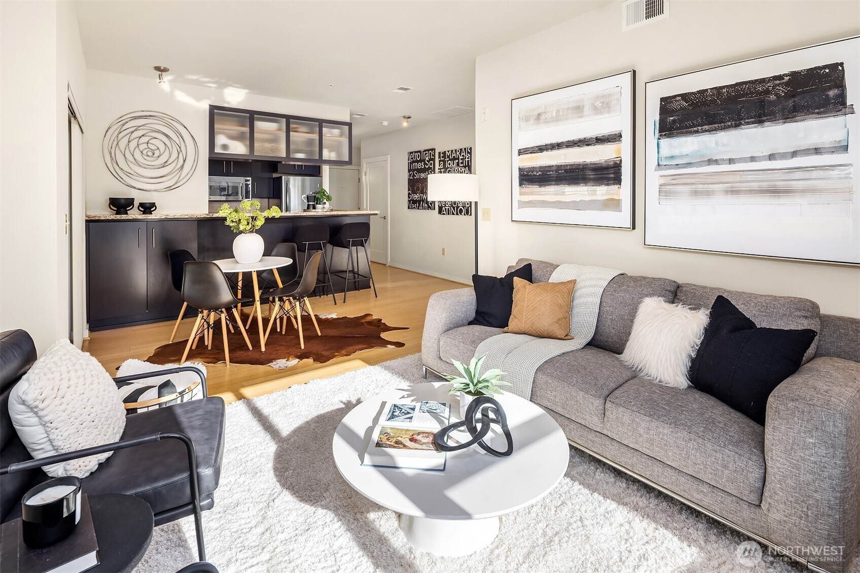 Live at the center of it all at DWELL Roosevelt, perfectly positioned next door to the Roosevelt Light Rail and just steps from Whole Foods, Green Lake, neighborhood cafes, restaurants, and everyday essentials. This south-facing 2 bed, 2 bath home offers a rare combination of light, privacy, and urban convenience, with every room oriented to the south for all-day natural light. The thoughtful layout includes a true primary suite, a flexible second bedroom, and open living space that extends to a private balcony - ideal for enjoying the energy of the neighborhood while maintaining a sense of retreat. Central heat and A/C keeps you comfortable year round. Secure, well-managed building with controlled access, garage parking, and a rooftop deck featuring sweeping city, lake, and mountain views. Easy access to Downtown Seattle, UW, and I-5. No rental cap adds long-term flexibility for both homeowners and investors.