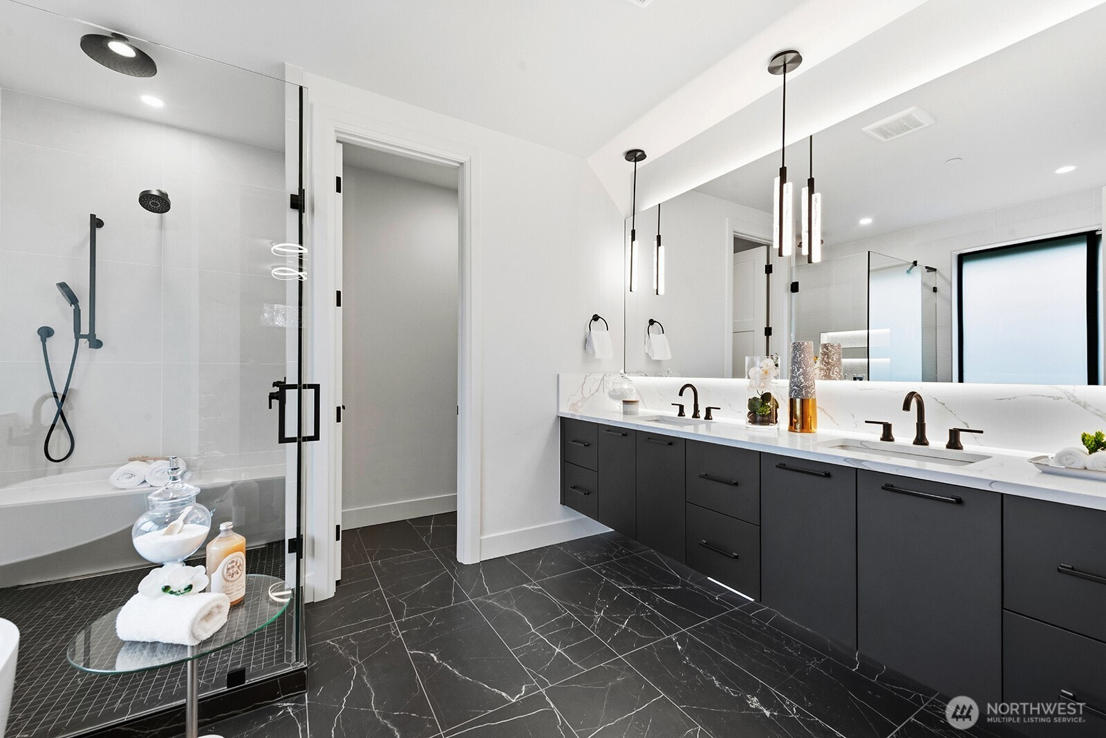 Welcome to modern luxury living in Bellevue's highly sought-after Lake Hills community! This thoughtfully designed 5-bedroom, 4-bathroom home isn't just impressive; it's easy to live in. The 2-story great room makes an immediate statement, filling the home with abundant light and a sense of space, while the chef's kitchen, outfitted with top-of-the-line Thermador Wi-Fi-enabled appliances, anchors everyday living and effortless entertaining. Spa-inspired bathrooms offer a daily escape, and the covered patio extends your living space year-round, perfect for quiet mornings or hosting friends. Add in a prime location, just steps to Lake Hills Community Park, and Phantom Lake Elementary School, which is part of the top-ranked Bellevue schools, and you have a home that truly delivers on lifestyle, comfort, and long-term value.