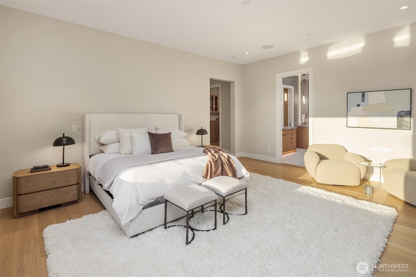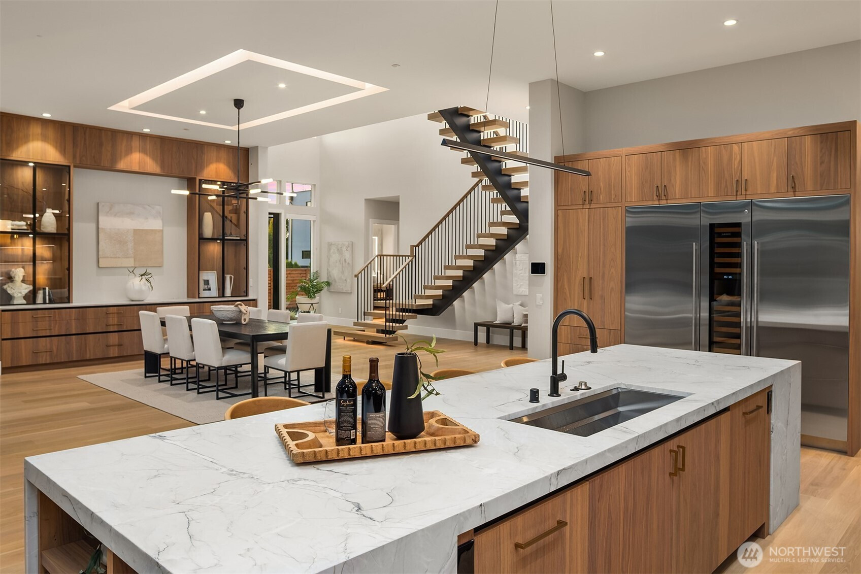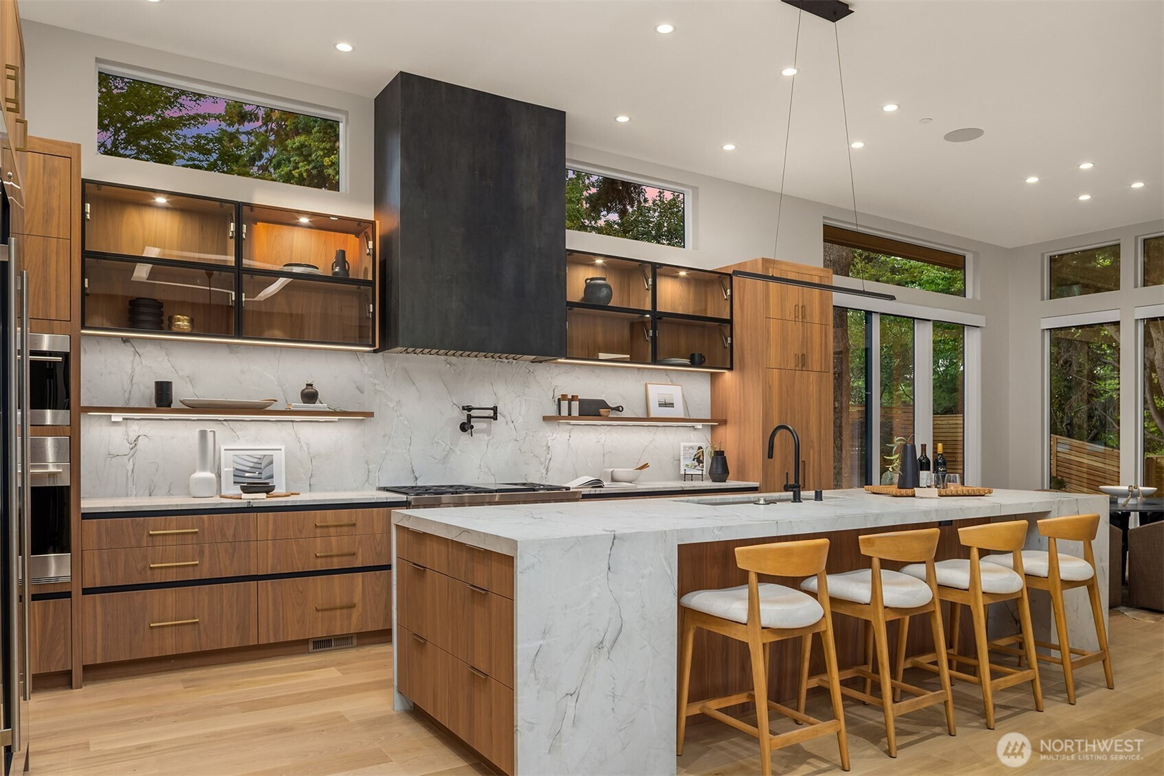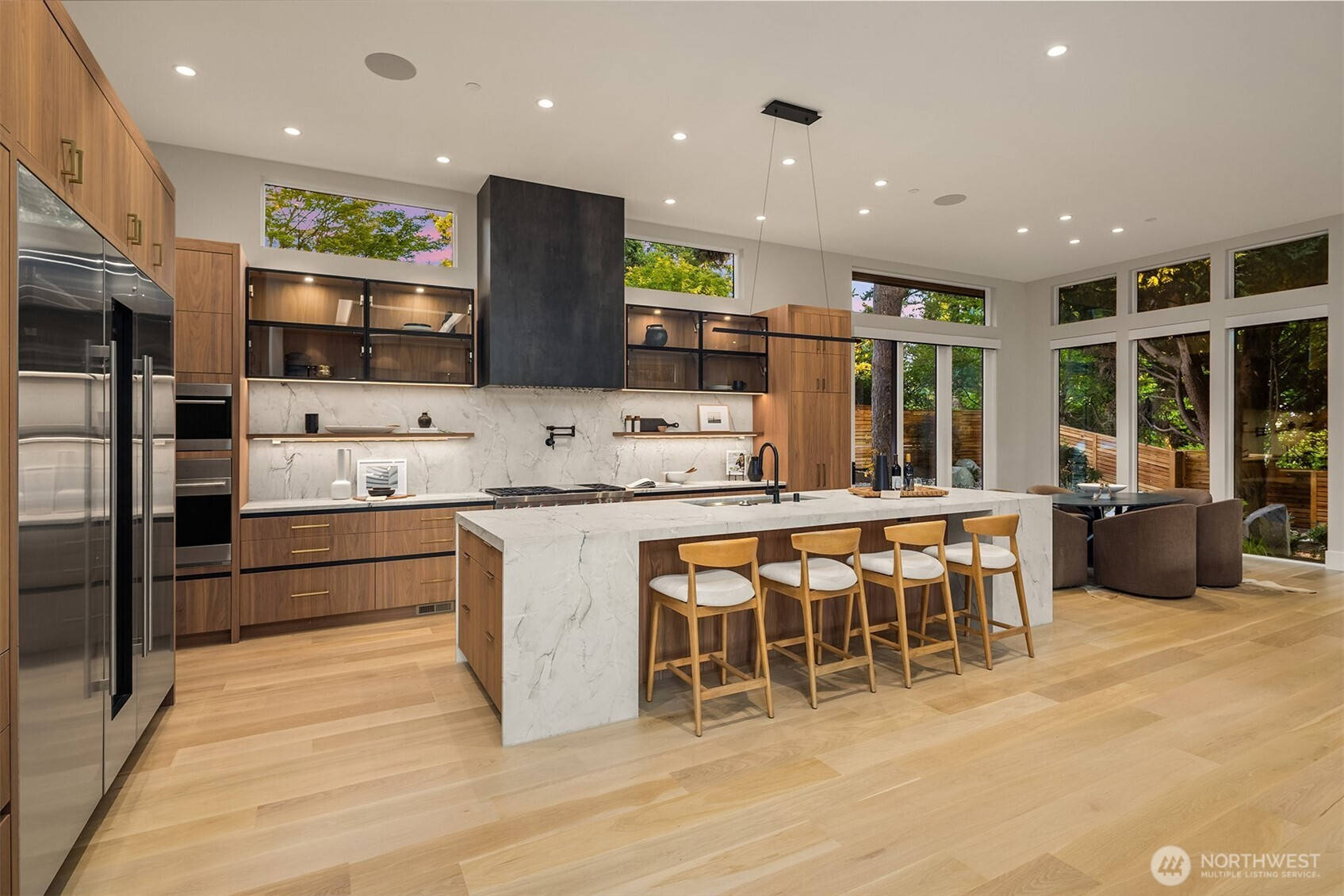 Step through a custom glass pivot door into a masterpiece by Chaffey Custom Construction and McCullough Architects. This 5-bedroom, 5.5-bath home includes two private offices, a fitness studio with infrared sauna, and a luxe theater. Wide-plank white oak floors flow throughout both levels of the open-concept design. The stunning kitchen is elevated by a thoughtfully designed pantry and scullery. The primary suite offers a serene retreat with floor-to-ceiling tile, mirrors, and dual walk-in closets. Outfitted with Sub-Zero, Wolf, Kohler, and Brizo and powered by solar, this smart home features Lutron lighting, motorized shades, and turnkey audio/video/security. Wired with Cat6 data cabling and Wi-Fi 7. A rare blend of innovation and elegance