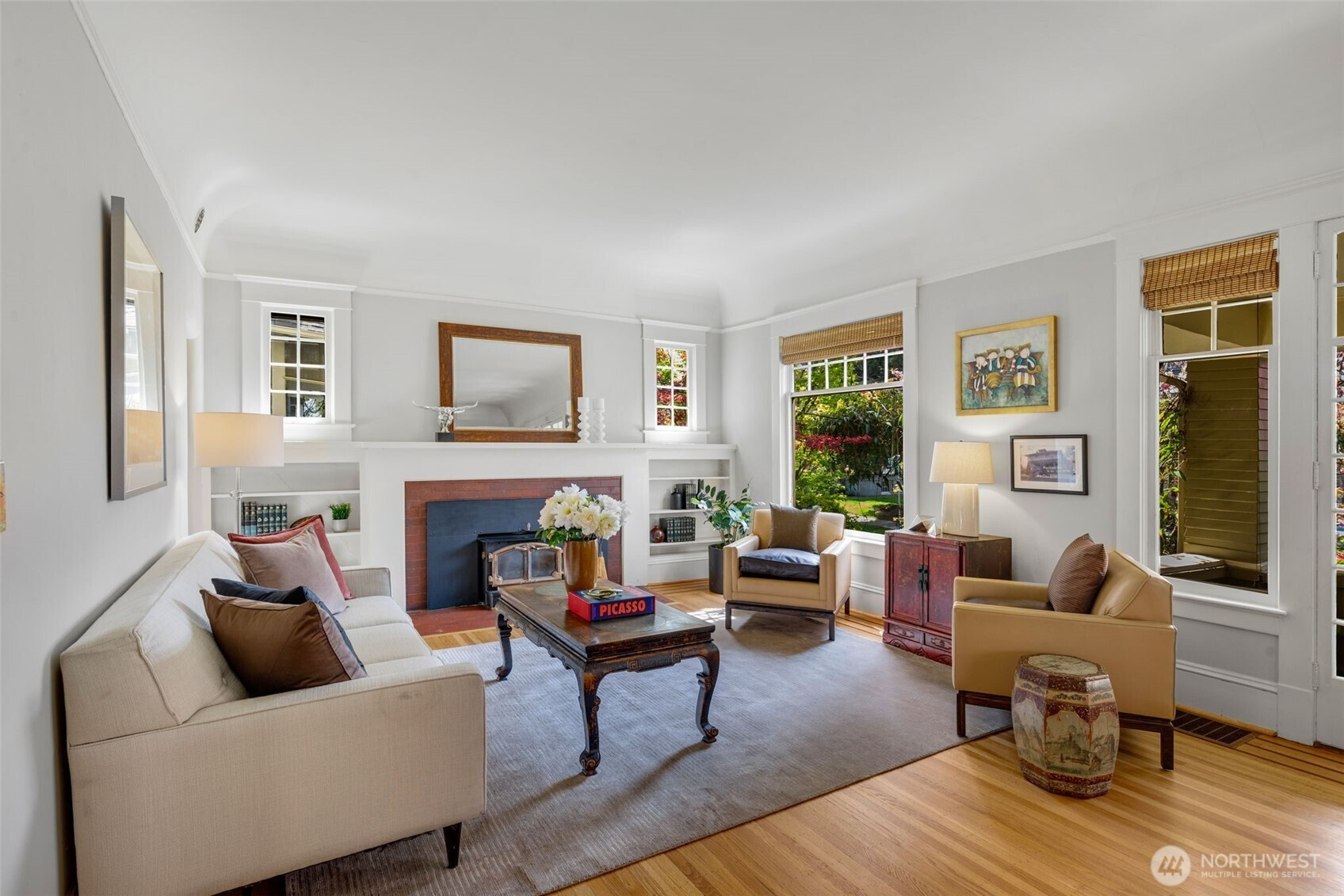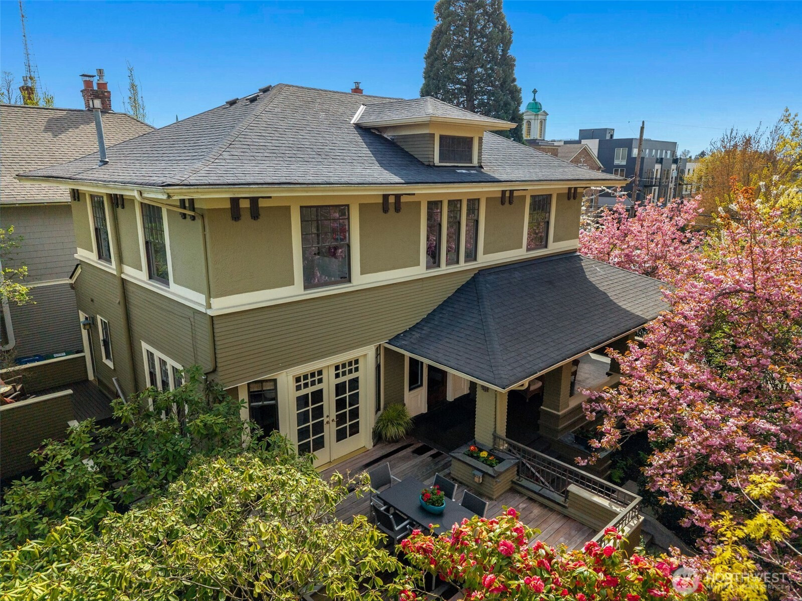 Perched proudly on a corner lot, this Grand Craftsman has been witness to Seattle’s story since 1907—now ready to be part of yours. Blending timeless character with thoughtful updates, this five bedroom home offers the best of both eras. Inside, classic architectural details shine—rich hardwood floors, charming window seats, cozy nooks & original craftsmanship that simply can’t be replicated. At the same time, modern living is embraced with an open-concept, updated kitchen & baths, & a lower level with media room, den, BR, & steam shower. A laundry & wine cellar completes this floor. French doors invite you outside to a garden-like setting, where a wraparound porch & decks create spaces for celebrating everyday life. Whether it’s morning coffee or evening dinners, this home lives as beautifully outdoors as it does within. Natural light fills the home with a central staircase that carries sunlight through its core. Skylights above & corner windows create an interplay of light & shadow, casting warm, shifting sunbeams across the interiors—an understated luxury during Seattle’s softer gray days. Two inviting fireplaces add to the home’s enduring charm. Located in a highly walkable neighborhood near boutique shops, grocery stores, restaurants & parks, the lifestyle here is as compelling as the home itself. The large garage—adds convenience to character. It's more than a home. It's a piece of Seattle's past, respectfully updated for today & ready to be a part of your next chapter.