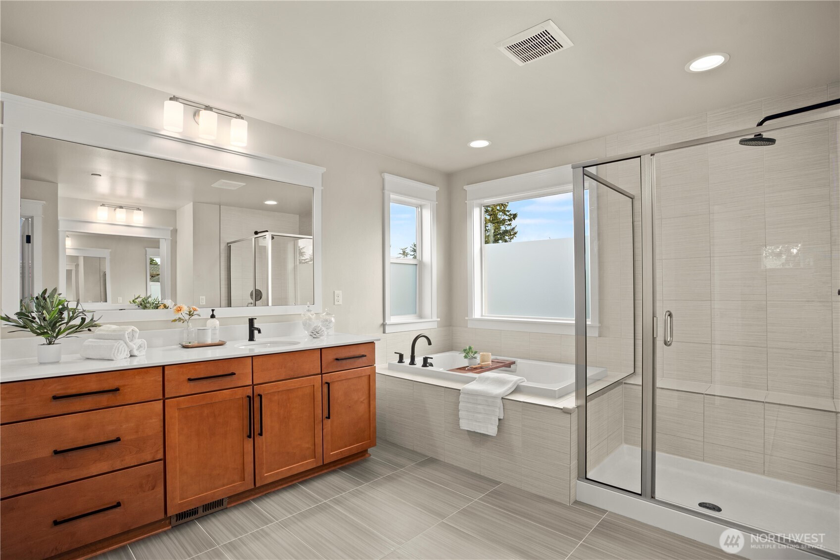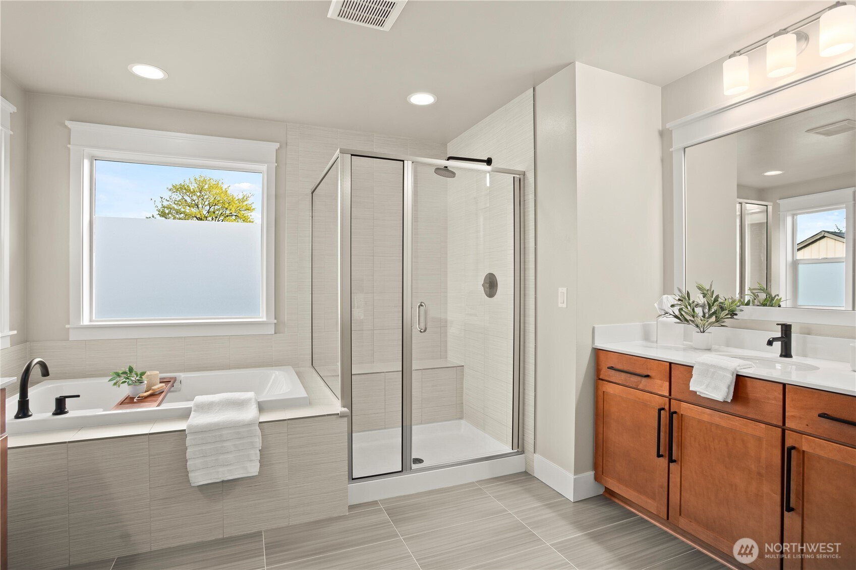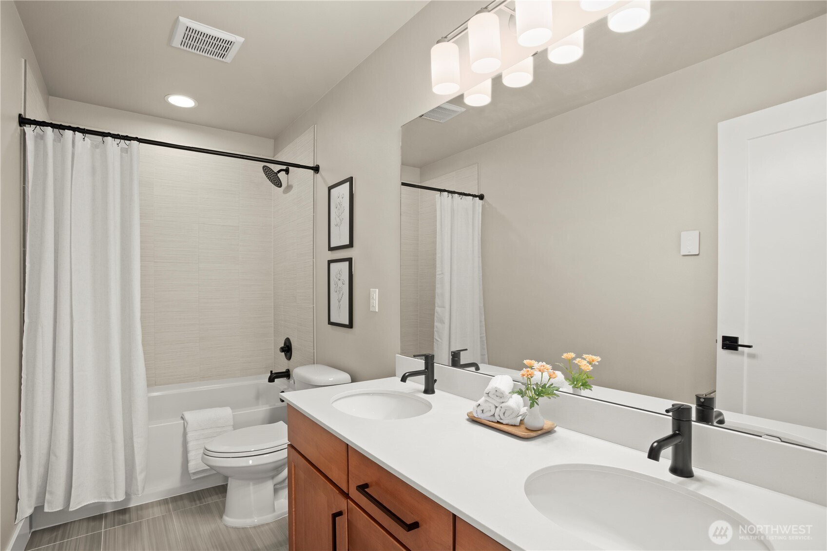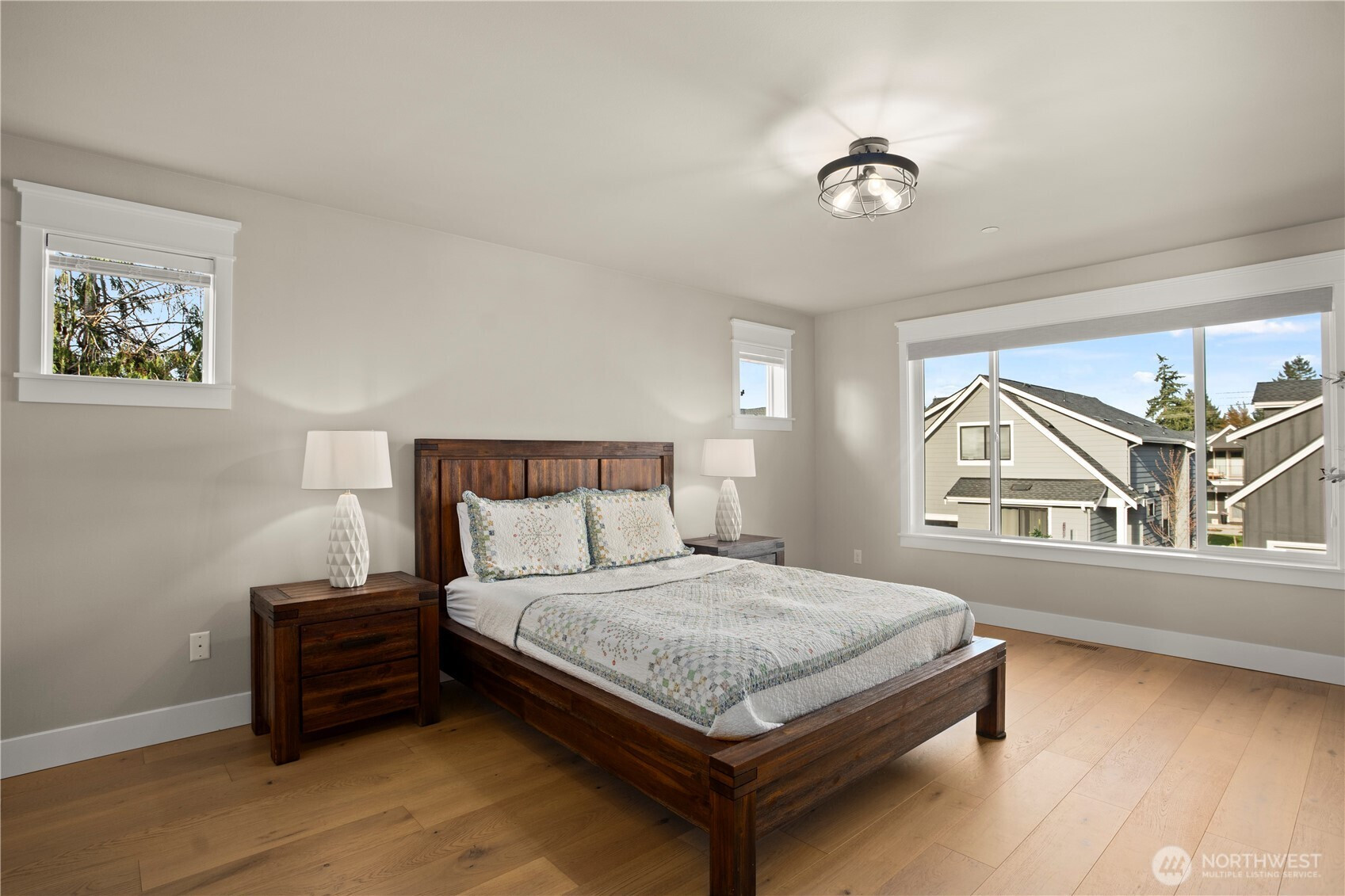 Nestled in highly sought-after Rose Hill, this thoughtfully designed home in Heather’s Ridge offers the perfect blend of comfort, style, and modern convenience. At the heart of the home is the chef’s kitchen, featuring quartz countertops, stainless steel appliances, and an open layout that flows seamlessly into the inviting living room, featuring a cozy gas fireplace. Engineered hardwood flooring runs throughout the home, enhanced by electric under-floor heating for added warmth during PNW winters. In the warmer months, enjoy central A/C indoors or step outside to a level, fully-fenced backyard with a private patio - the perfect spot for summer BBQs and gatherings. The dedicated home office, complete with elegant French doors, provides a quiet and functional work-from-home retreat. The upper level showcases a spacious primary suite with a spa-like 5-piece ensuite bath and walk-in closet, a conveniently located laundry room, plus three additional bedrooms and a full bath. Other thoughtful upgrades include EV charging capability, a full-house humidifier, irrigation system, and home security system. Residents also enjoy access to a community park and playground. Ideally located just minutes from major tech campuses, I-405, and top-rated Lake Washington schools - this is Rose Hill living at its finest. Welcome home!