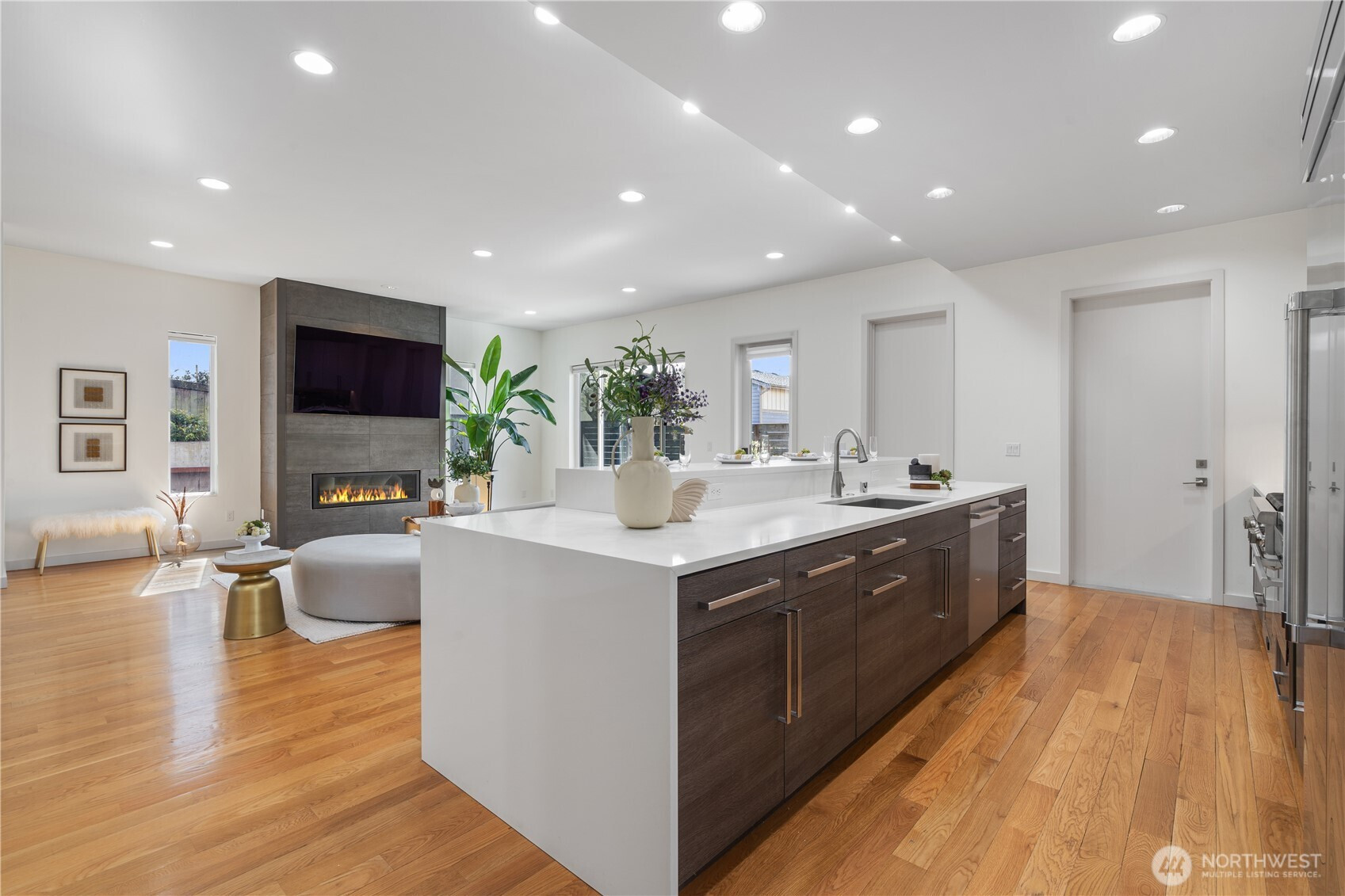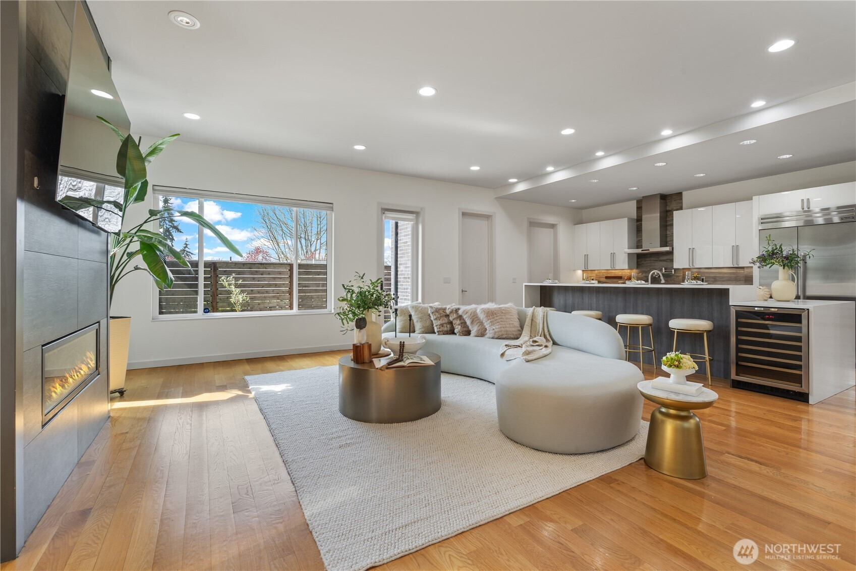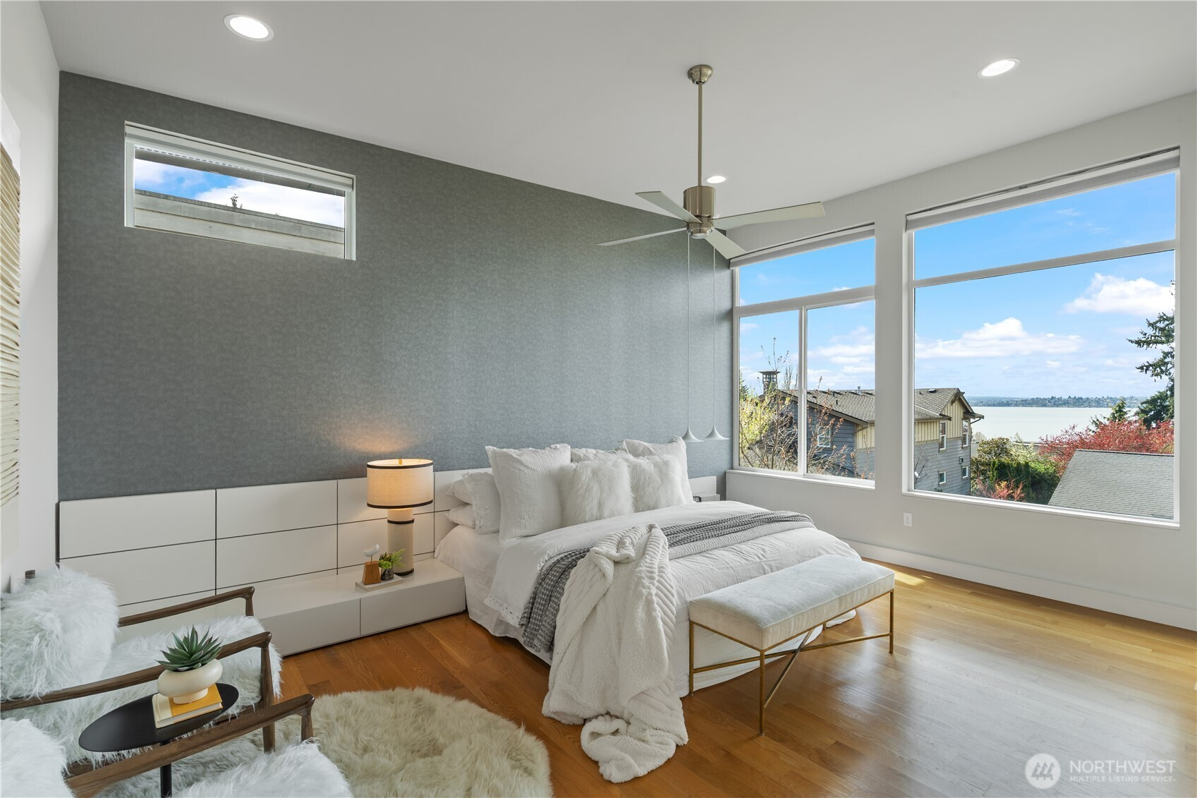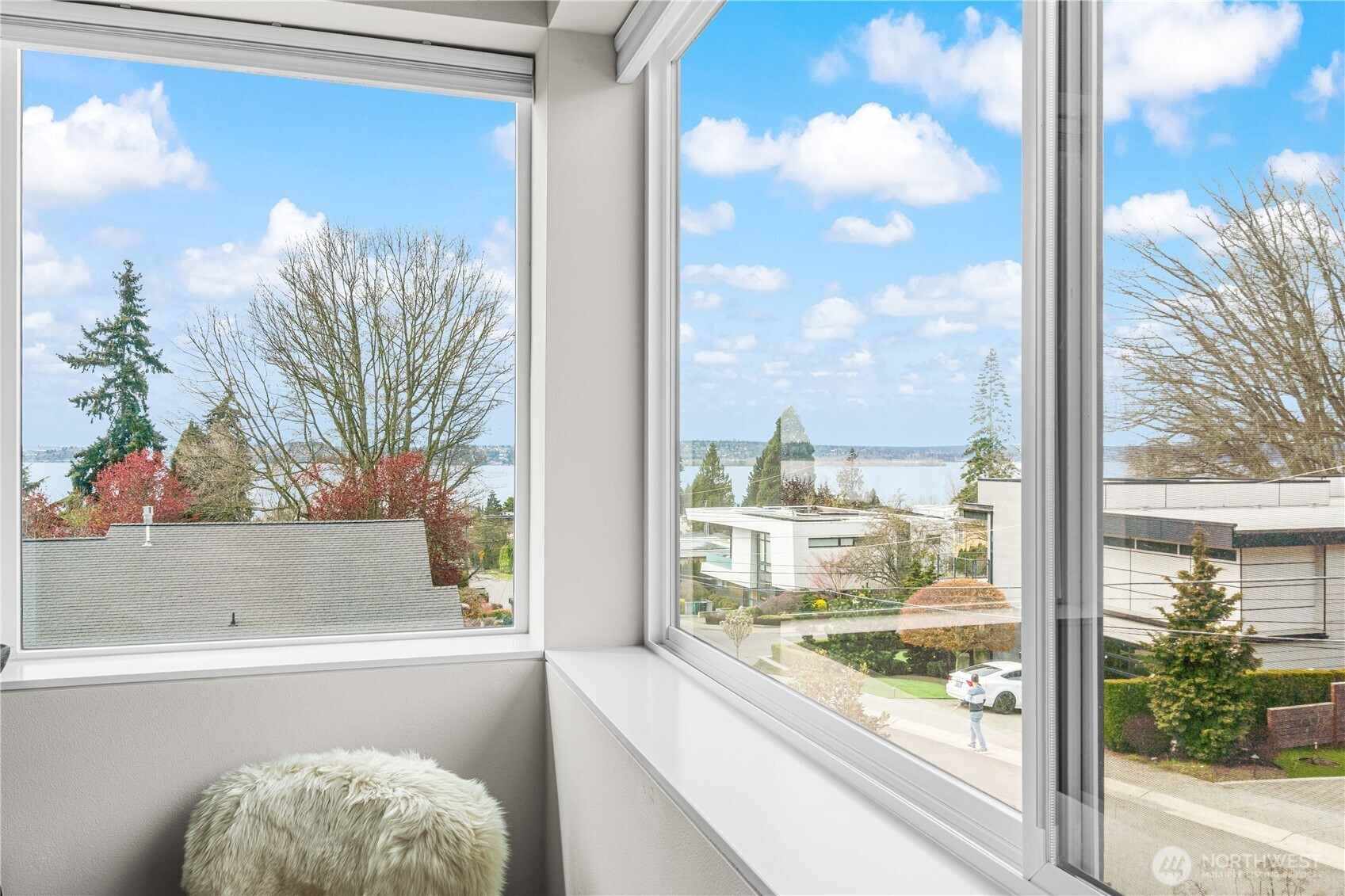 Refined, sophisticated, yet warm and inviting, this 4-Star Built Green Houghton masterpiece offers an exceptional blend of modern luxury, comfort, and lifestyle. Tucked away on a quiet dead-end street with direct access to the Cross Kirkland Corridor Trail, this nearly new contemporary home impresses from the moment you arrive. A dramatic 23-ft foyer and striking floating staircase create an unforgettable first impression, while 10-ft ceilings and select 10-13 ft vaulted ceilings elevate the sense of light and volume throughout. Radiant floor heating on both the main and upper levels delivers outstanding year-round comfort. Western and southern exposure fills the home with beautiful natural light, while lake views add to its serene ambiance. The designer kitchen is appointed with premium Miele and Thermador appliances, seamlessly connecting to open-concept living spaces finished with solid hardwood flooring and sophisticated custom details. Luxurious primary suite offers a peaceful retreat with lake views, a spa-inspired bath. Outdoors, the fully upgraded backyard features concrete pavers, premium turf, and a full sprinkler system, creating a low-maintenance space ideal for relaxing or entertaining. Built-in garage cabinetry and overhead storage racks provide exceptional functionality. Just moments to parks, trails, Google, and major tech campuses, this home offers not only stunning design and comfort, but also an elevated Kirkland lifestyle.