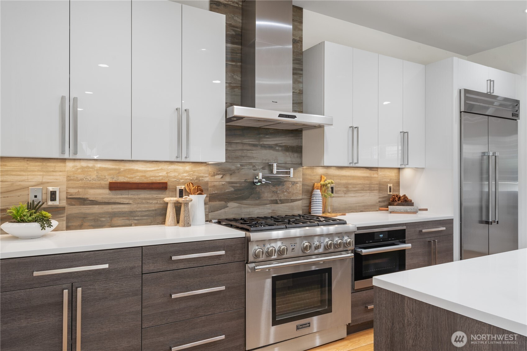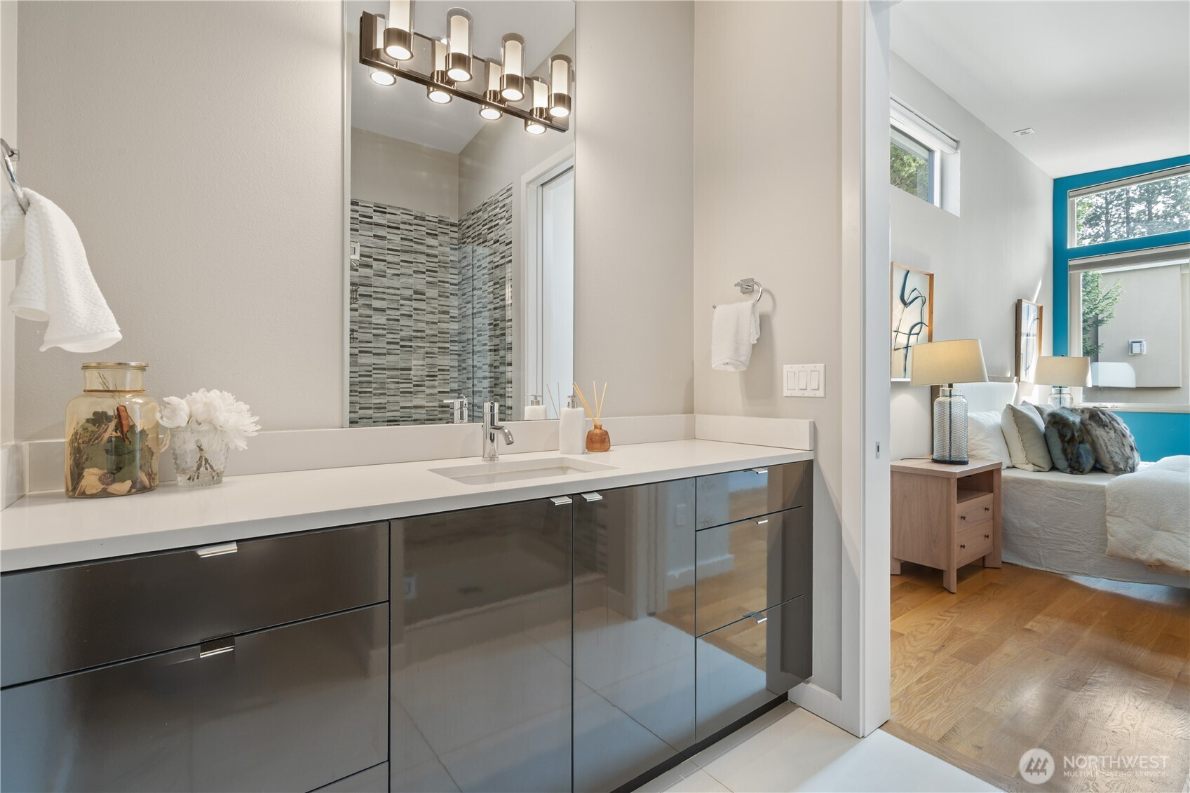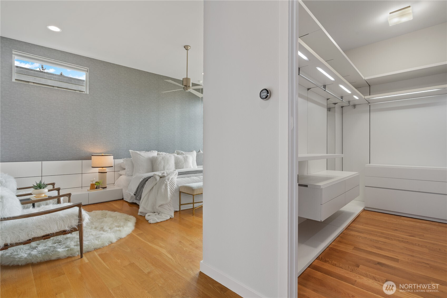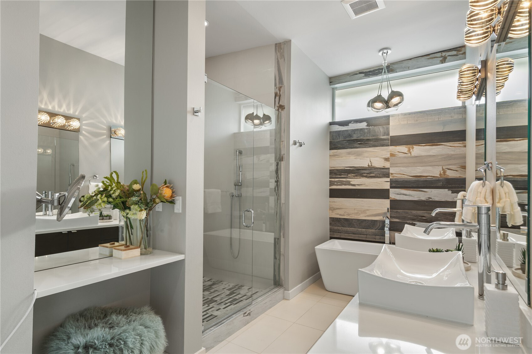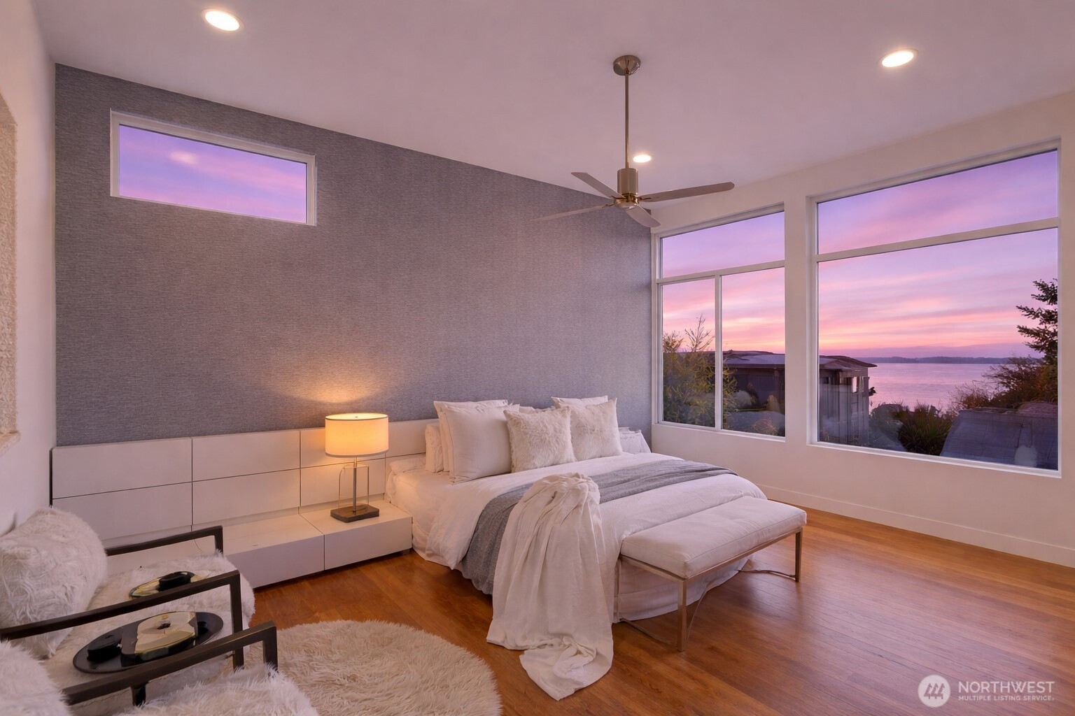 Refined, sophisticated, yet warm and inviting, this 4-Star Built Green Houghton masterpiece offers an exceptional blend of modern luxury, comfort, and lifestyle. Tucked away on a quiet dead-end street with direct access to the Cross Kirkland Corridor Trail, this nearly new contemporary home impresses from the moment you arrive. A dramatic 23-ft foyer and striking floating staircase create an unforgettable first impression, while 10-ft ceilings and select 10-13 ft vaulted ceilings elevate the sense of light and volume throughout. Radiant floor heating on both the main and upper levels delivers outstanding year-round comfort. Western and southern exposure fills the home with beautiful natural light, while lake views add to its serene ambiance. The designer kitchen is appointed with premium Miele and Thermador appliances, seamlessly connecting to open-concept living spaces finished with solid hardwood flooring and sophisticated custom details. Luxurious primary suite offers a peaceful retreat with lake views, a spa-inspired bath. Outdoors, the fully upgraded backyard features concrete pavers, premium turf, and a full sprinkler system, creating a low-maintenance space ideal for relaxing or entertaining. Built-in garage cabinetry and overhead storage racks provide exceptional functionality. Just moments to parks, trails, Google, and major tech campuses, this home offers not only stunning design and comfort, but also an elevated Kirkland lifestyle.