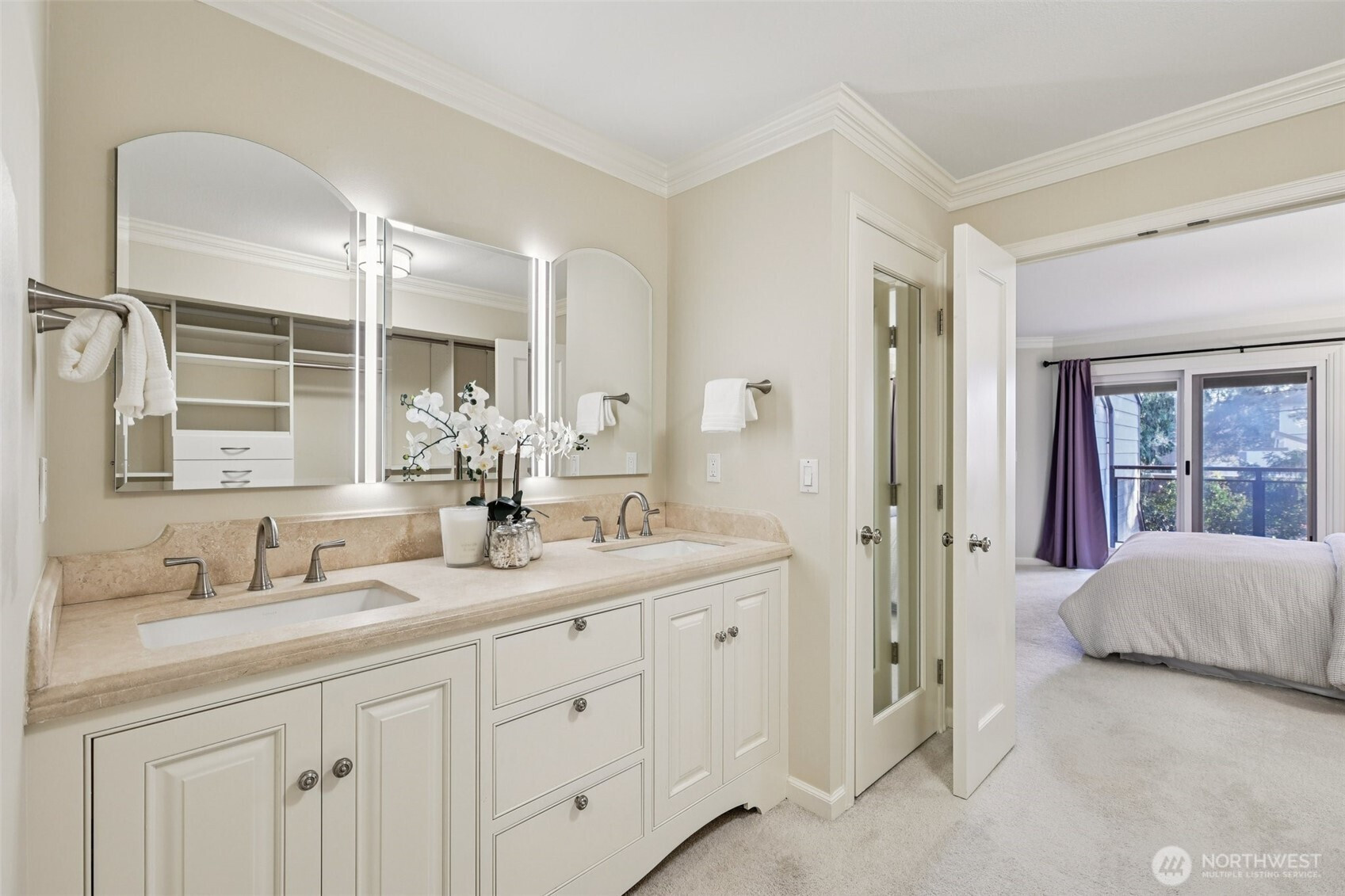 Perfectly positioned within walking distance to Downtown Bellevue, this elegant residence offers privacy, sophistication, and exceptional craftsmanship. Freshly painted and recent exterior updates, the home showcases timeless John Buchan millwork, soaring ceilings, and refined finishes throughout. The chef’s kitchen is a true centerpiece, featuring high-end Wolf and Sub-Zero appliances, custom cabinetry, and thoughtful design ideal for both everyday living and entertaining. Flexible living spaces include a private office and a loft area, providing versatility for work, relaxation, or guests. Enjoy seamless indoor-outdoor living with a large, private patio, perfect for entertaining or quiet evenings at home. Comfort is elevated with air conditioning, high ceilings, and full privacy rarely found this close to the city. Located in Washington’s top rated school district, and just minutes to world-class restaurants, luxury shopping, parks, trails, and easy access to I-405 and SR-520. This home delivers the ultimate West Bellevue lifestyle—where luxury, location, and livability meet. Move-in ready and welcome to your new home!