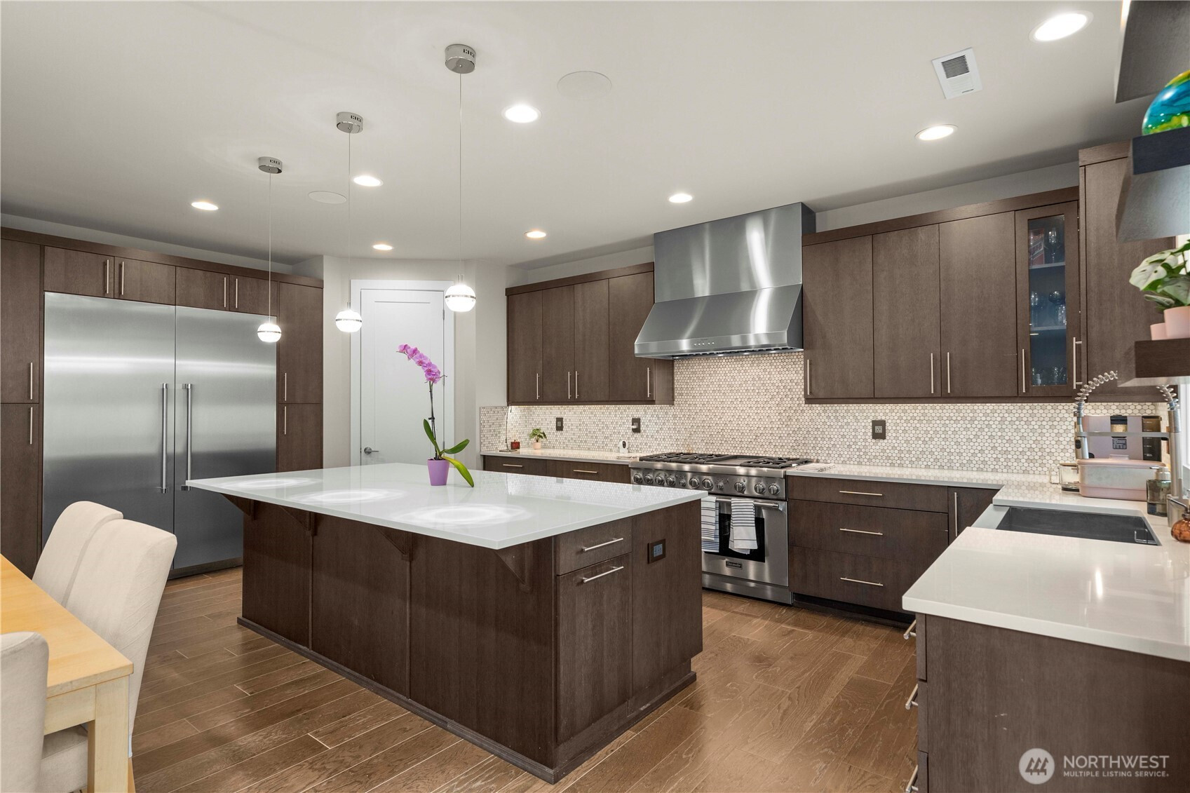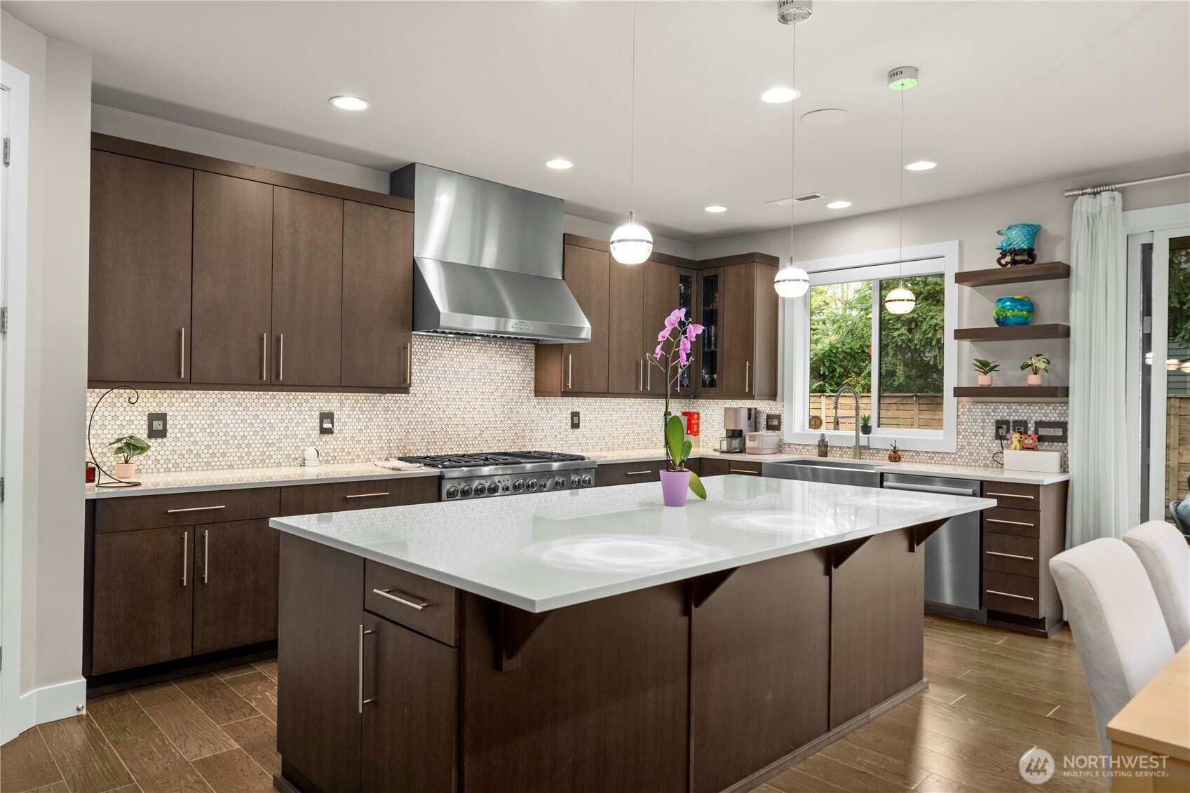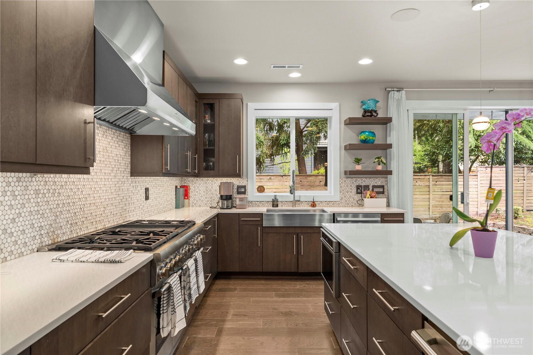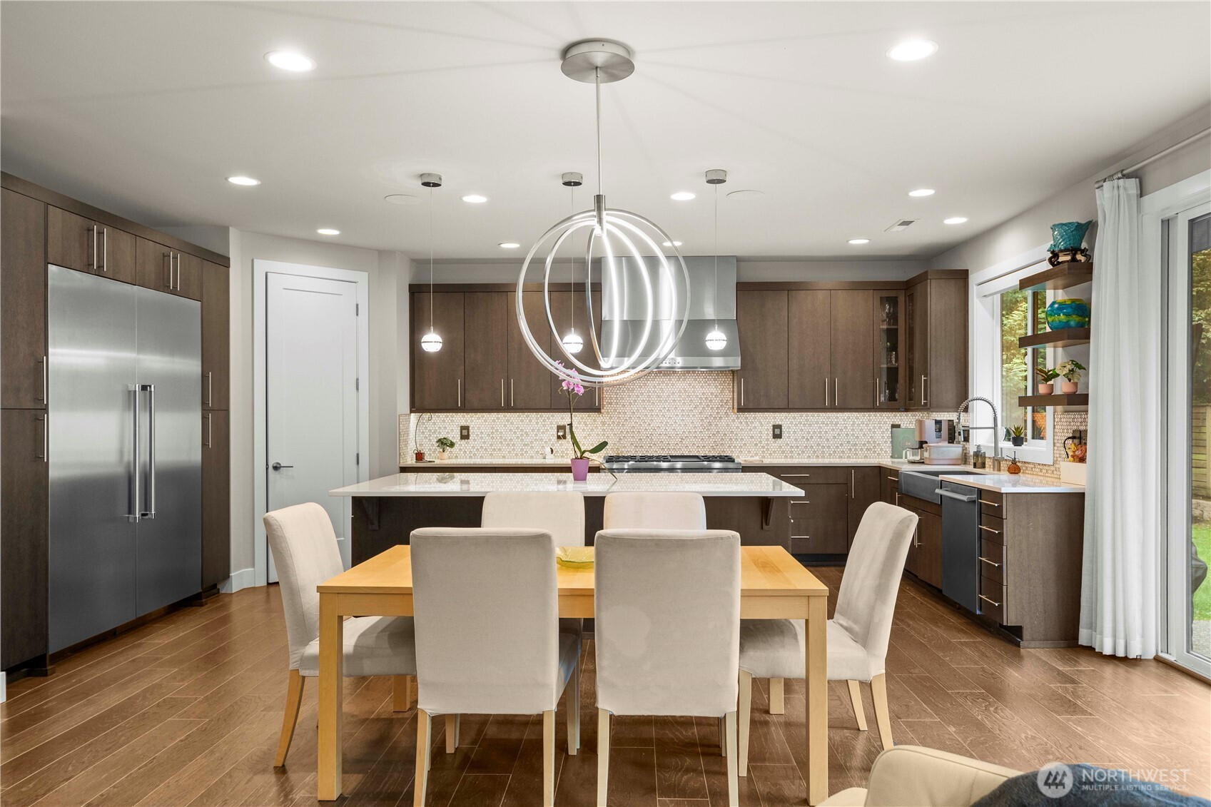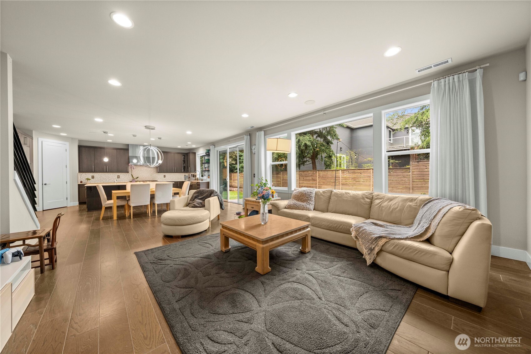 Experience elevated living in this exceptional residence offering nearly 4,000 square feet, just minutes from the heart of Bellevue. Thoughtfully designed to balance sophistication and modern functionality, the home features seamless smart home integration—providing effortless control and convenience from anywhere. At the center of the home, a stunning chef’s kitchen serves as both a showpiece and gathering place, appointed with commercial-grade appliances, an expansive island with built-in wine cooler, and refined designer finishes—perfectly suited for intimate evenings or grand-scale entertaining. The thoughtfully crafted floor plan offers five spacious bedrooms, including a desirable main-level guest suite with a ¾ bath, along with an additional 2.5 baths. An expansive 3+ car garage provides exceptional space for car enthusiasts or hobbyists, complemented by dedicated RV parking. Step outside to your private outdoor retreat—an oversized, beautifully curated backyard designed for year-round enjoyment, featuring a covered patio and outdoor media setup ideal for entertaining in any season. Perfectly positioned near Bellevue’s premier shopping, dining, and major tech campuses, this home also offers dual-zone climate control and a host of upscale enhancements throughout. Located within the top-rated Bellevue School District, this residence presents a rare opportunity to enjoy luxury, comfort, and convenience at its finest.
