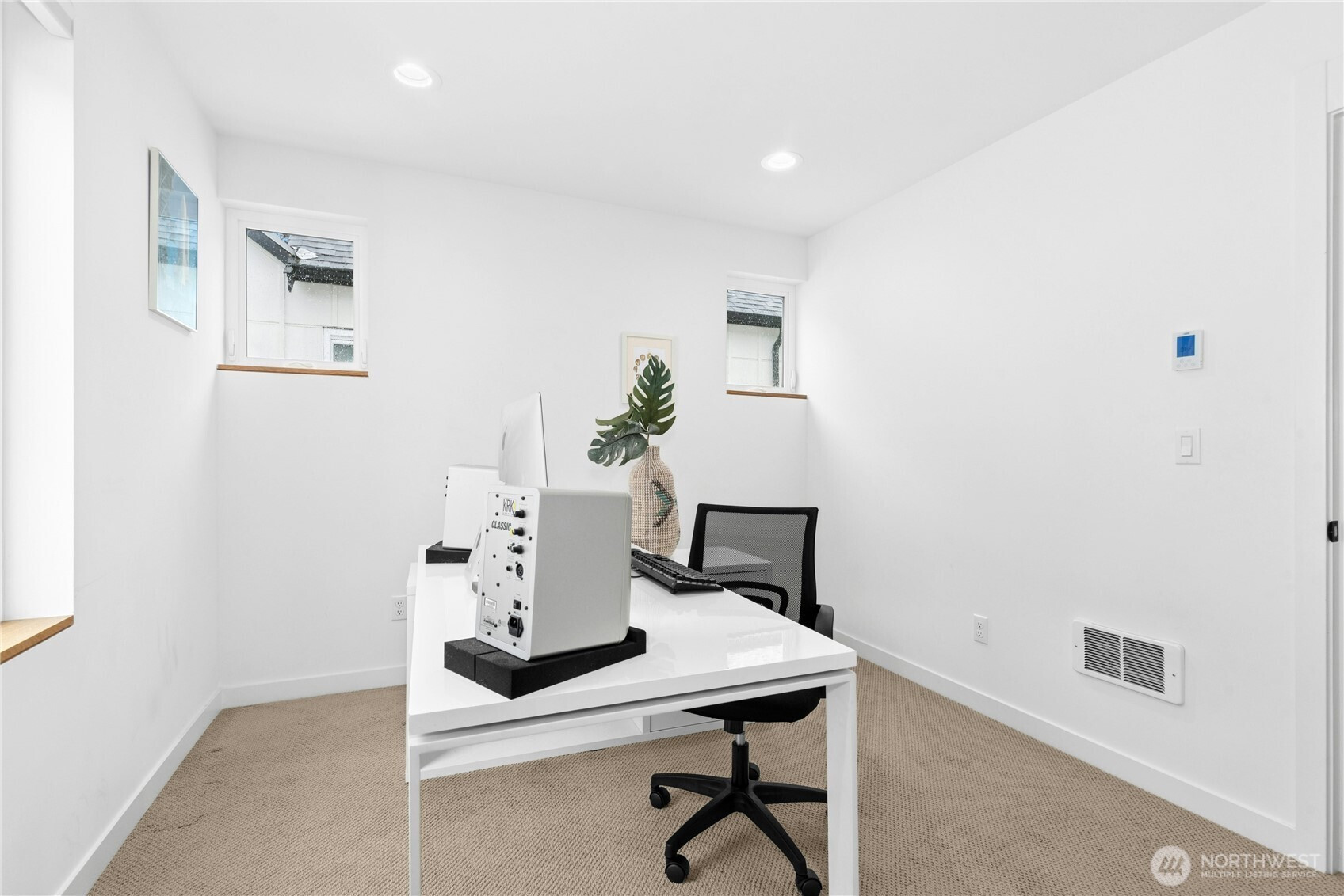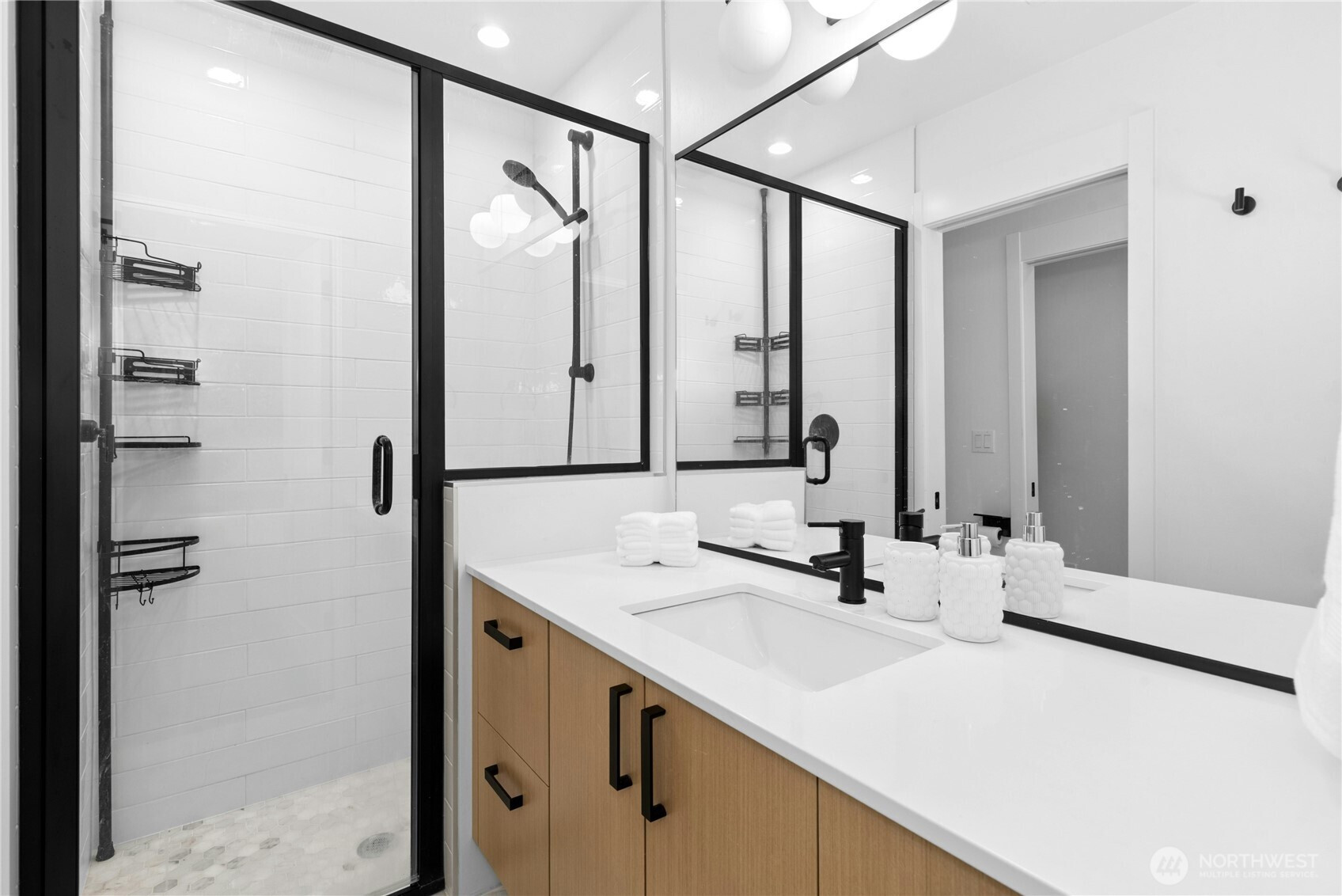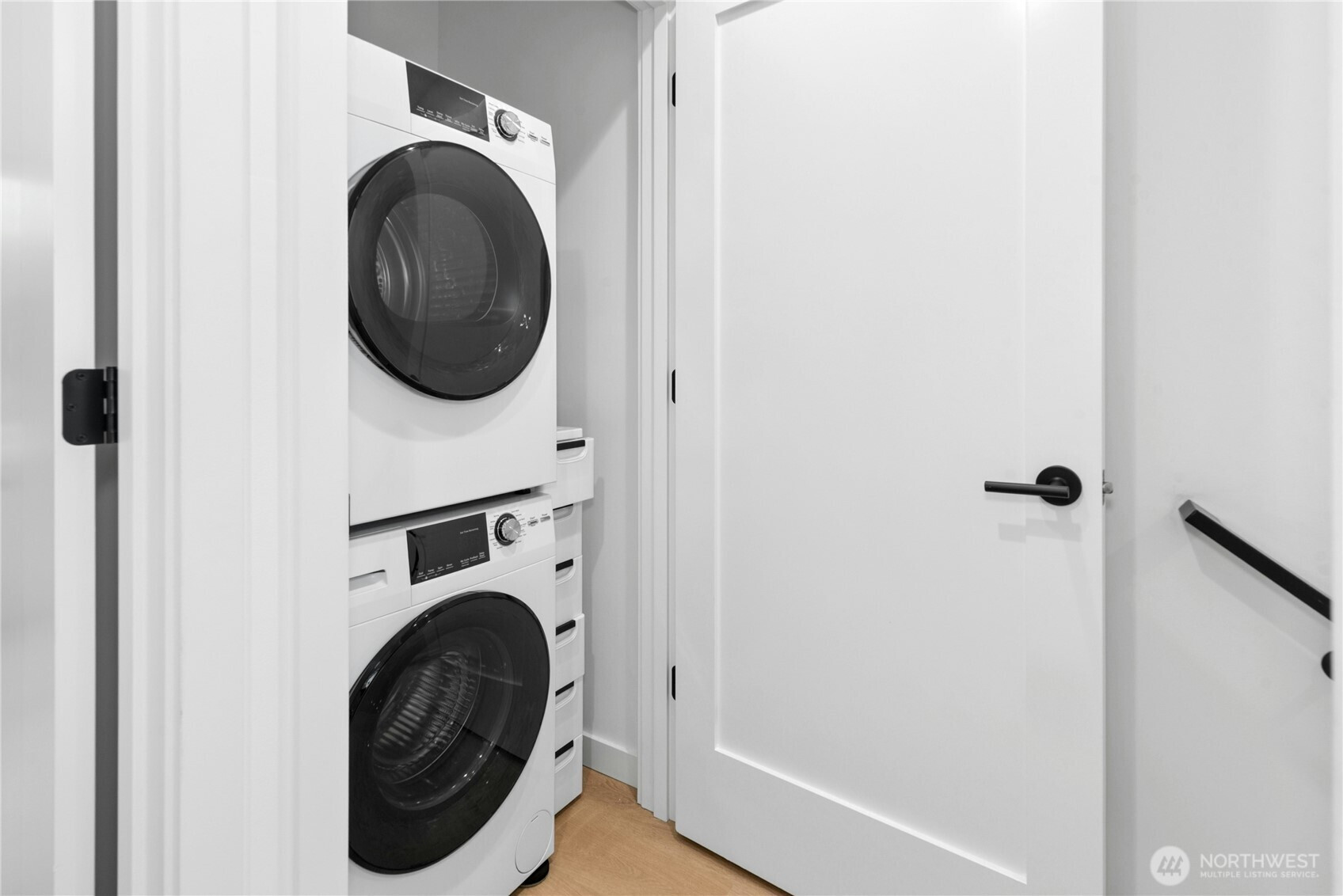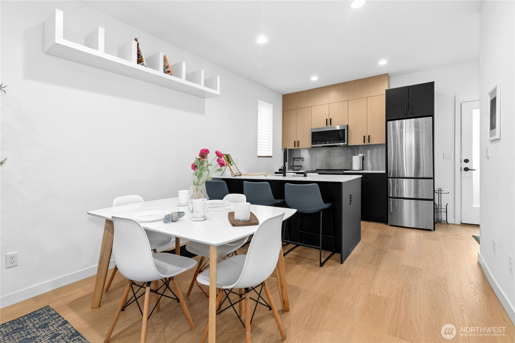 Welcome to Meridian Park Cottages! Modern and move-in ready, this 2 bed, 2 bath home built in 2023 offers the perfect blend of comfort, efficiency, and thoughtful design. The open-concept main level flows easily between the kitchen, dining, and living areas, creating a welcoming space for everyday living and entertaining. A heat pump provides efficient heating and cooling year-round. Upstairs features a spacious primary suite along with a second bedroom that works well as a guest room or home office, both offering great natural light and pleasant territorial views. A dedicated parking space located just outside the front door adds everyday convenience, with nearby bike racks providing a secure option for cyclists. Ideally located just minutes from Northgate and the light rail, commuting and getting around the city is easy by road or pedestrian overpass. Enjoy close proximity to everything the area has to offer including the Kraken Iceplex, shopping, dining, entertainment, transit hub, and nearby parks. As an added benefit, buyers may take advantage of a 1-year temporary rate buy-down with our preferred lender, helping make homeownership more attainable.