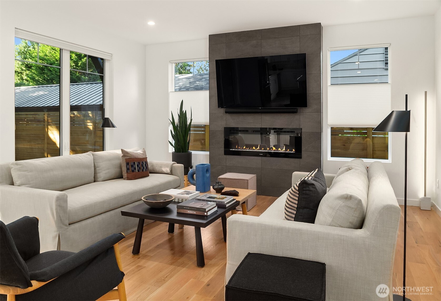 Stunning Modern Farmhouse with a detached garage on a 6,031 SF lot. Thoughtfully re-envisioned and truly better than new, with elevated upgrades throughout: top-down/bottom-up blinds, designer lighting (HAY & DWR), Lutron smart tech, bespoke storage (Shelf Genie & ELFA), and distinctive décor touches. Professional landscaping adds decks, patios, pathways, and easy-care plantings, plus SMART landscape lighting and irrigation. Seamless indoor-outdoor living centers on a magical, sun-dappled, fully fenced courtyard wrapped in high-quality cedar fencing; a custom utility meter enclosure underscores the attention to detail.Inside, the open, light-filled Great Room is anchored by a culinary kitchen with stainless steel appliances, including an Induction range, and an huge island with seating for 4-5. A main-level 4th bedroom beside a ¾ bath is ideal for a den/office or easy-access bedroom; upstairs, the primary suite sanctuary offers a walk-in closet and double-head shower. Features include white oak floors, ductless A/C, and EV-prewired parking. In one of Seattle’s friendliest neighborhoods—minutes to Endolyne, Lincoln Park, shops & eateries—15 minutes to SeaTac Airport, yet blissfully quiet and private. Garage + lots of off-street parking. Combine w/ MLS#2473526 for rare flexibility: multigenerational living, income potential, luxe guest house, or work/life separation. Extraordinary!