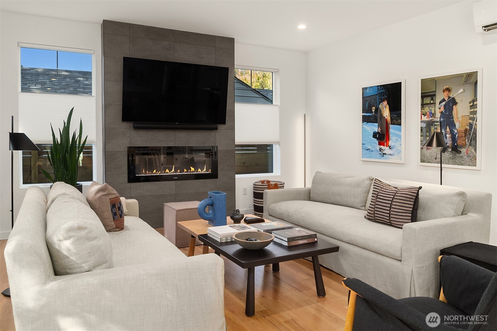 Stunning Modern Farmhouse with a detached garage on a 6,031 SF lot. Thoughtfully re-envisioned and truly better than new, with elevated upgrades throughout: top-down/bottom-up blinds, designer lighting (HAY & DWR), Lutron smart tech, bespoke storage (Shelf Genie & ELFA), and distinctive décor touches. Professional landscaping adds decks, patios, pathways, and easy-care plantings, plus SMART landscape lighting and irrigation. Seamless indoor-outdoor living centers on a magical, sun-dappled, fully fenced courtyard wrapped in high-quality cedar fencing; a custom utility meter enclosure underscores the attention to detail.Inside, the open, light-filled Great Room is anchored by a culinary kitchen with stainless steel appliances, including an Induction range, and an huge island with seating for 4-5. A main-level 4th bedroom beside a ¾ bath is ideal for a den/office or easy-access bedroom; upstairs, the primary suite sanctuary offers a walk-in closet and double-head shower. Features include white oak floors, ductless A/C, and EV-prewired parking. In one of Seattle’s friendliest neighborhoods—minutes to Endolyne, Lincoln Park, shops & eateries—15 minutes to SeaTac Airport, yet blissfully quiet and private. Garage + lots of off-street parking. Combine w/ MLS#2473526 for rare flexibility: multigenerational living, income potential, luxe guest house, or work/life separation. Extraordinary!